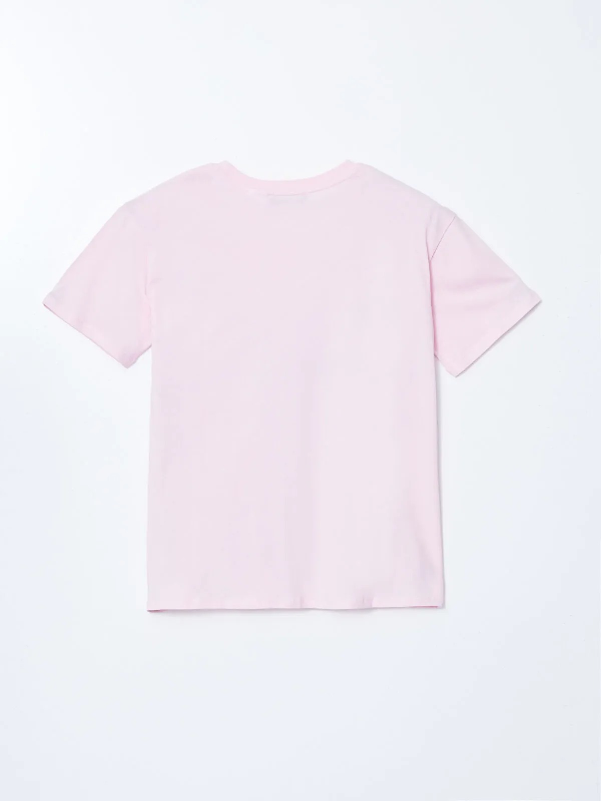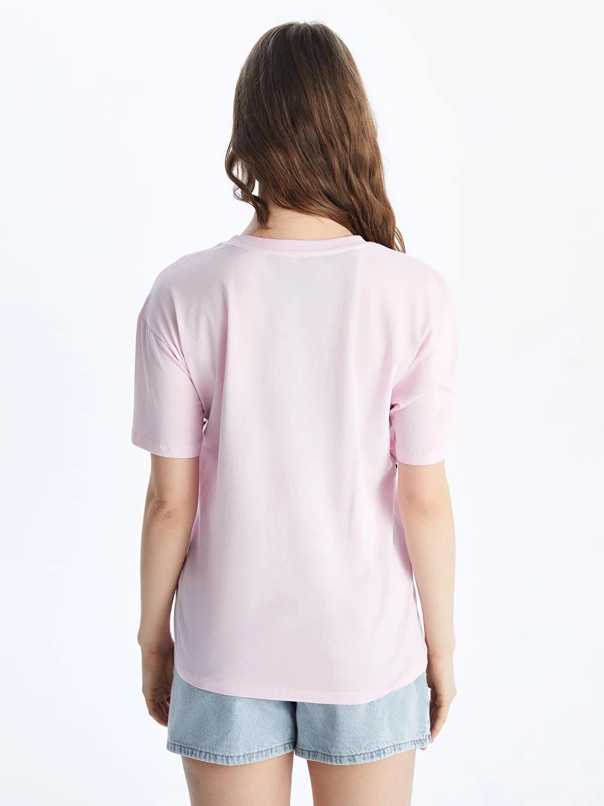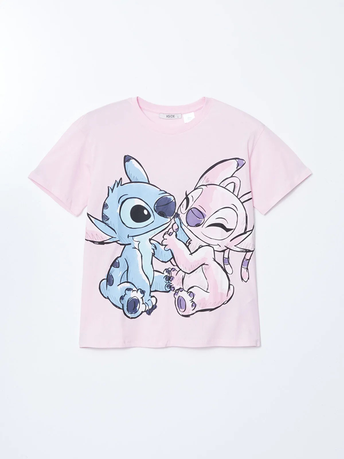 تيشيرت نسائي بلون وردي ناعم، بياقة دائرية قصيرة وأكمام قصيرة، مزين بطبعة شخصية ليلو وستيتش تضيف لمسة مرحة وشبابية. تصميم Loose Fit يمنح حرية حركة وراحة طوال اليوم، مثالي لإطلالة كاجوال أننيقة ومريحة.