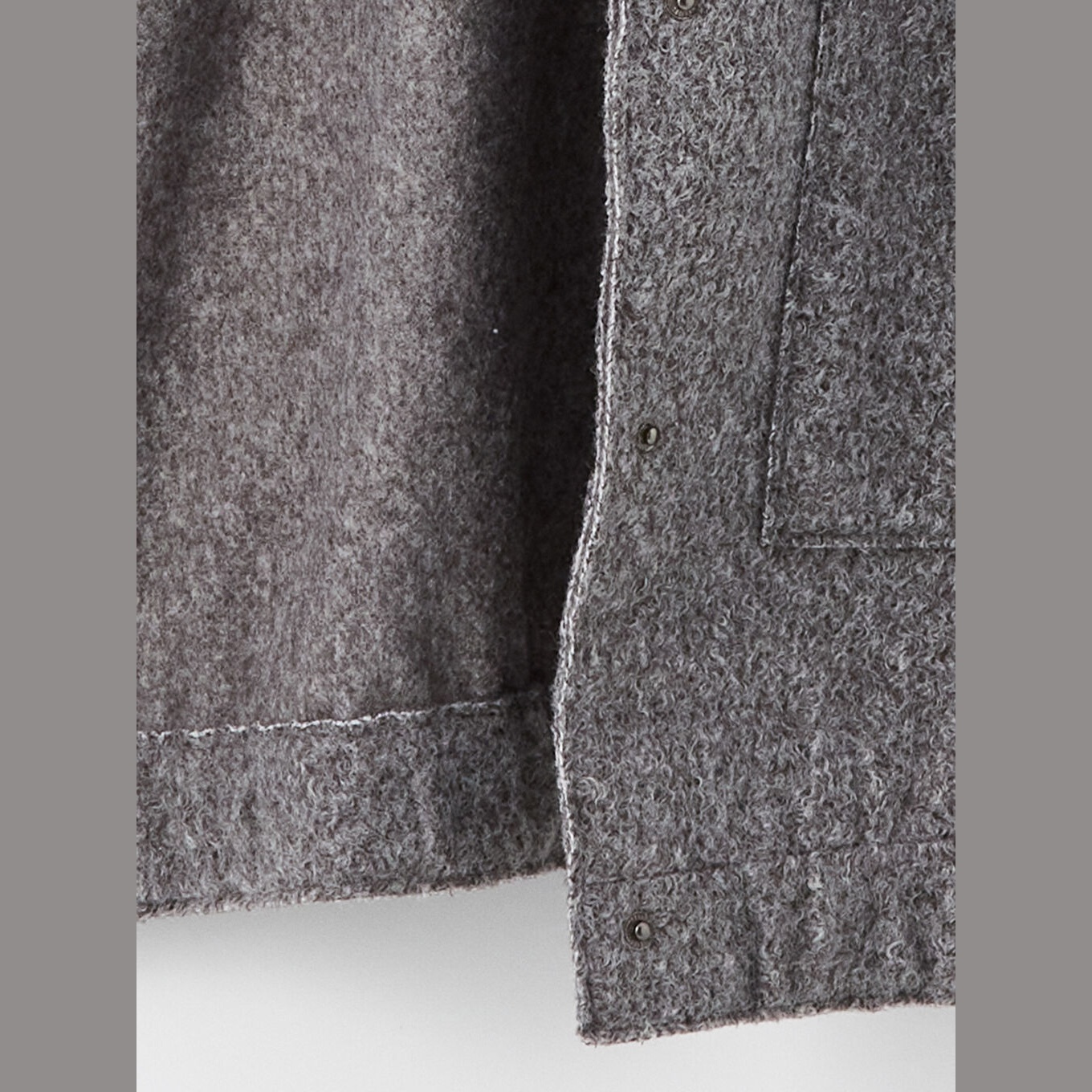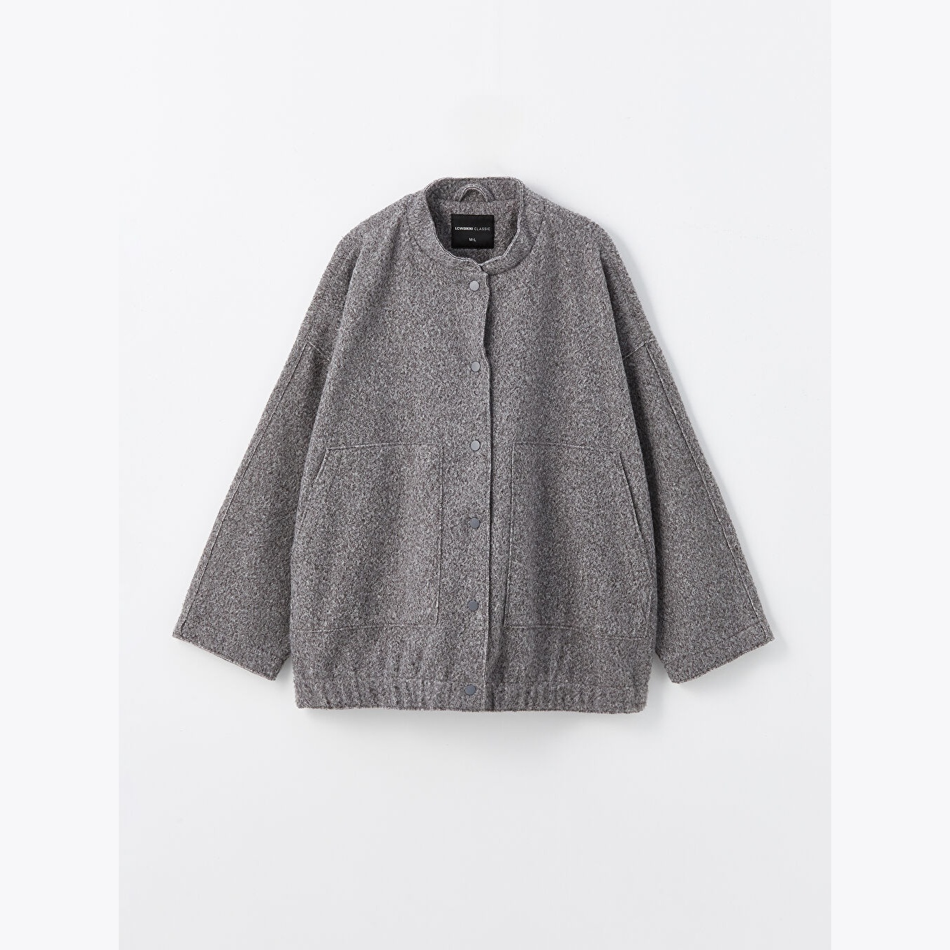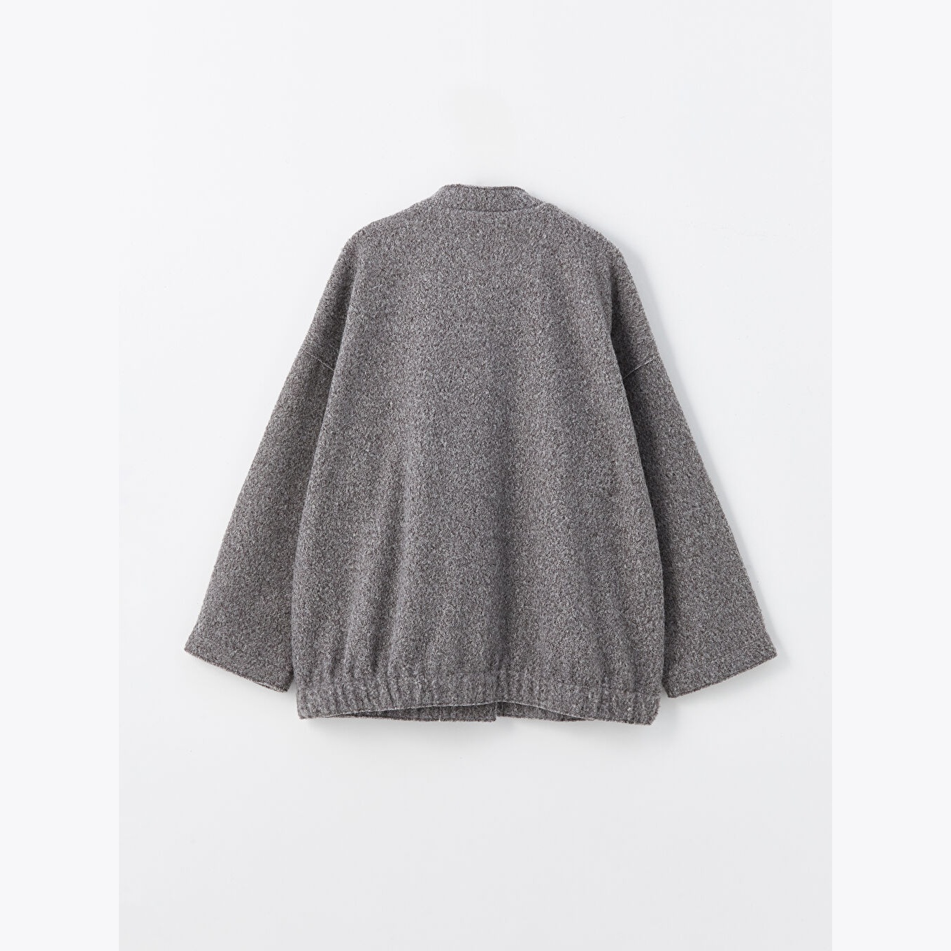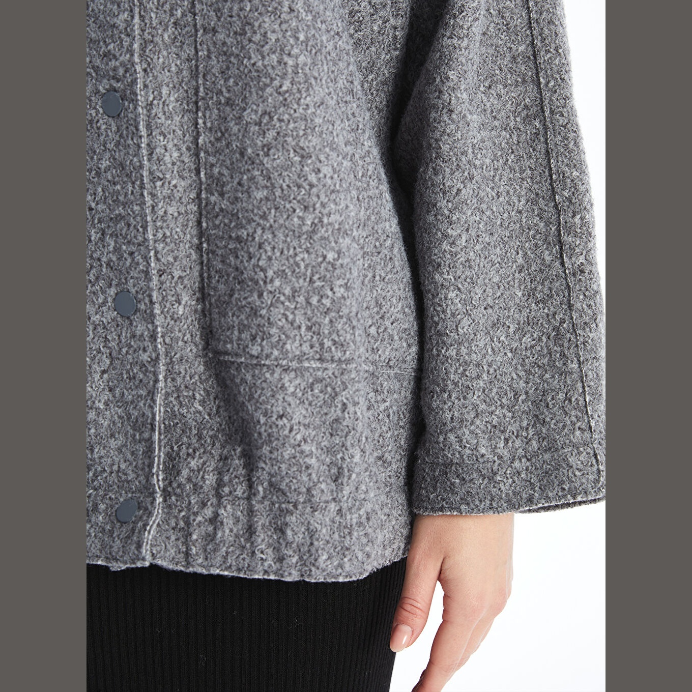 جاكيت نسائي بستايل بومبر بياقة كلية من LCW Classic – رمادي (قصة واسعة، تصميم قصير، خامة كاشيه بسماكة متوسطة، بدون بطانة، مثالي للإطلالات اليومية بأسلوب شبابي وعصري)