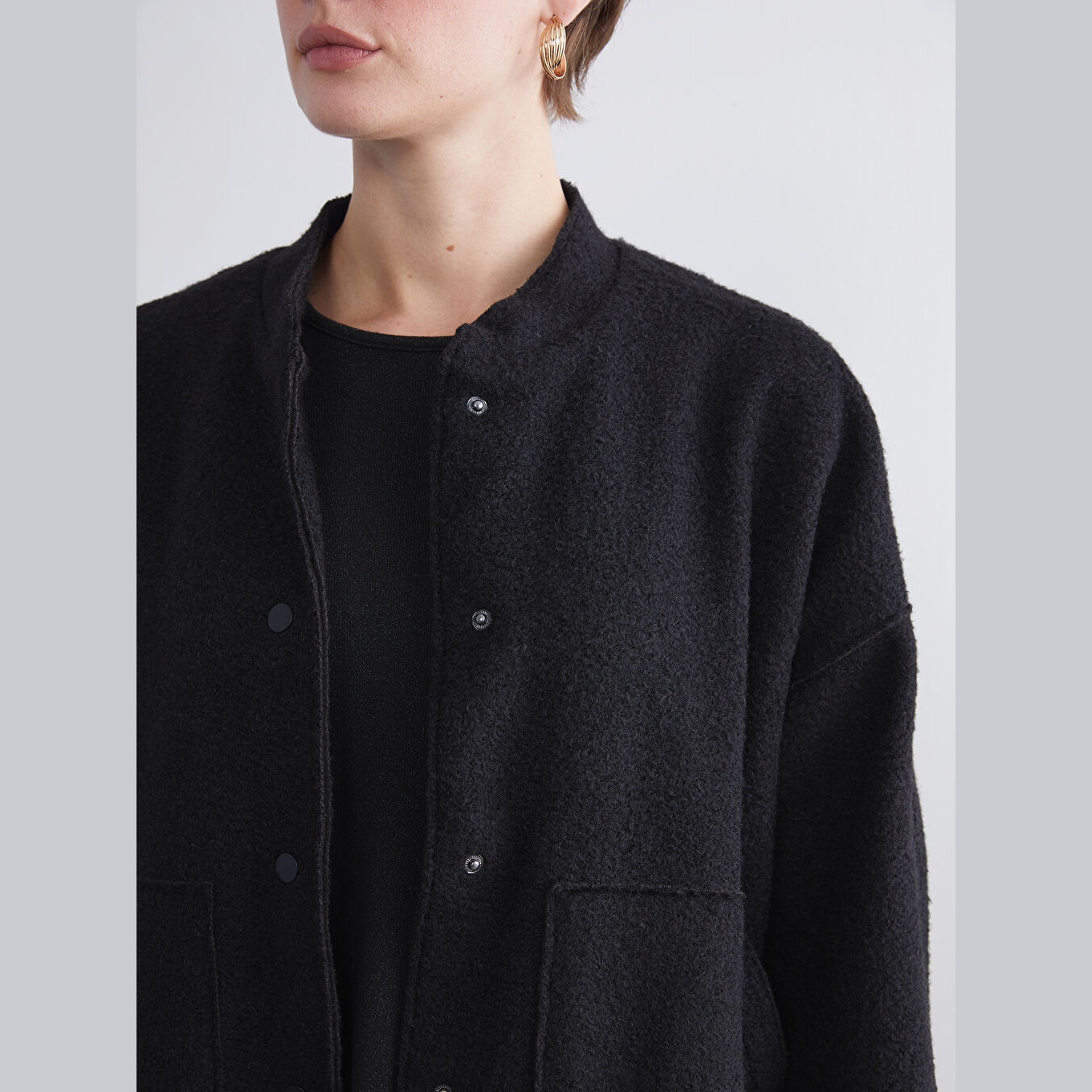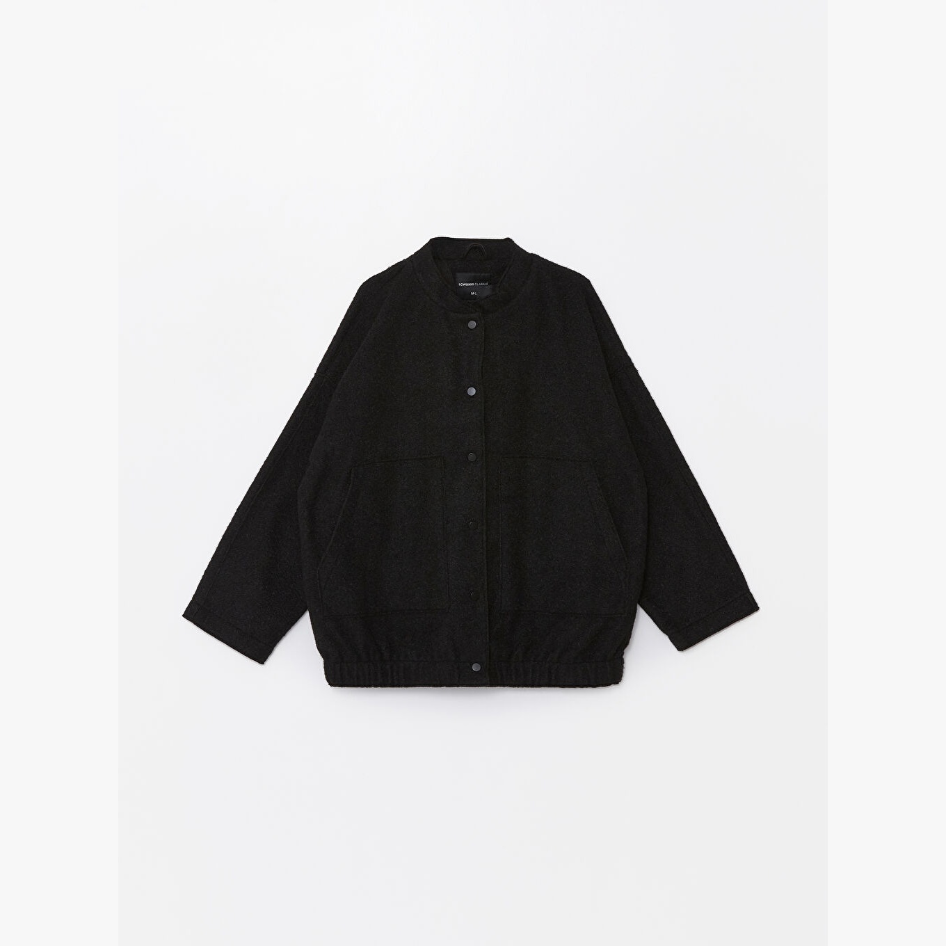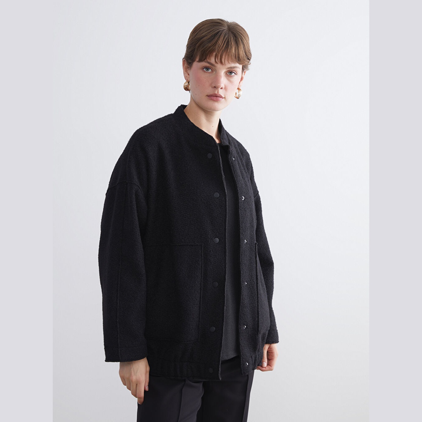 جاكيت نسائي بستايل بومبر بياقة كوليج من LCWAIKIKI Classic – أسود (قصة واسعة، تصميم قصير، خامة كاشمير صناعي بدون بطانة، سماكة متوسطة، مثالي للإطلالات اليومية بأسلوب شبابي وعصري)
