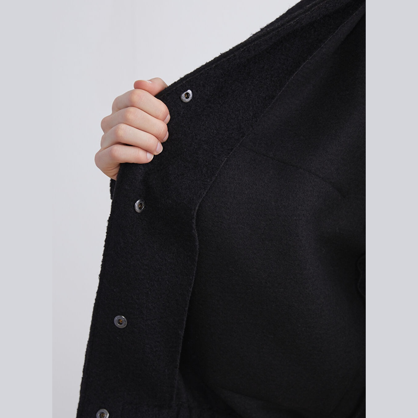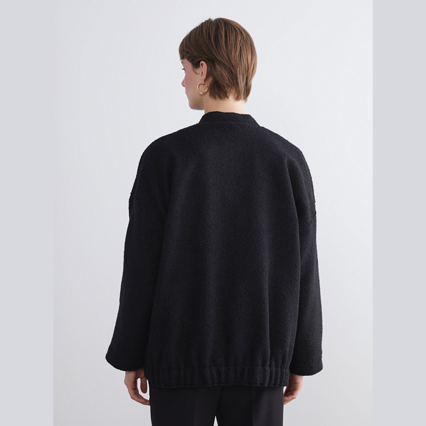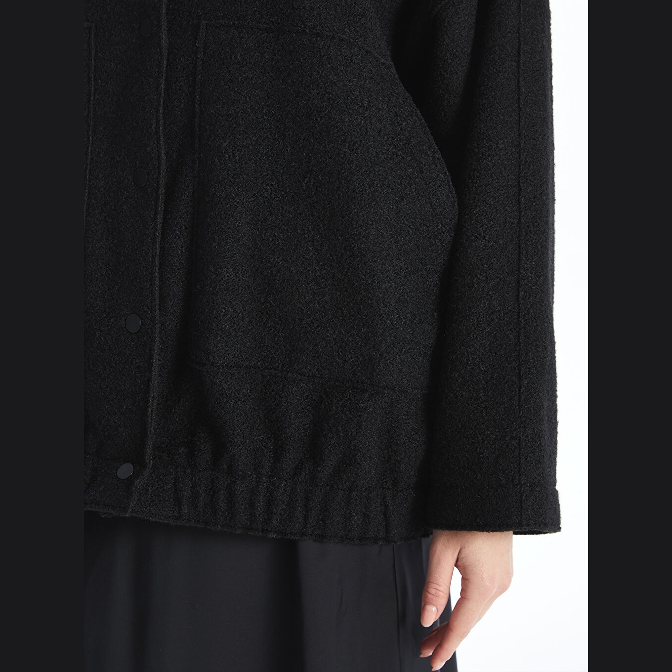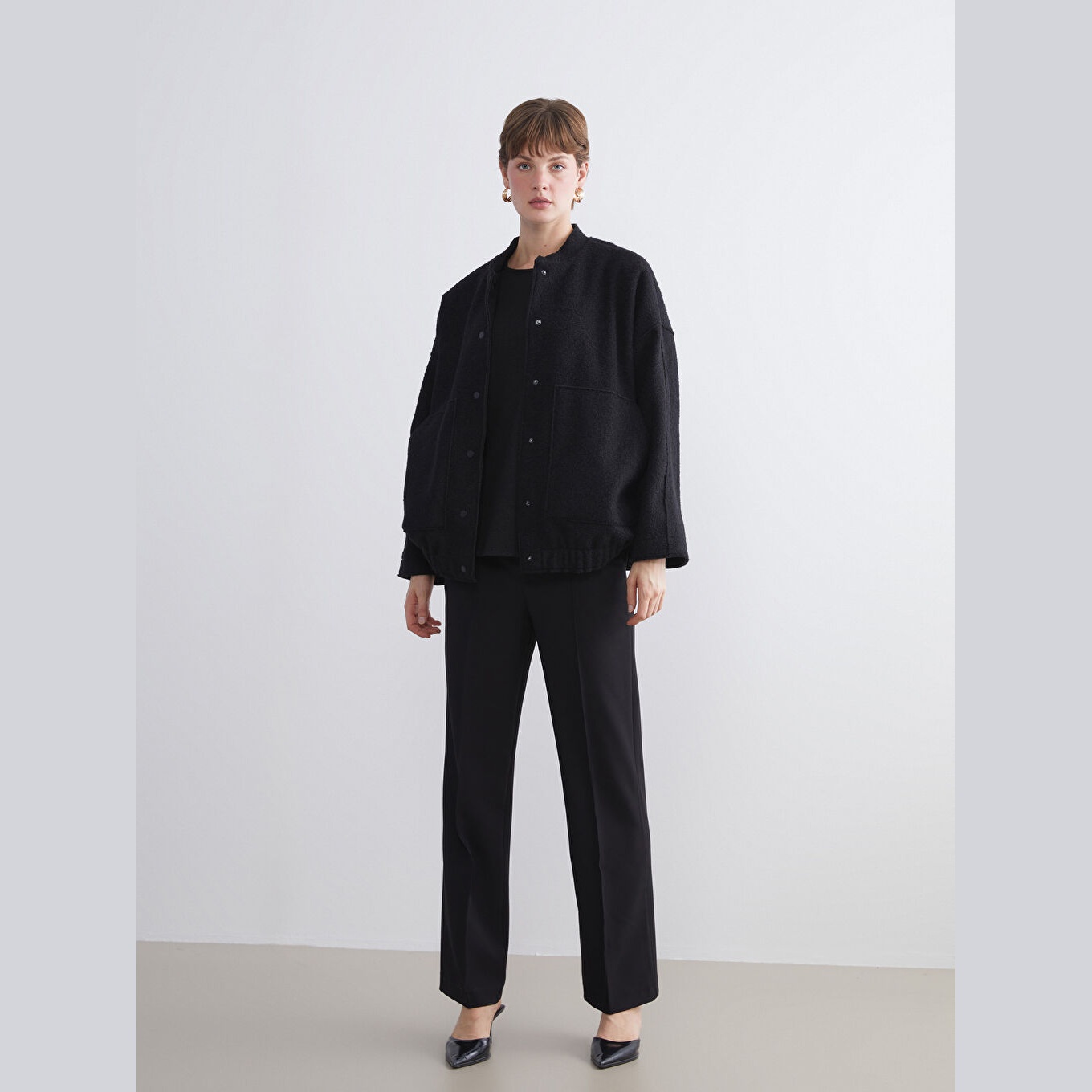 جاكيت نسائي بستايل بومبر بياقة كوليج من LCWAIKIKI Classic – أسود (قصة واسعة، تصميم قصير، خامة كاشمير صناعي بدون بطانة، سماكة متوسطة، مثالي للإطلالات اليومية بأسلوب شبابي وعصري)