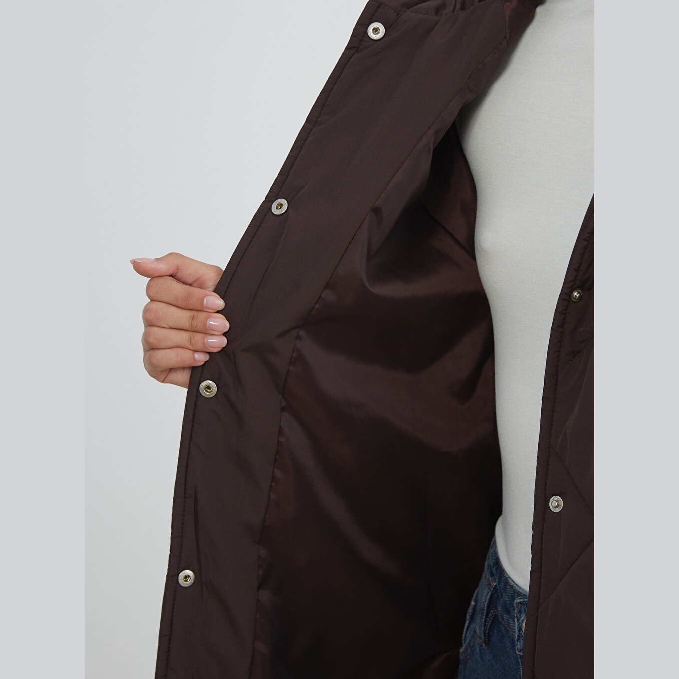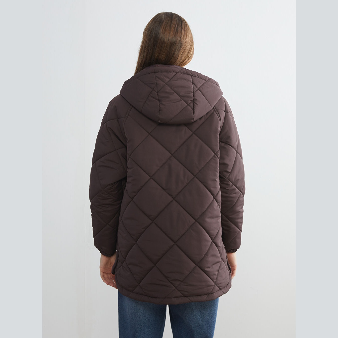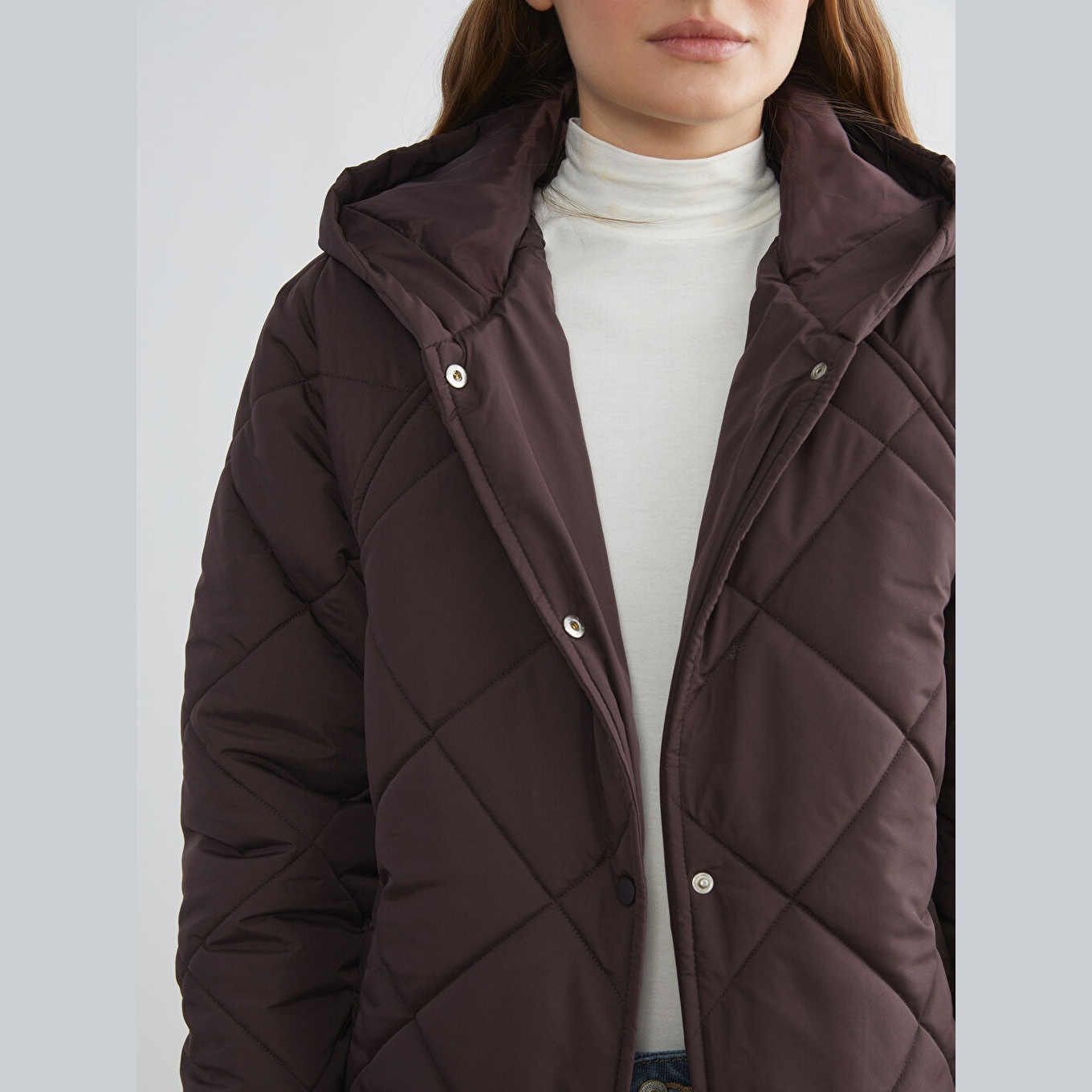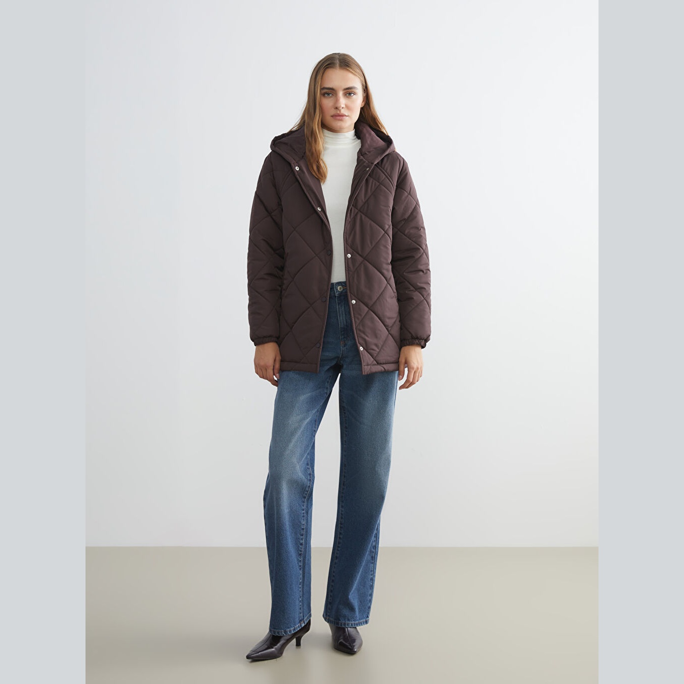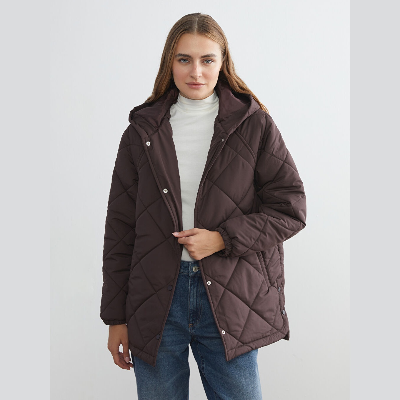 معطف نسائي شتوي بستايل كابيتوني من LCW Vision – بني (قصة واسعة، تصميم ميدي، خامة بوليستر مبطّنة بنمط كابيتوني، سماكة عالية، مزود بسحاب أمامي وقبعة ثابتة، مثالي للإطلالات الشتوية اليومية بأسلوب عصري ودافئ)