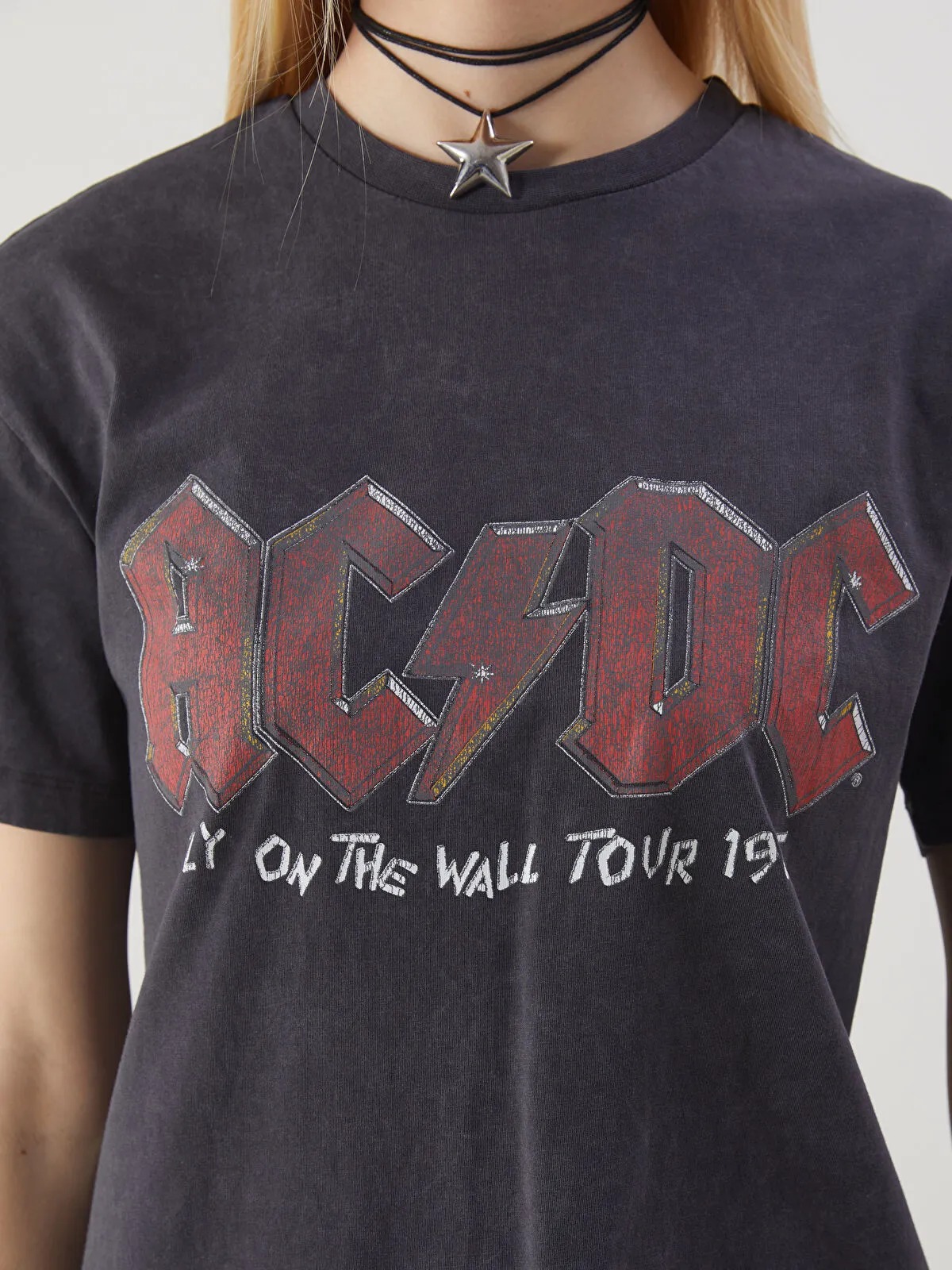 تيشيرت نسائي بلون أنثرسيت (رمادي داكن) أنيق، بياقة دائرية قصيرة وأكمام قصيرة، مزين بطبعة شعار AC/DC المرخص رسميًا والتي تضيف لمسة شبابية وعصرية. تصميم Loose & Bol يمنح حرية حركة وراحة طوال اليوم، مثالي لإطلالة كاجوال أننيقة ومريحة.
