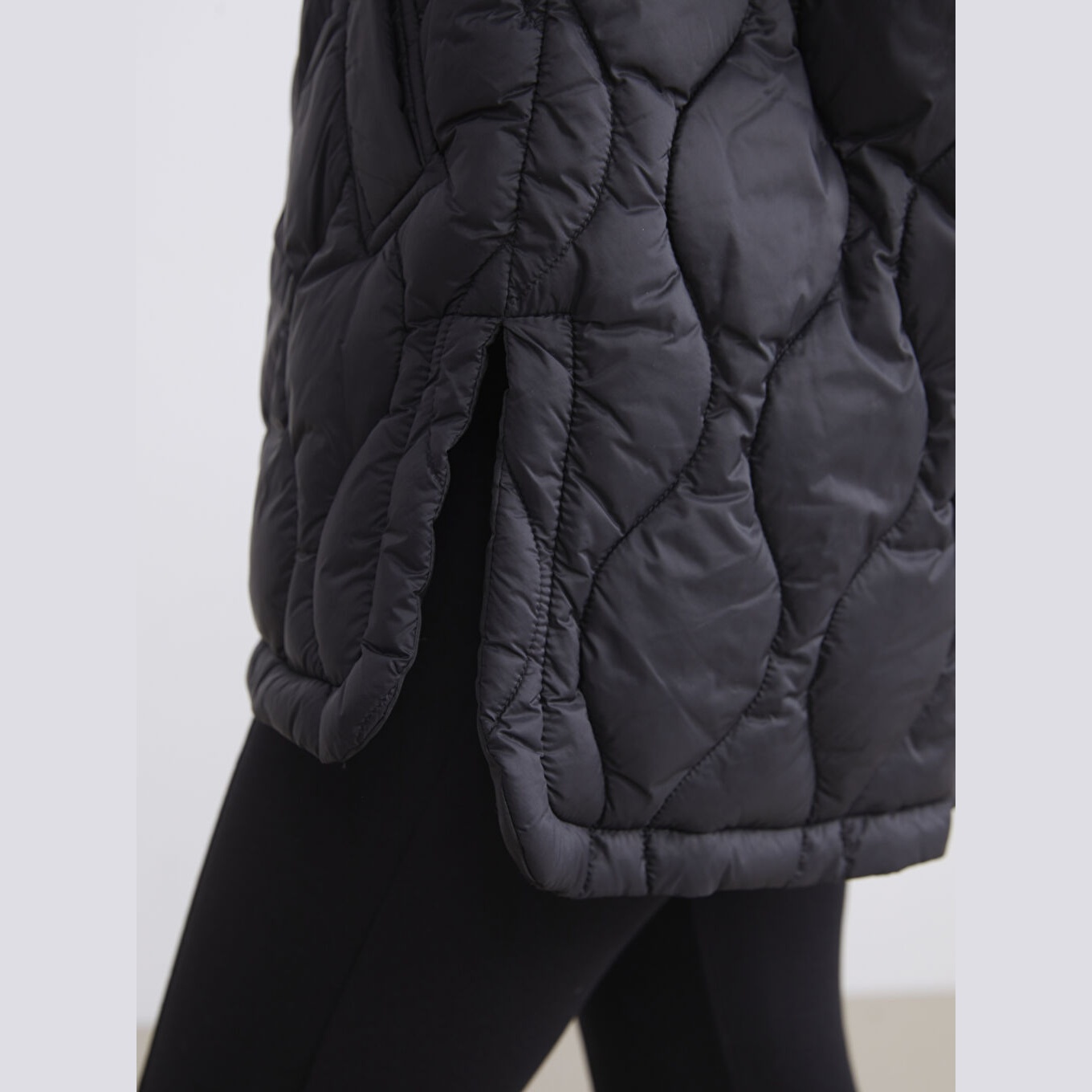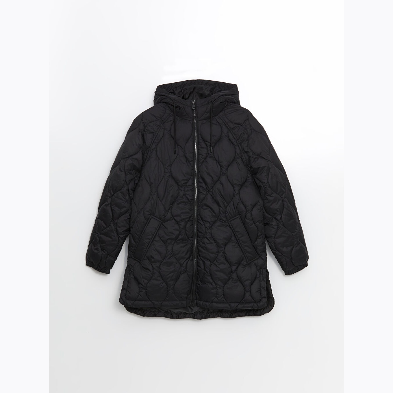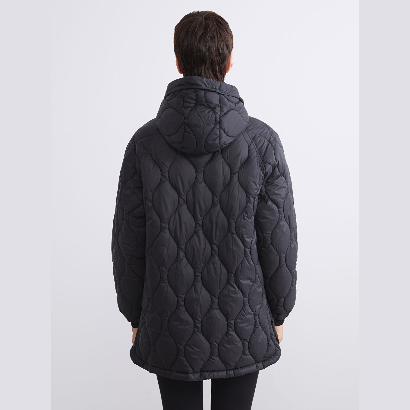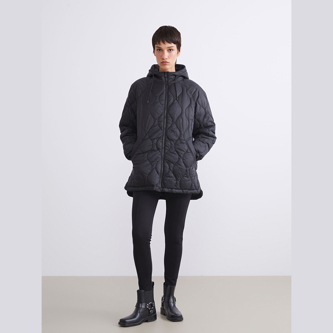 معطف نسائي شتوي بستايل كابيتوني من LCW Vision – أسود (قصة واسعة، تصميم ميدي، خامة بولياميد بنمط كابيتوني، سماكة خفيفة، مزود بسحاب أمامي وقبعة ثابتة، مثالي للإطلالات الشتوية اليومية بأسلوب عملي وخفيف)