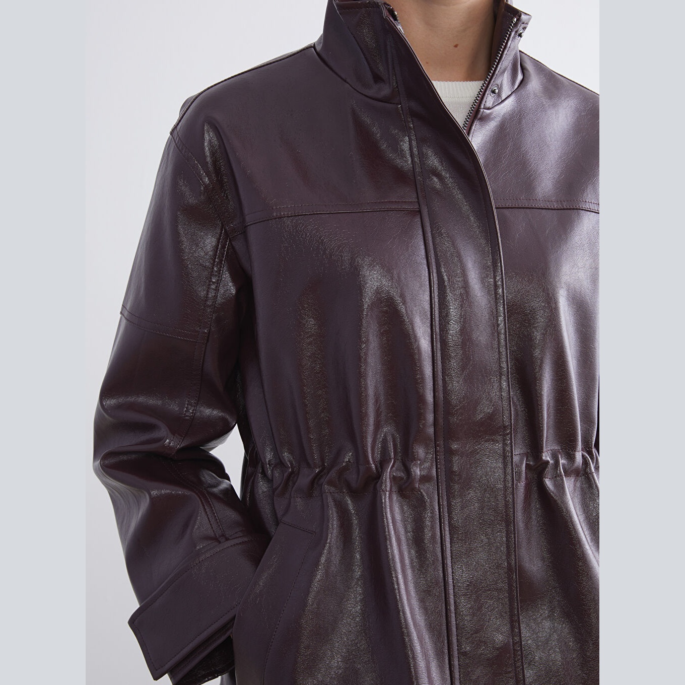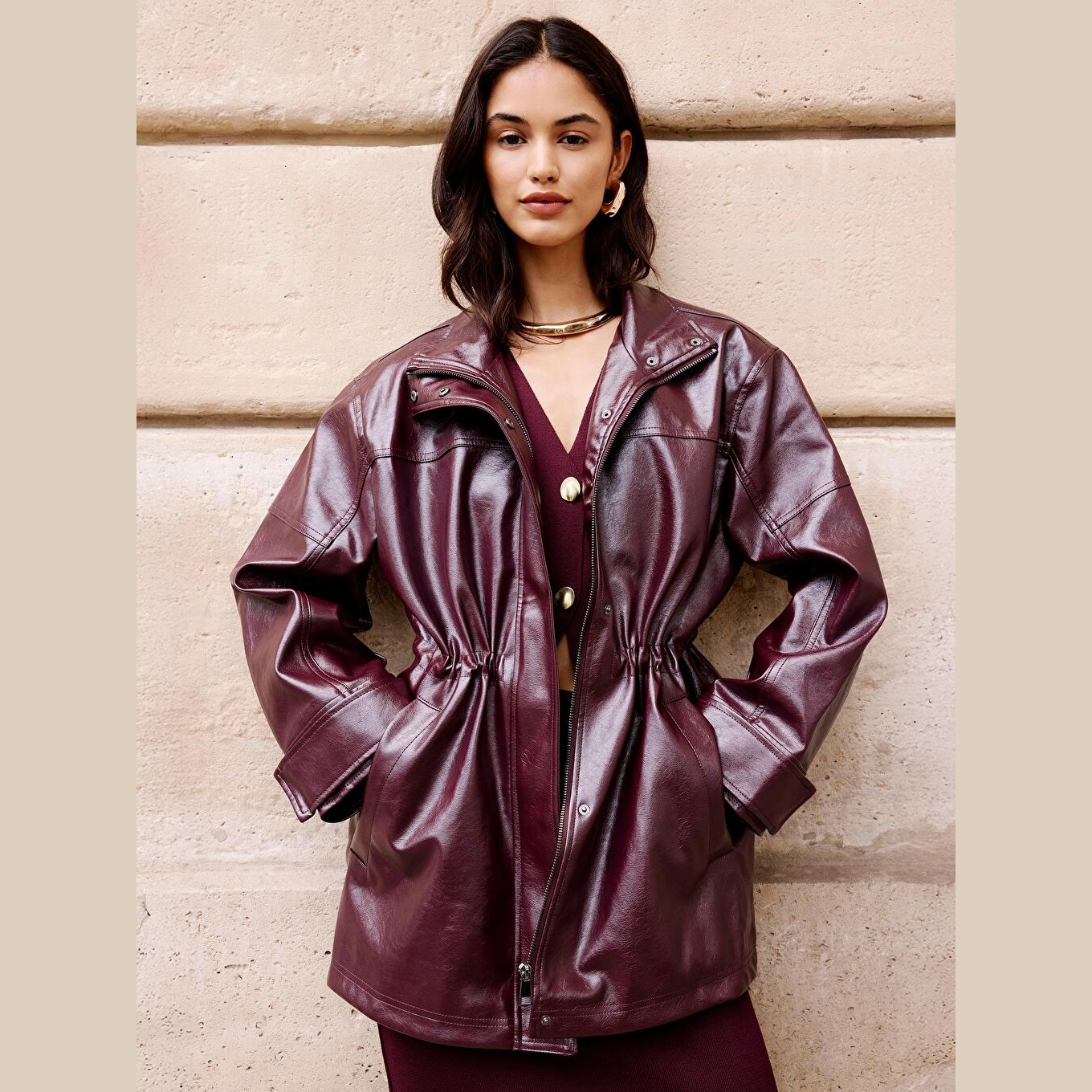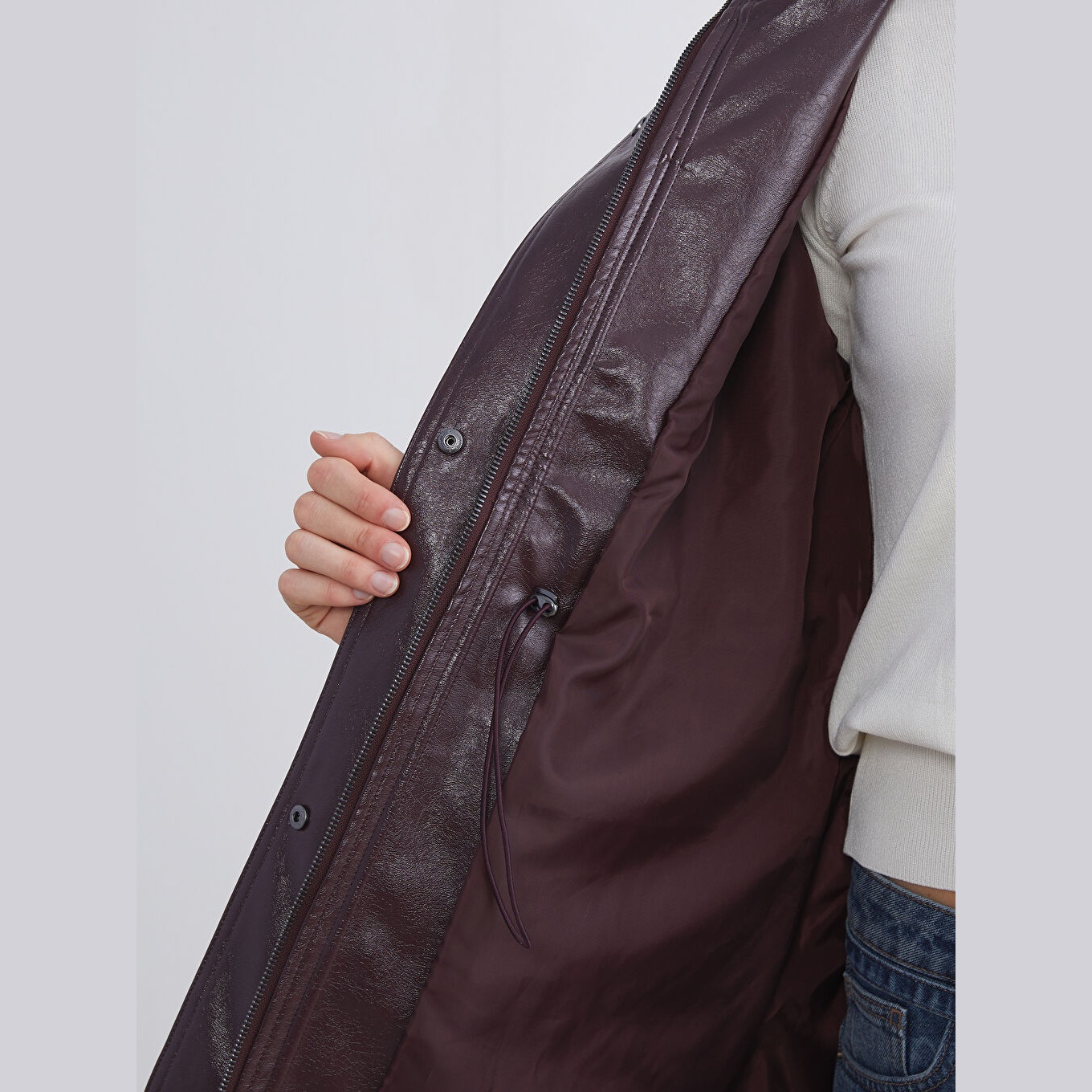 جاكيت نسائي شتوي من LCW Classic – بوردو (قصة واسعة Oversize، تصميم ميدي، خامة جلد صناعي، بياقة مستقيمة، بدون قبعة، سحاب أمامي، مثالي للإطلالات الشتوية الجريئة والعصرية)