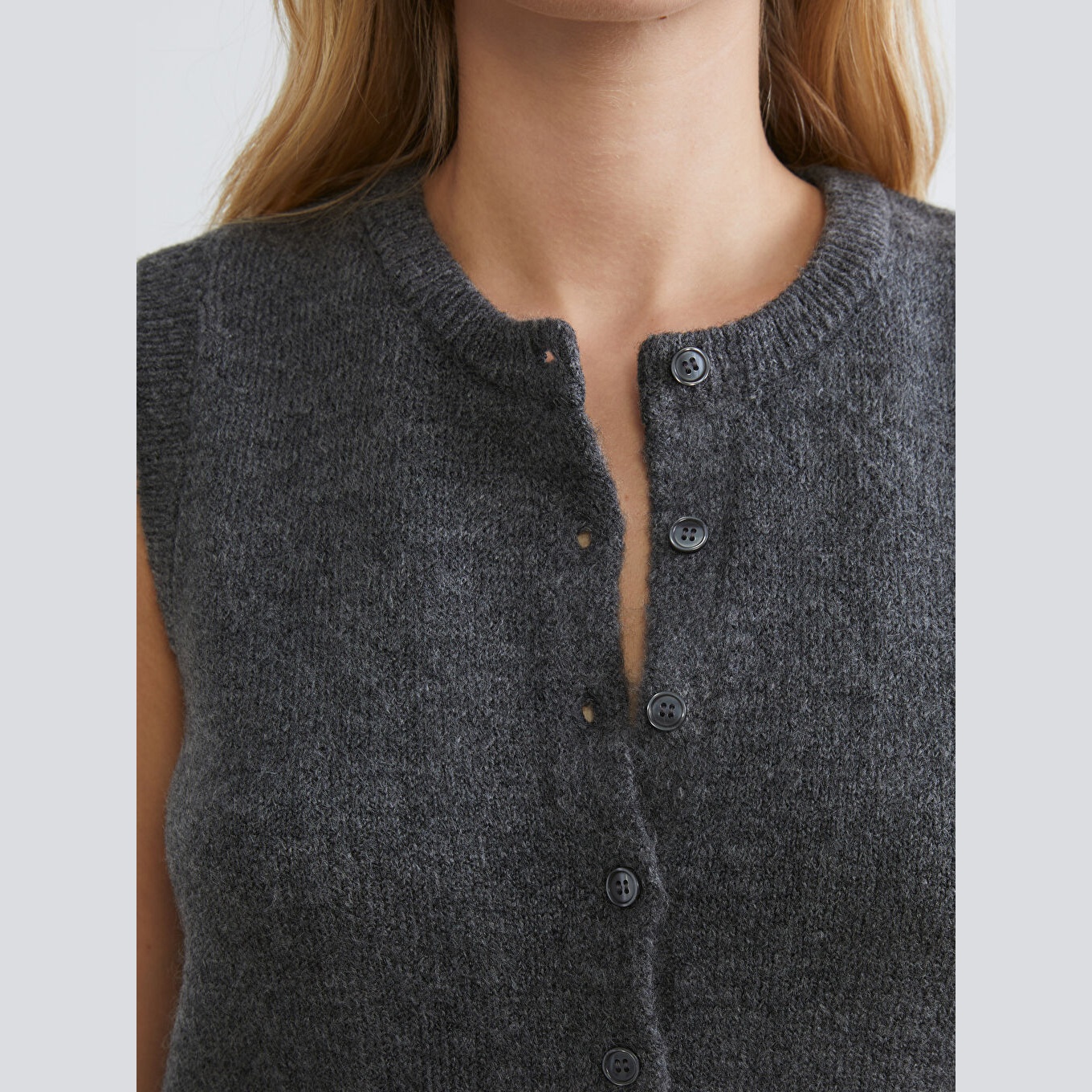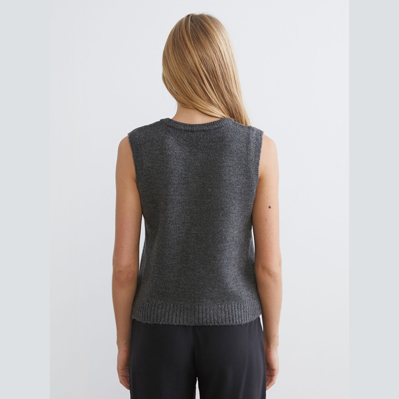 فيست تريكو بلون أنثراسيت من مجموعة LCW Vision، تصميم بياقة دائرية (Bisiklet Yaka) كلاسيكية، مزوّد بأزرار أمامية لإطلالة عملية وأنيقة، قصة ضيقة (Dar & Slim) تبرز القوام وتمنحك مظهرًا أنثويًا، خامة ناعمة ومريحة من مزيج %75 أكريليك و%25 بوليستر، بدون أكمام، بطول ميدي يُقاس من الكتف، مثالي للتنسيق مع القمصان أو البلوزات في الإطلالات اليومية أو العملية خلال الخريف والشتاء.