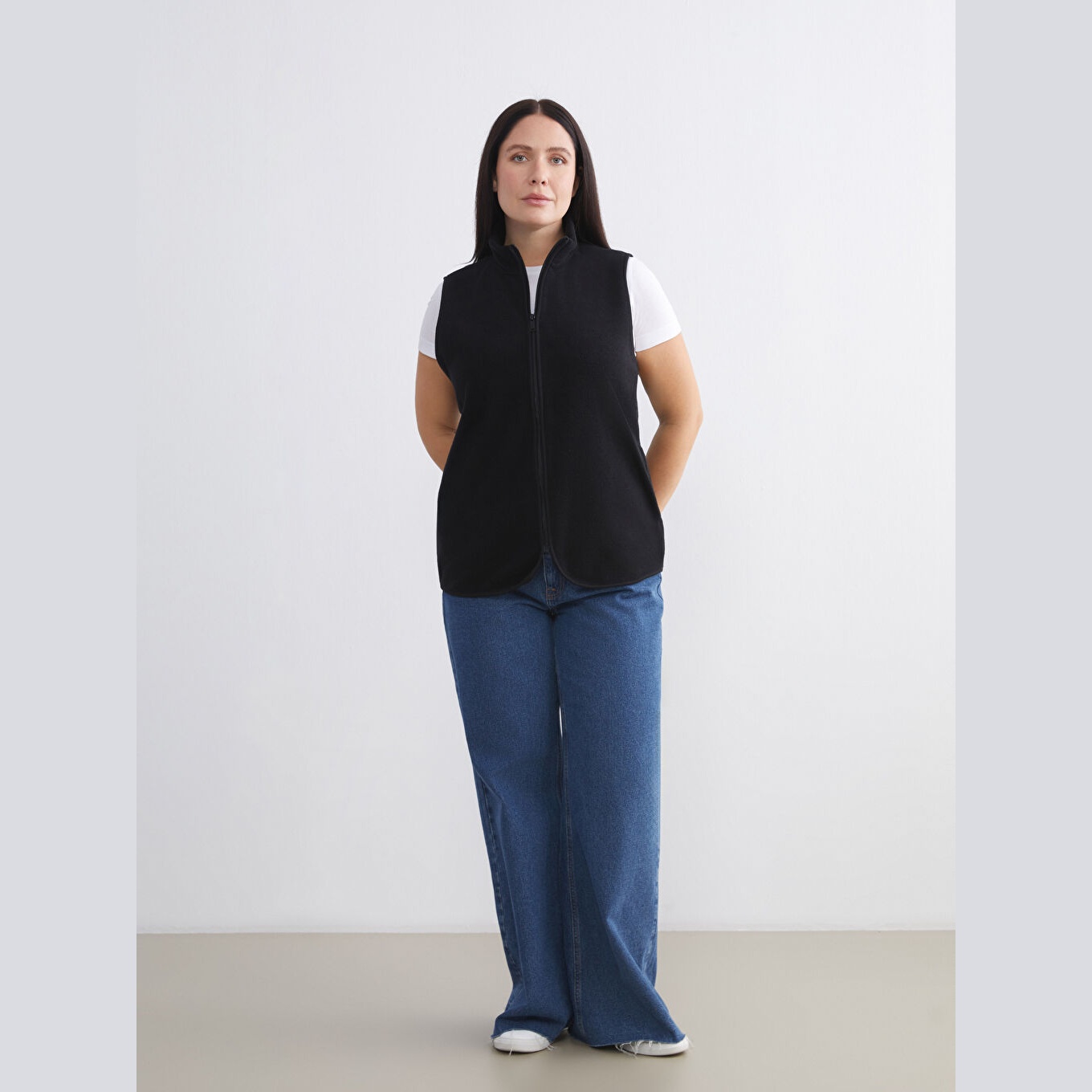 فيست شتوي بلون أسود من مجموعة LCWAIKIKI Büyük Beden، تصميم بياقة مستقيمة (Dik Yaka) تضيف دفئًا وأناقة، قصة قياسية (Standart & Regular) تمنحك مظهرًا متوازنًا، خامة خارجية من بولار ناعم مصنوعة من %100 بوليستر، مزوّد بسحاب أمامي (Fermuarlı)، بأكمام طويلة، بطول قياسي يُقاس من الكتف، مثالي للإطلالات اليومية أو العملية في الشتاء بأسلوب عملي ومحتشم.