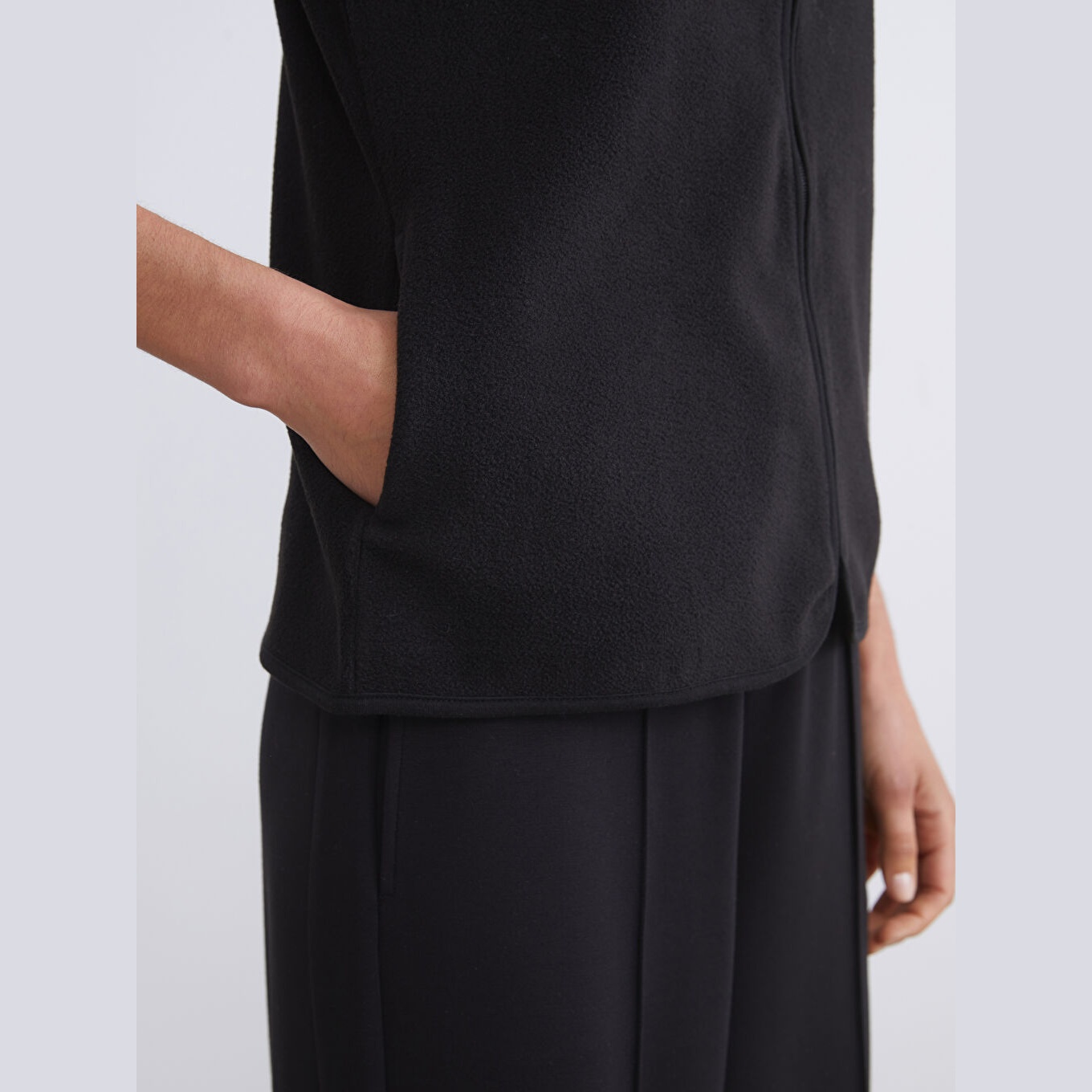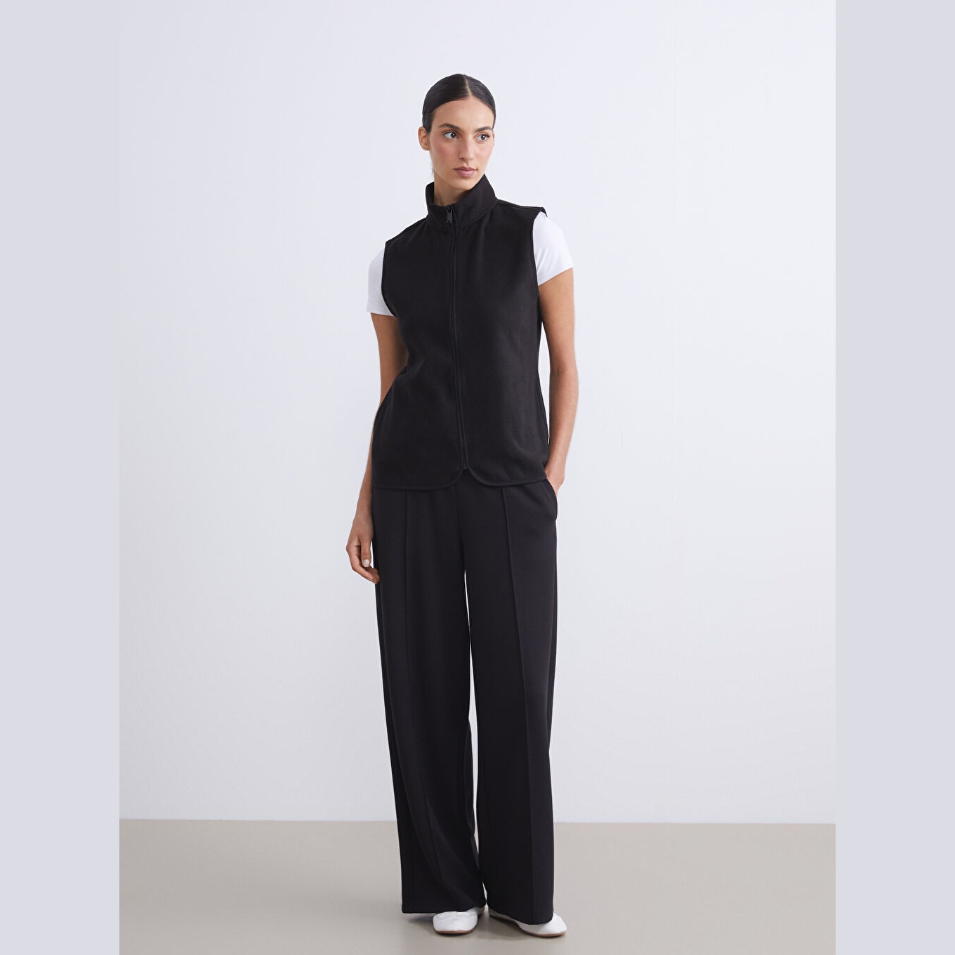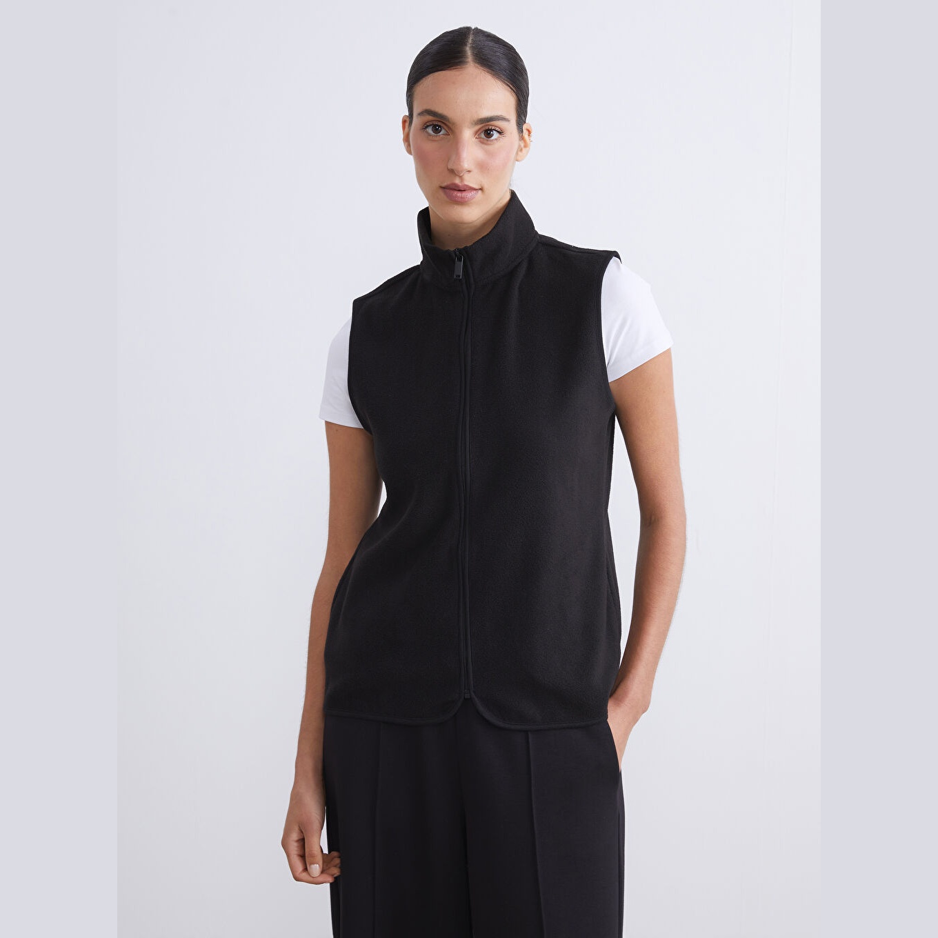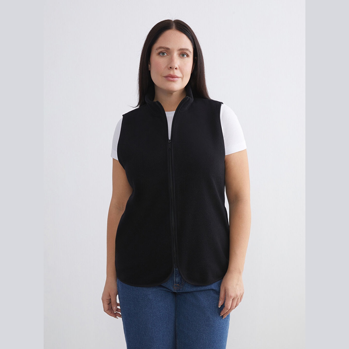 فيست نسائي شتوي من LCWAIKIKI Büyük Beden – أسود (خامة بولار، ياقة مستقيمة، تصميم بأكمام طويلة، قصة قياسية، مثالي للإطلالات الشتوية العملية ضمن مجموعة المقاسات الكبيرة)