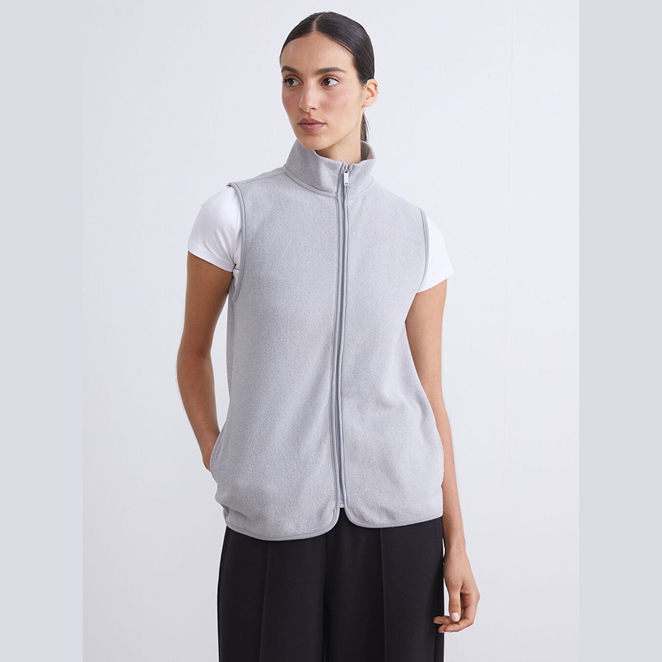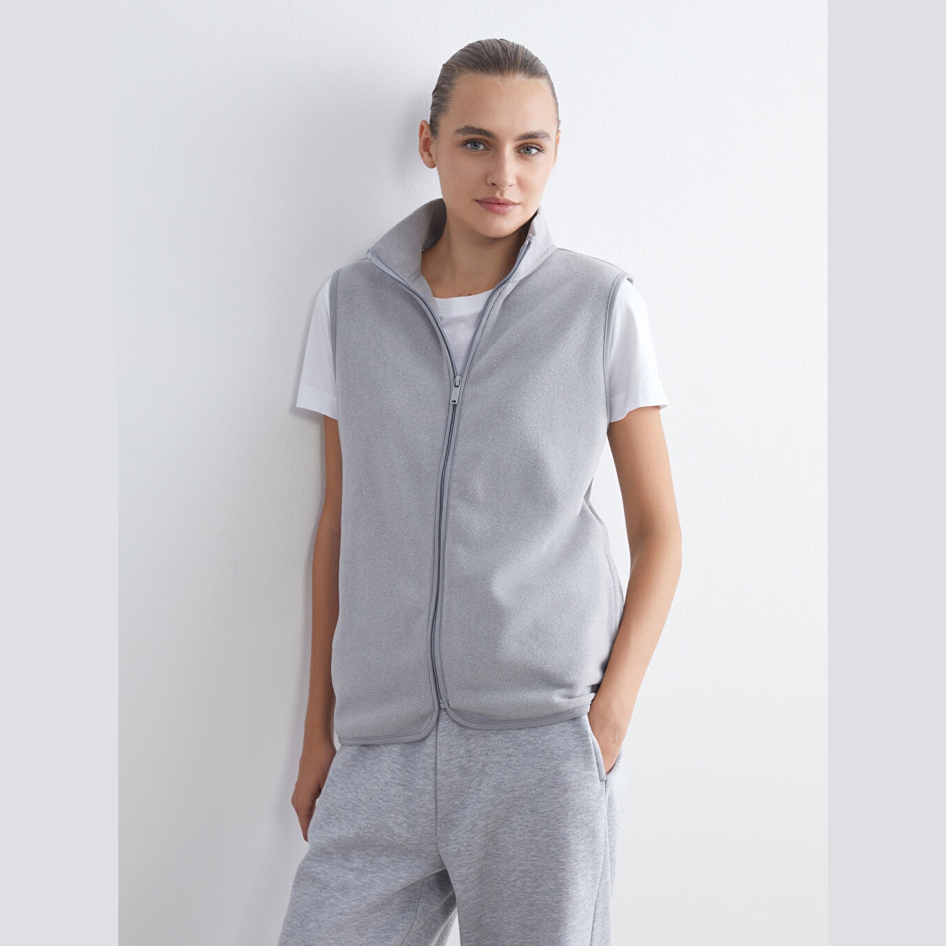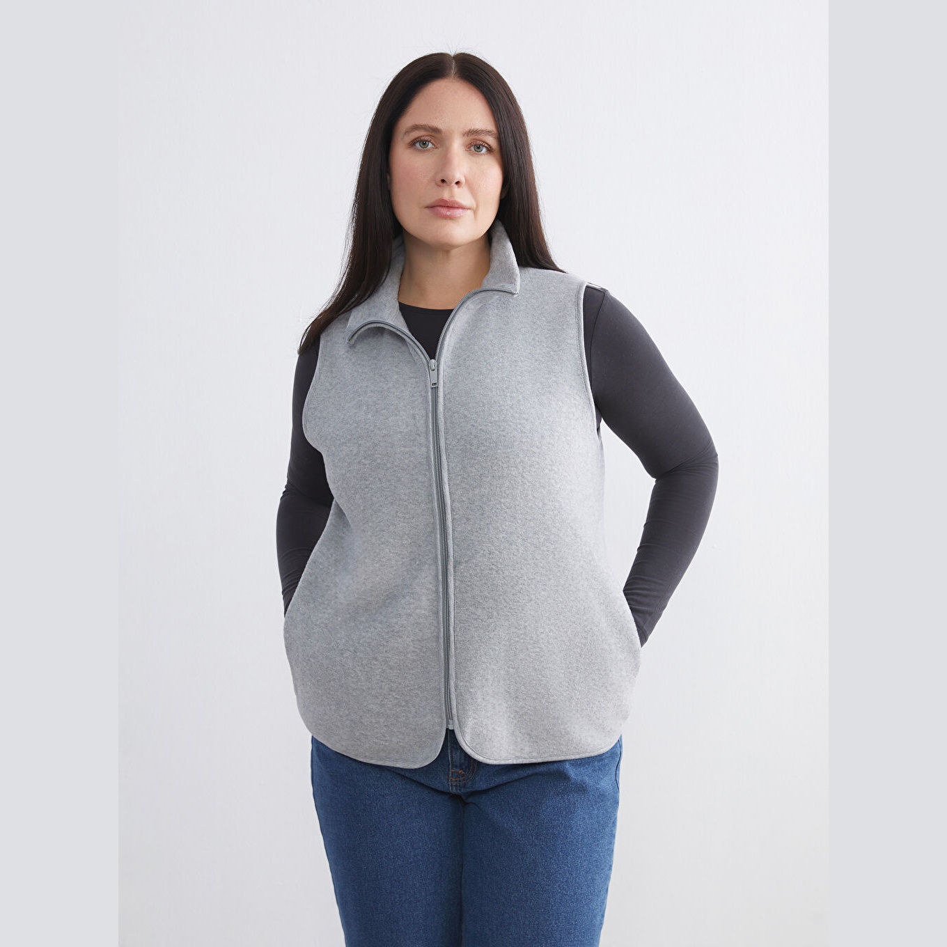 فيست نسائي شتوي من LCWAIKIKI Büyük Beden – رمادي (خامة بولار، ياقة مستقيمة، تصميم بأكمام طويلة، قصة قياسية، مثالي للإطلالات الشتوية العملية ضمن مجموعة المقاسات الكبيرة)