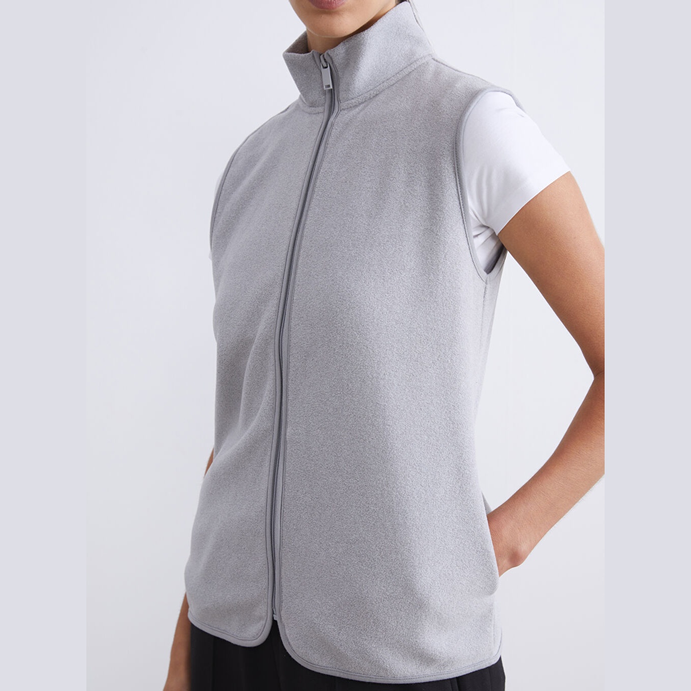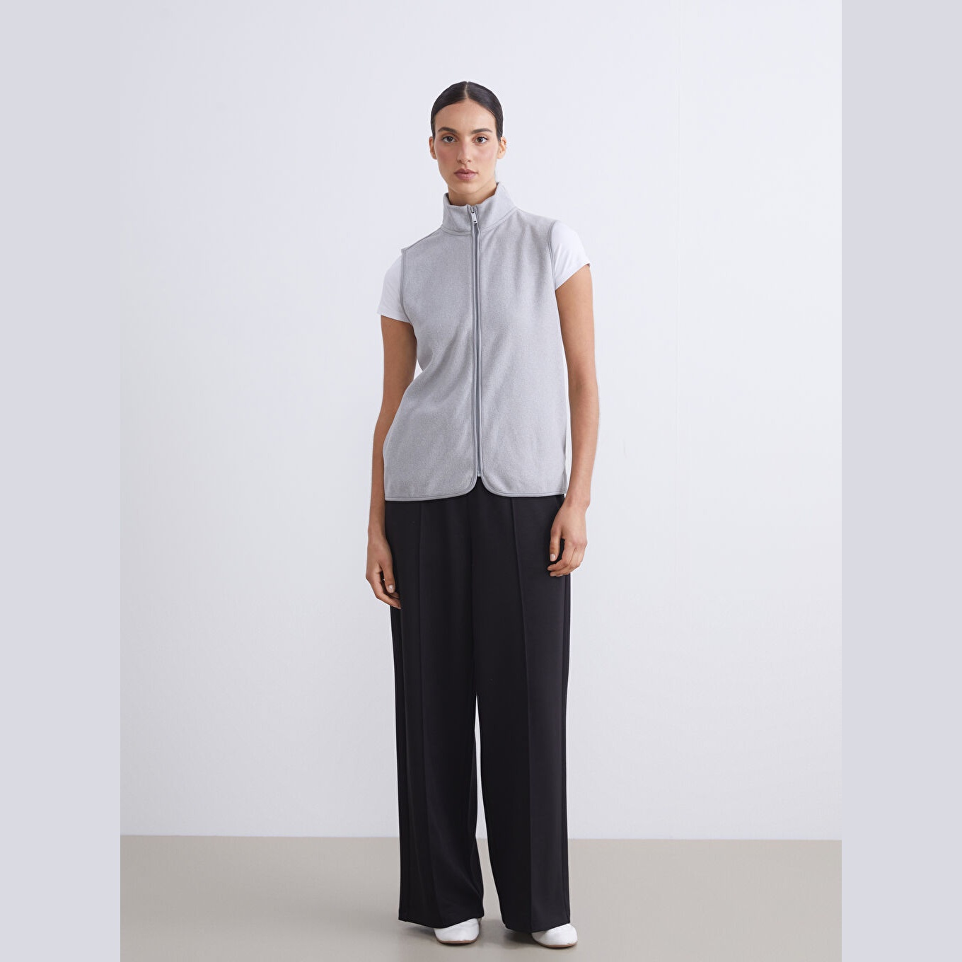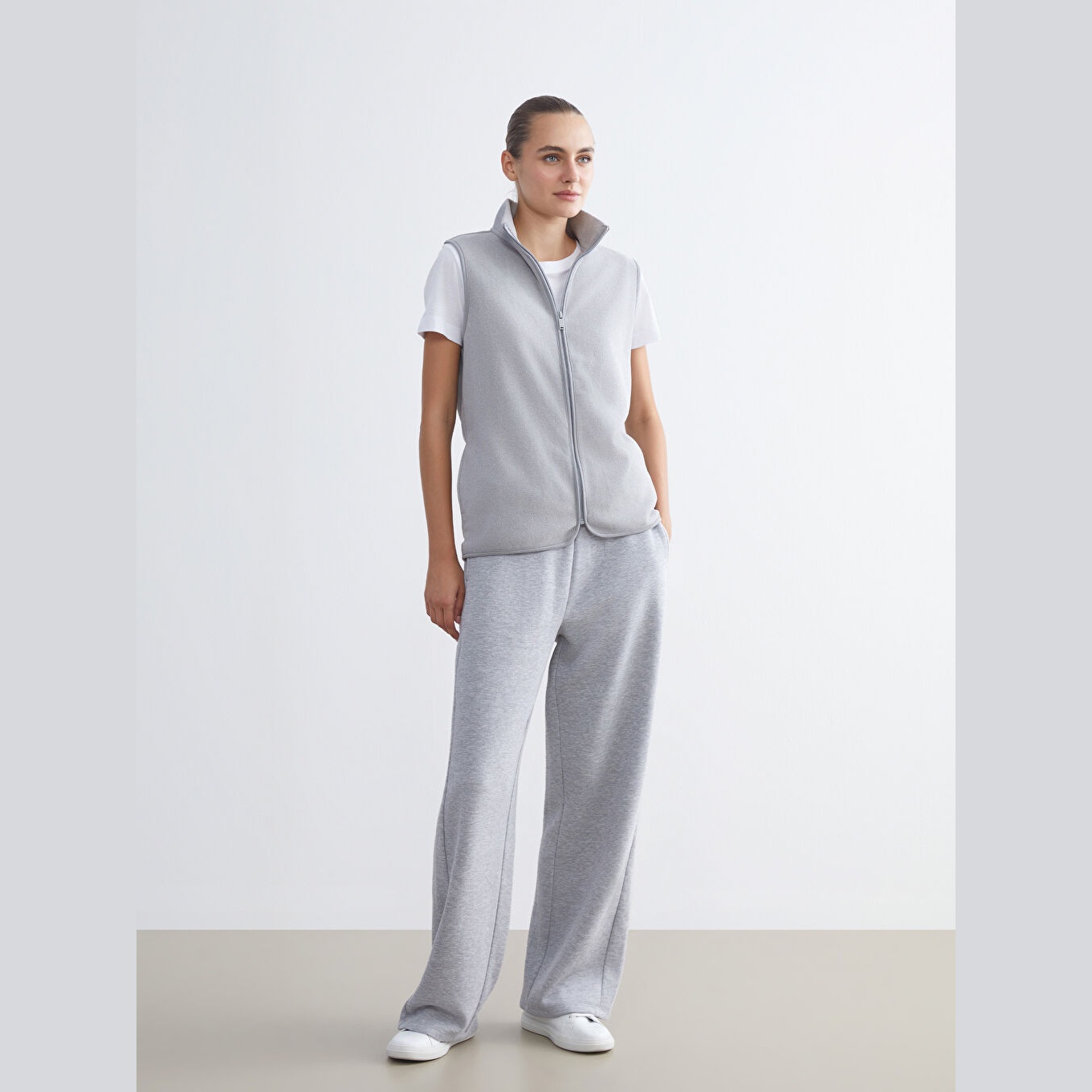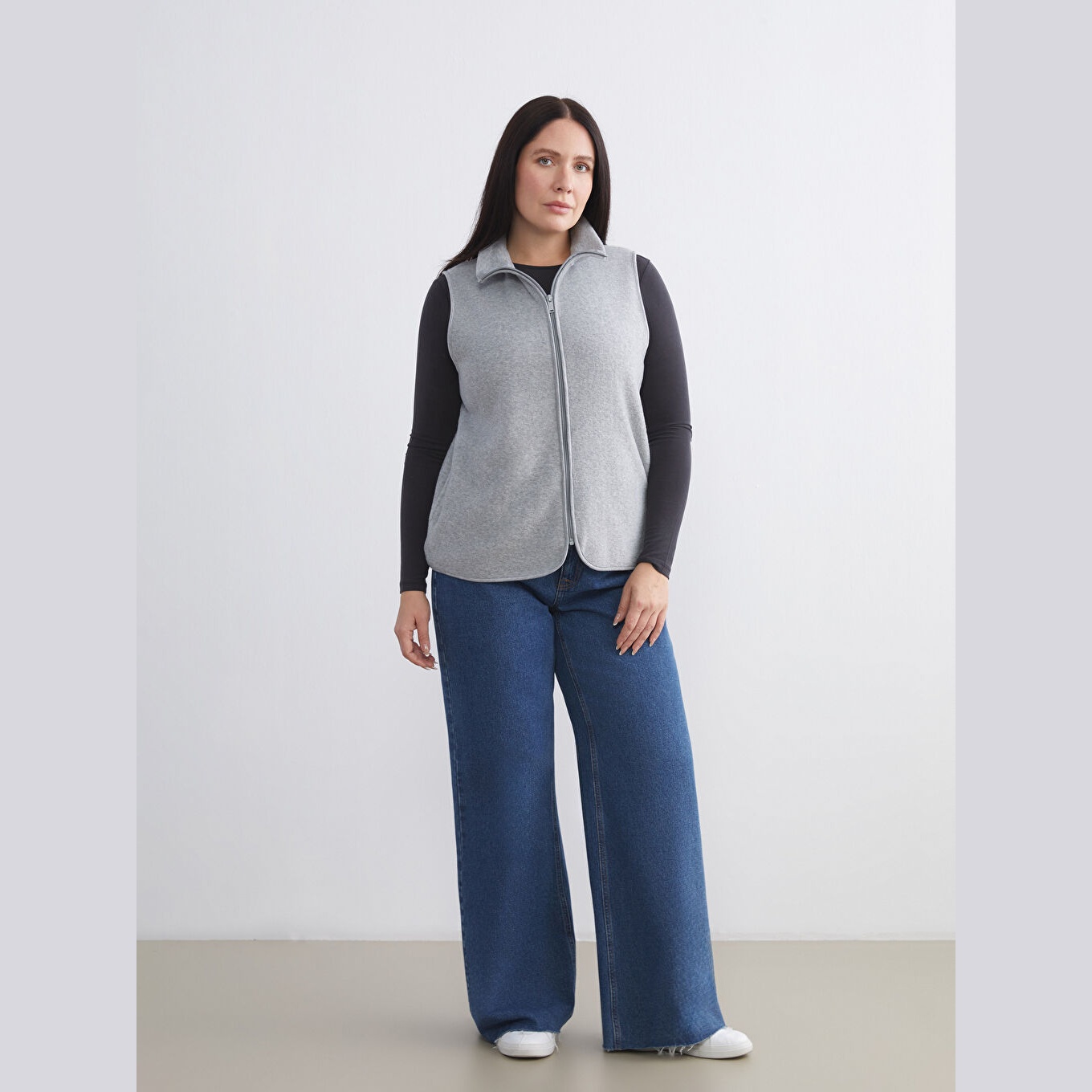 فيست نسائي شتوي من LCWAIKIKI Büyük Beden – رمادي (خامة بولار، ياقة مستقيمة، تصميم بأكمام طويلة، قصة قياسية، مثالي للإطلالات الشتوية العملية ضمن مجموعة المقاسات الكبيرة)