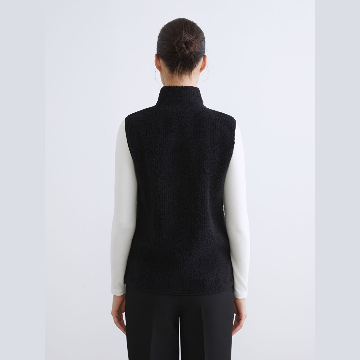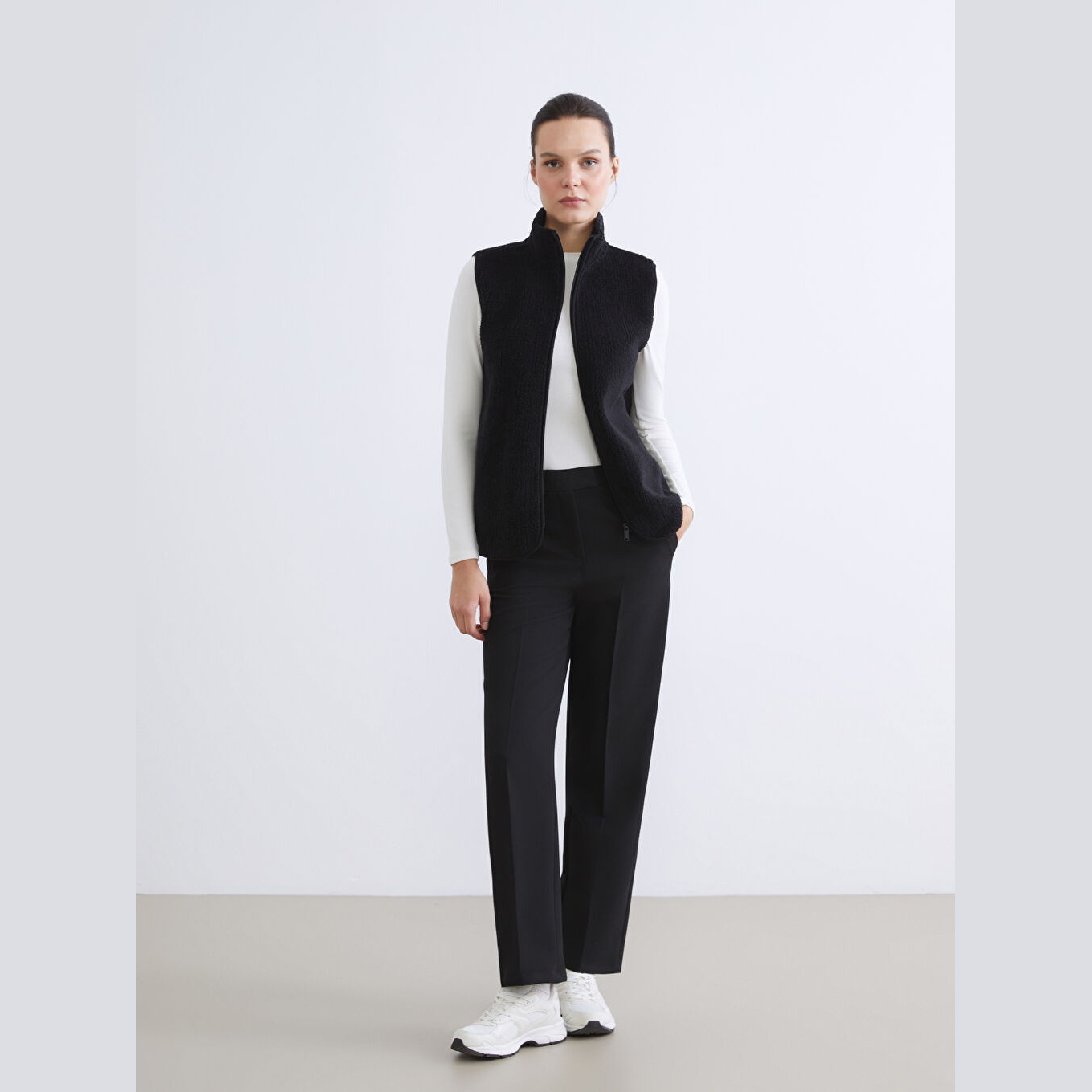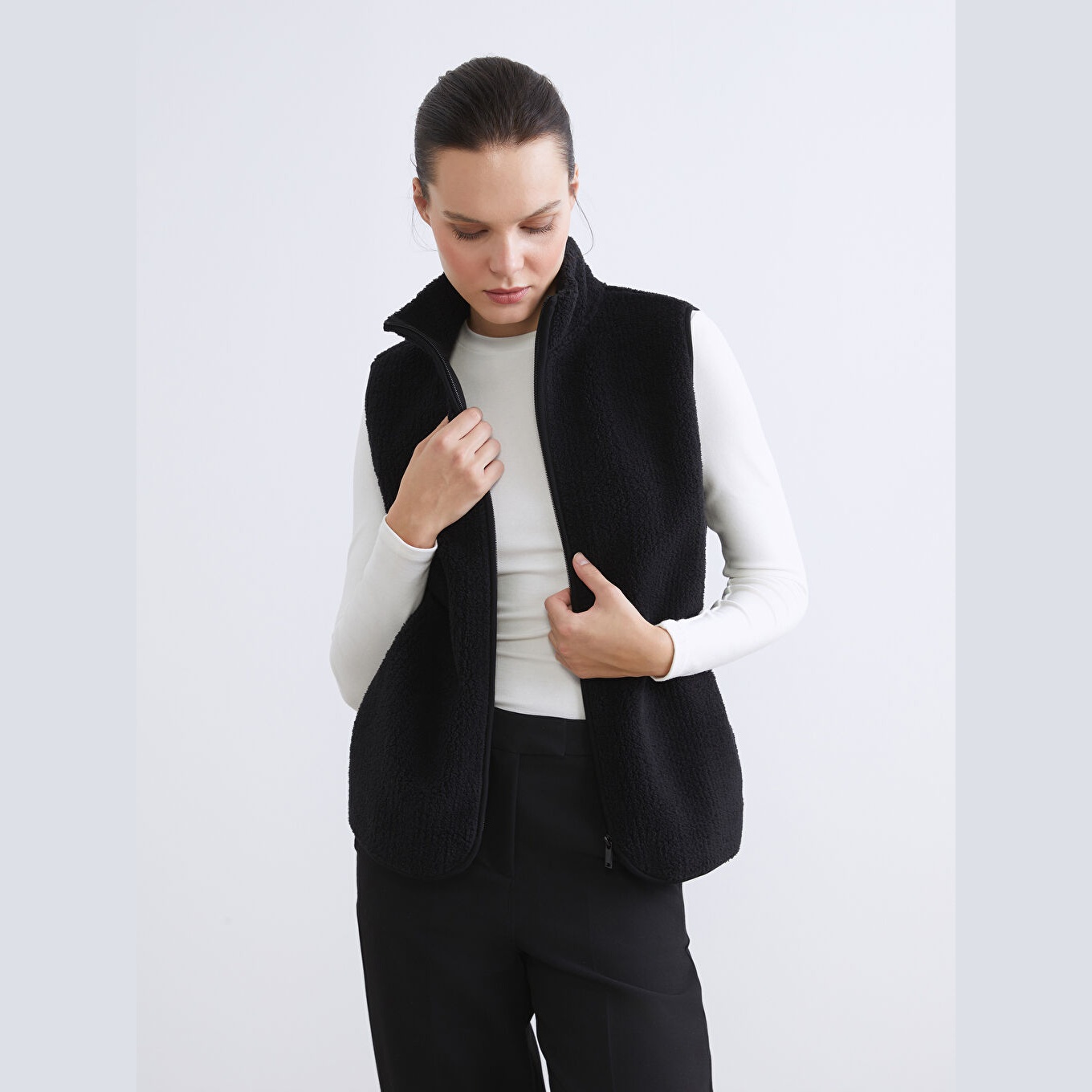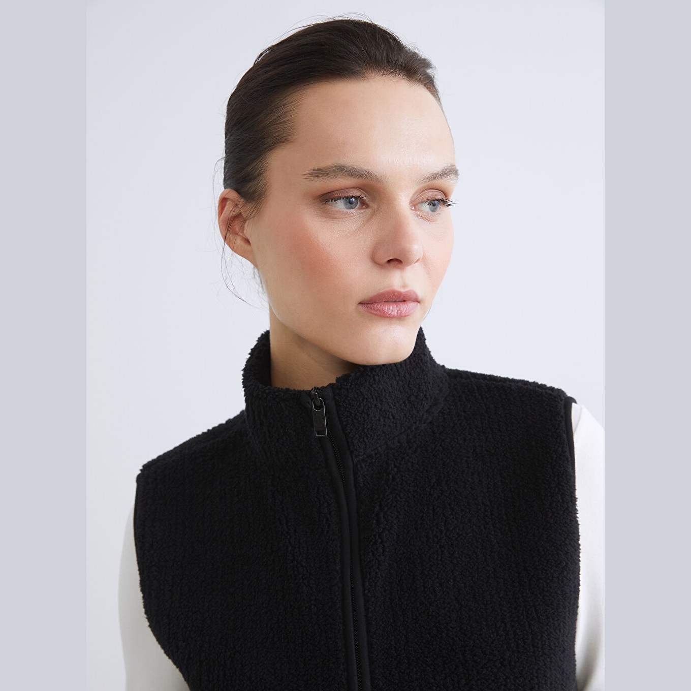 فيست نسائي شتوي من LCWAIKIKI Basic – أسود (بولار بياقة مستقيمة، تصميم بسحاب أمامي، قصة قياسية، مثالي للإطلالات الشتوية العملية)