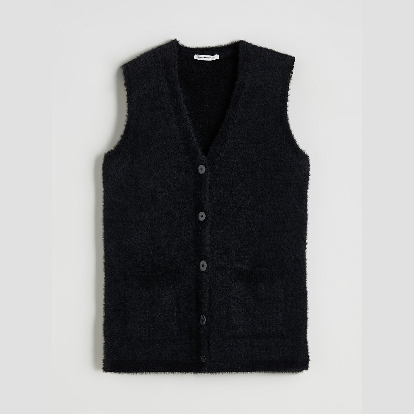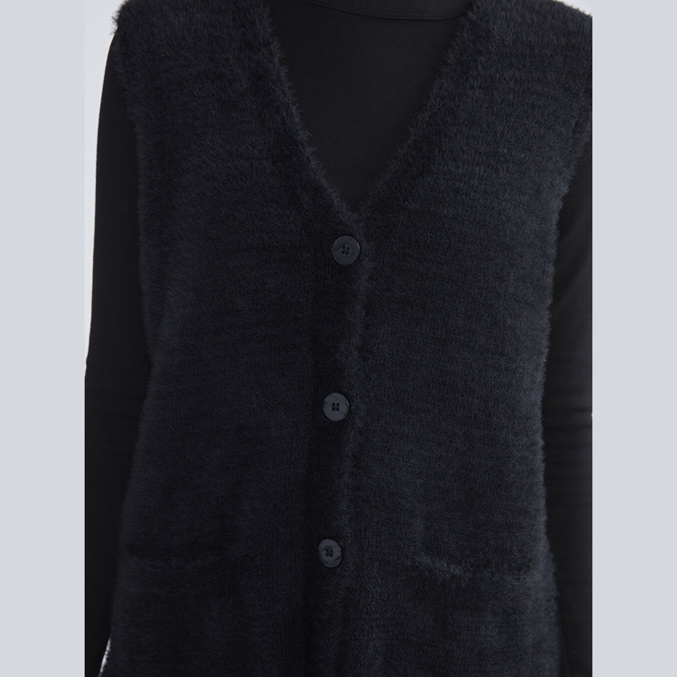 فيست نسائي من LCW Grace – أسود (خامة بيلوش ناعمة، ياقة V، تصميم بأزرار، قصة قياسية، مثالي للإطلالات الشتوية ضمن مجموعة المقاسات الكبيرة)