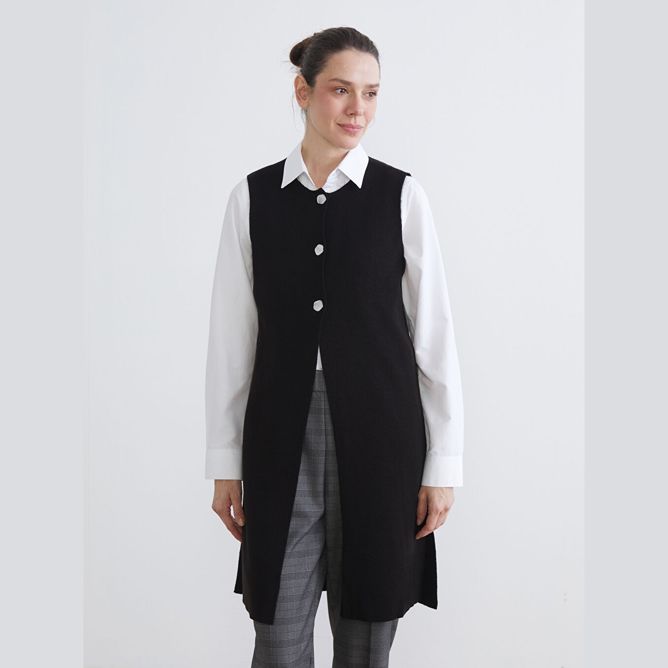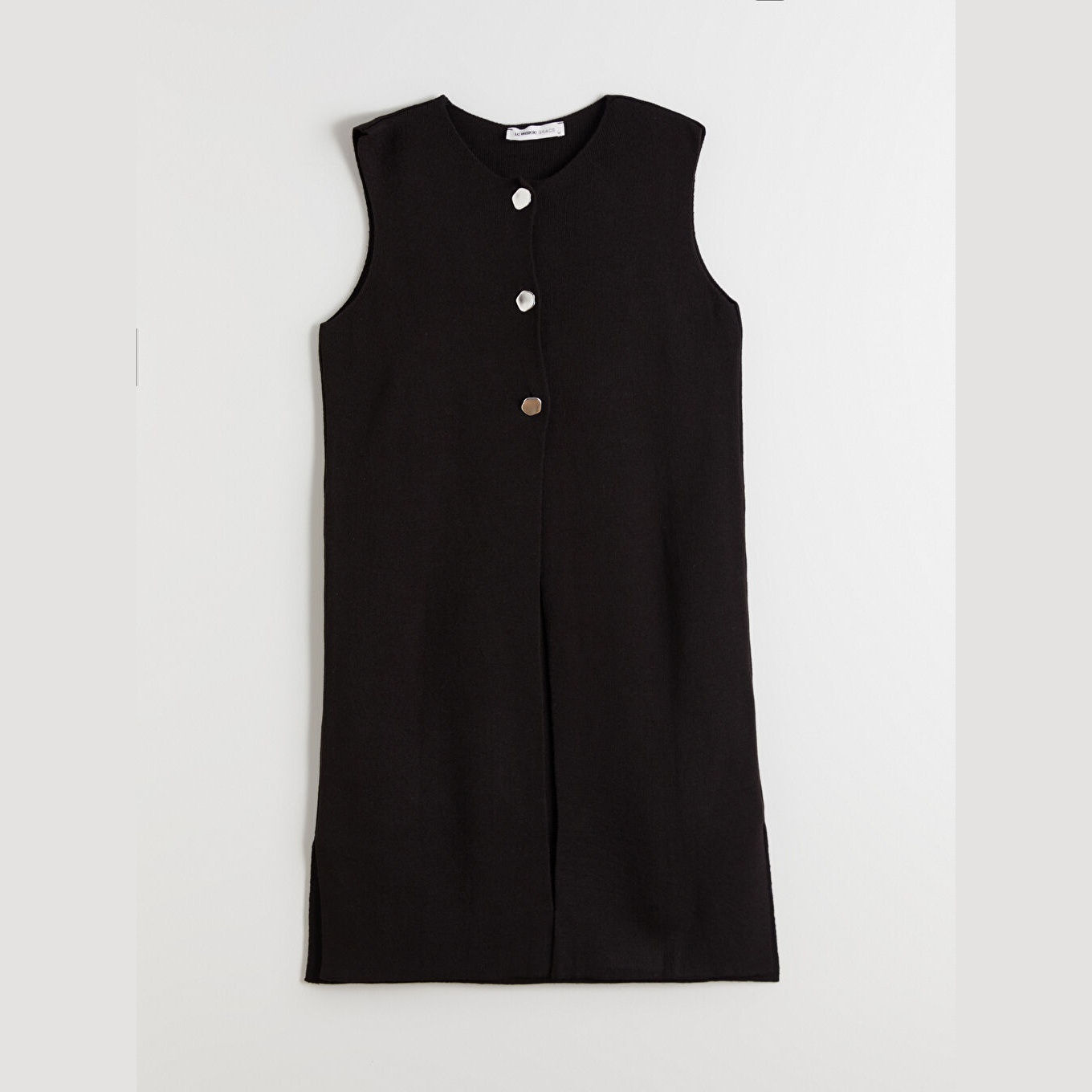 فيست نسائي من LCW Grace – أسود (تريكو بياقة دائرية، تصميم بأزرار، قصة قياسية، طول يصل إلى الورك، مثالي للإطلالات الخريفية والشتوية ضمن مجموعة المقاسات الكبيرة)