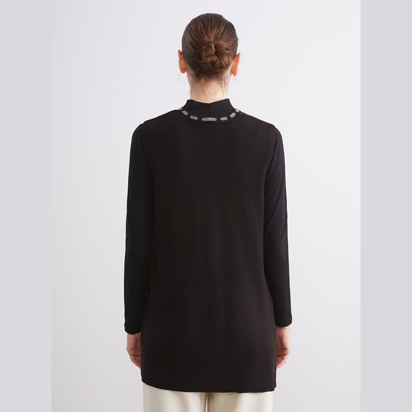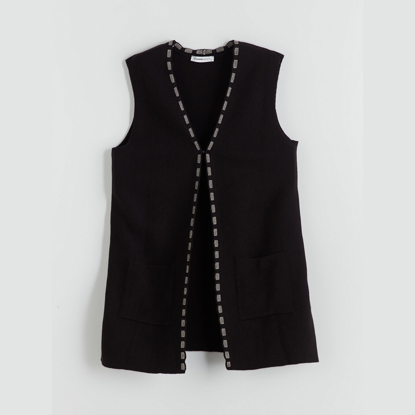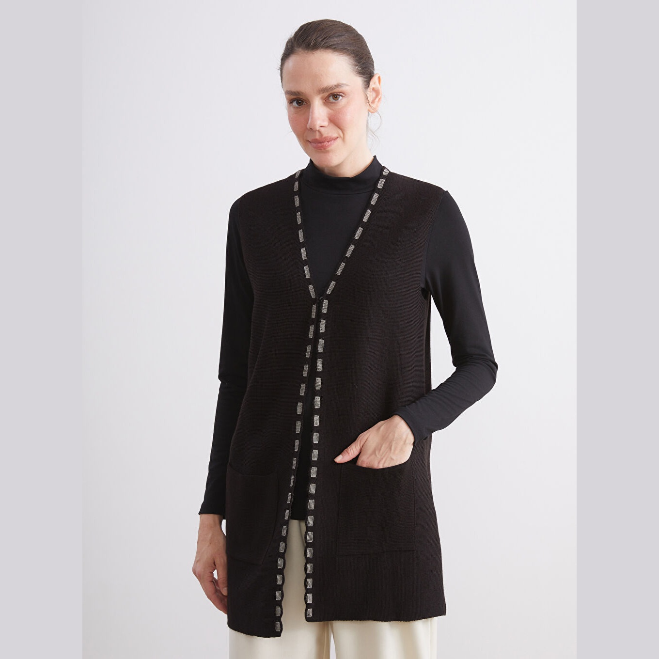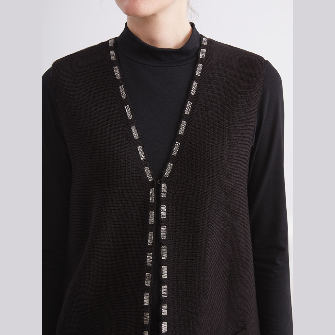 فيست تريكو بلون أسود من مجموعة LCW Grace Büyük Beden، تصميم بياقة V أنيقة تضيف لمسة أنثوية، قصة قياسية (Standart & Regular) تمنحك مظهرًا متوازنًا، خامة تريكو ناعمة بنقشة خفيفة مصنوعة من %100 أكريليك، بدون أكمام، بسماكة متوسطة، بطول ميدي يُقاس من الكتف، مثالي للتنسيق مع القمصان أو البلوزات في الإطلالات اليومية أو العملية خلال الخريف والشتاء.