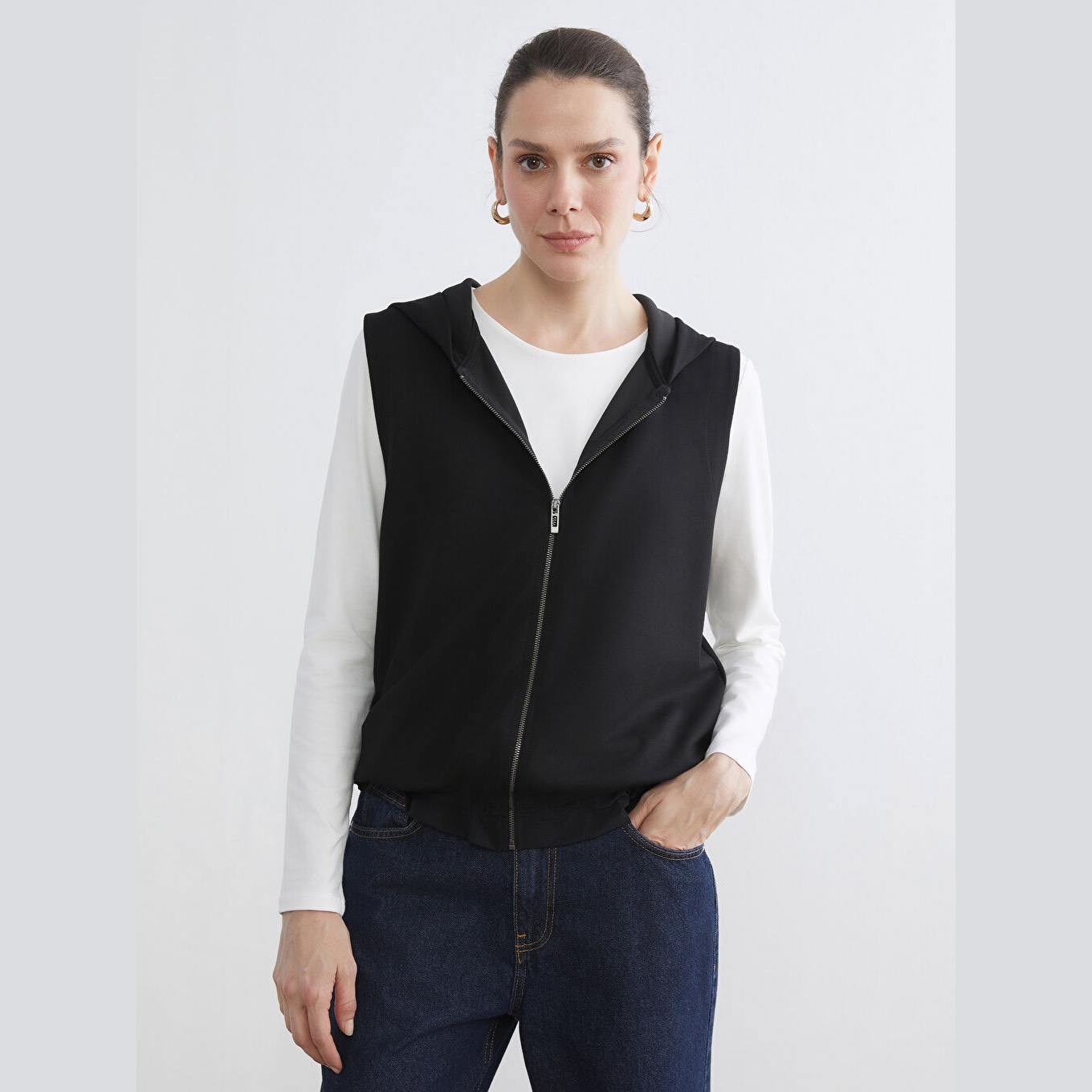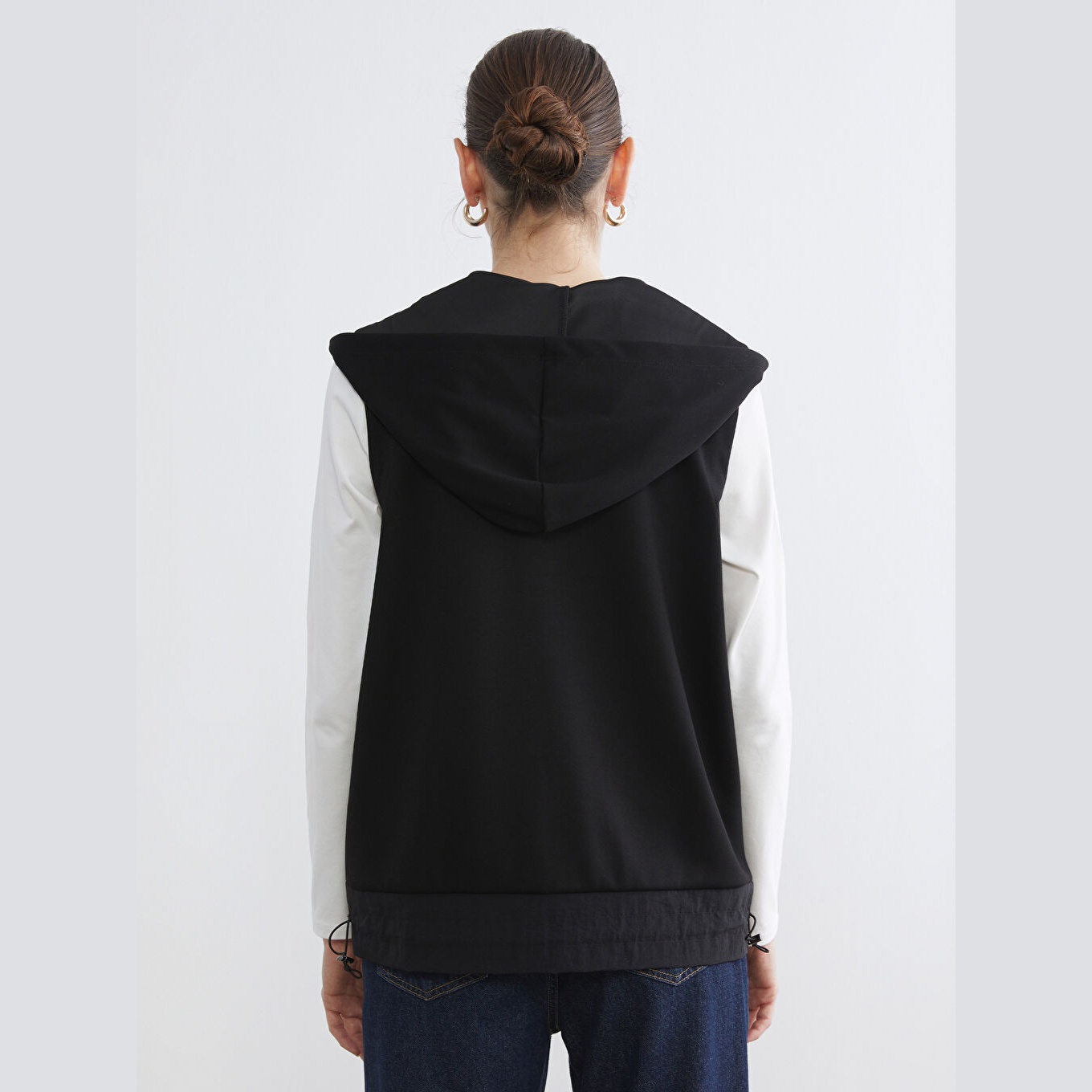 فيست شتوي بلون أسود من مجموعة LC Waikiki، تصميم مزوّد بـقبعة مدمجة تضيف حماية إضافية من البرد، قصة مريحة وواسعة تمنحك حرية حركة، خامة مزدوجة من مزيج %48 بوليستر، %47 فيسكون، %5 إيلاستان مع طبقة خارجية من %100 بولياميد، بدون أكمام، بسماكة متوسطة، مزوّد بسحاب أمامي، مثالي للإطلالات اليومية أو العملية خلال فصل الشتاء.