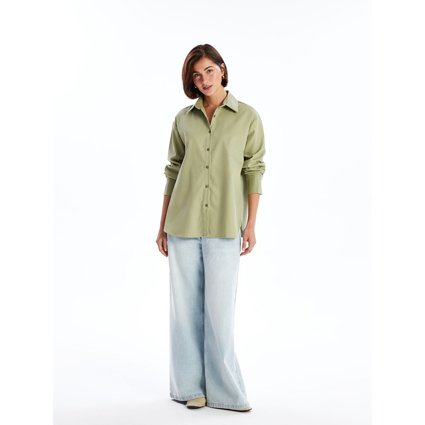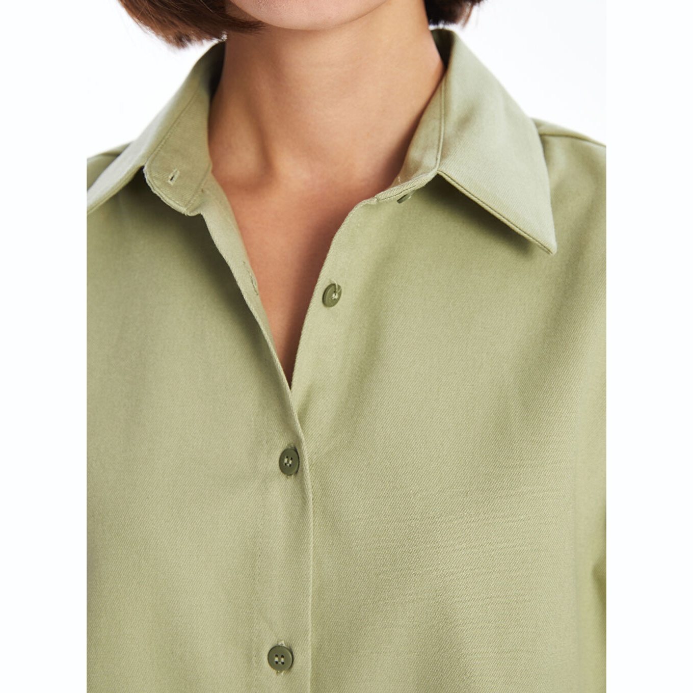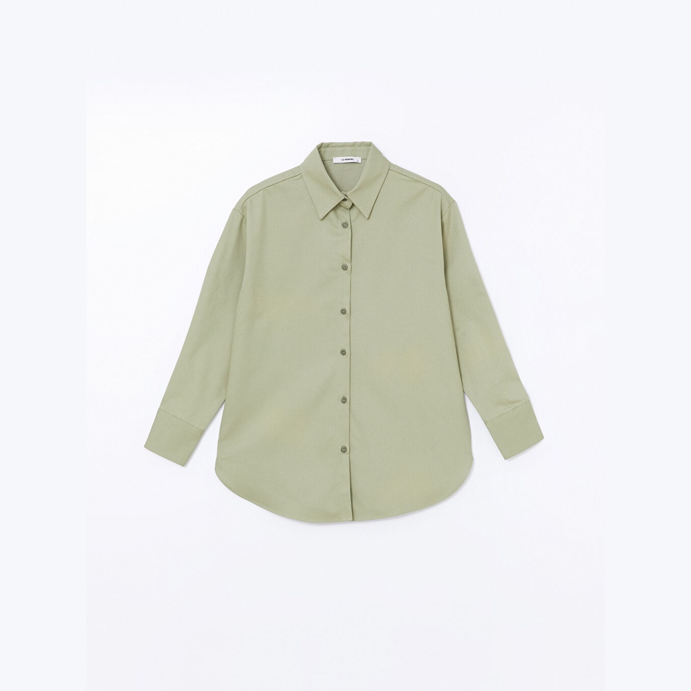 قميص عملي بلون أخضر سادة من مجموعة LC Waikiki ، يتميز بياقة قميص تقليدية تضيف لمسة رسمية ناعمة، وقصة واسعة (Oversize) تمنحك مظهرًا عصريًا ومريحًا. مصنوع من خامة جبردين قطنية 100%، بأكمام طويلة، بسماكة متوسطة، بطول يصل إلى الورك، ويُغلق بأزرار أمامية، مثالي للتنسيق مع البنطال القماشي أو الجينز في الإطلالات اليومية أو العملية.