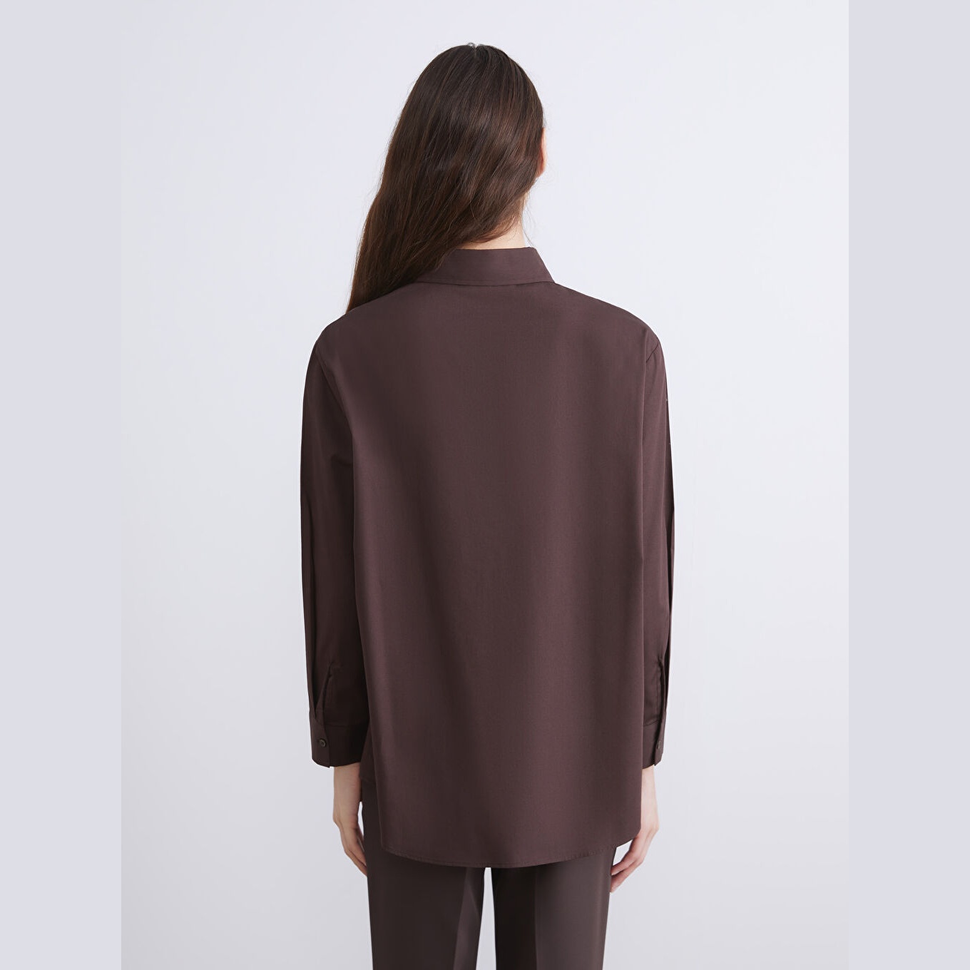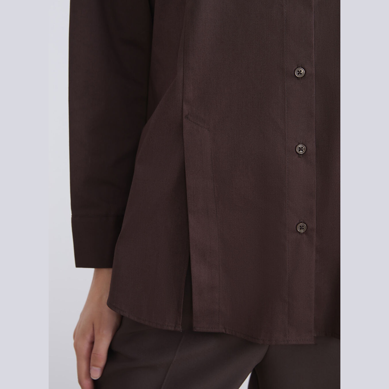 تونيك قميص نسائي واسع قصير – إكرو (ياقة قميص، خامة بوبلين، قصة فضفاضة، تصميم عملي بأزرار)