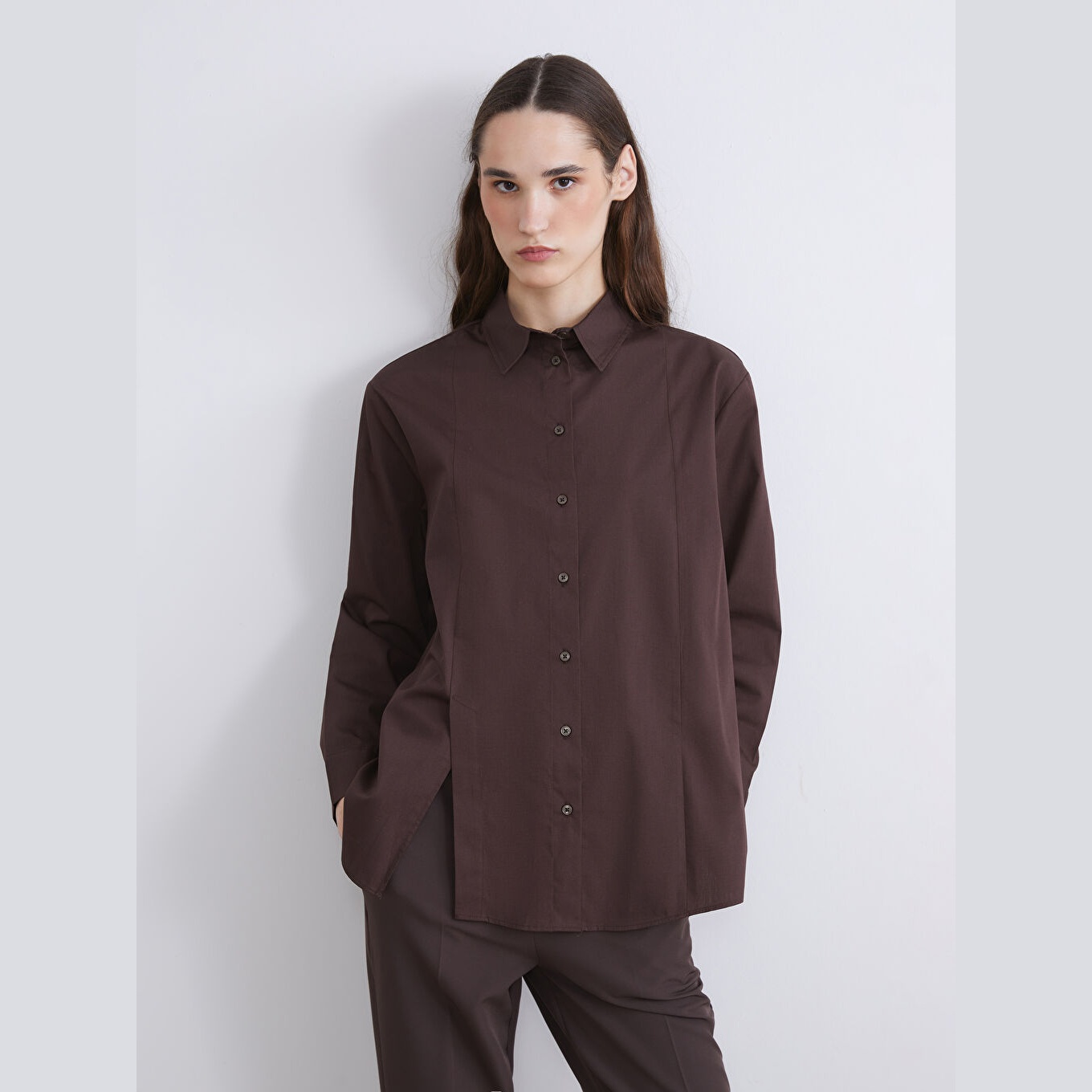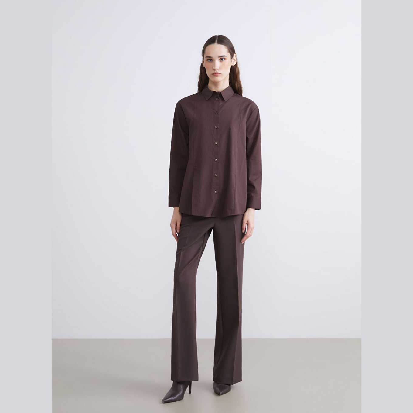 تونيك أنيق بلون إكرو سادة من مجموعة LCW Modest، يتميز بياقة قميص تقليدية تضيف لمسة رسمية ناعمة، وقصة فضفاضة (Loose Fit) تمنحك مظهرًا مريحًا وعصريًا. مصنوع من خامة بوبلين قطنية 100%، بأكمام طويلة، بسماكة خفيفة، بطول قصير مناسب للتنسيقات اليومية، ويُغلق بأزرار أمامية، مثالي للتنسيق مع البنطال عالي الخصر أو التنورة المحتشمة.