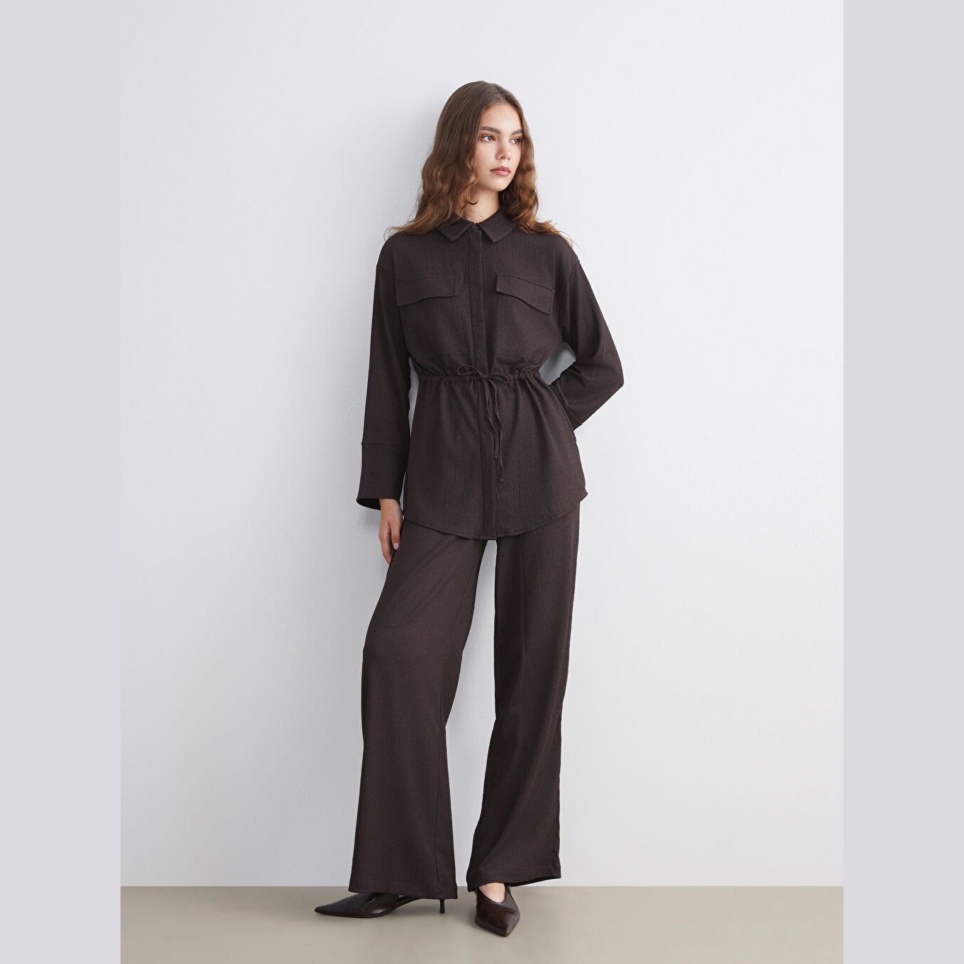 تونيك أنيق بلون بني سادة من مجموعة LCW Modest، يتميز بياقة قميص تقليدية تضيف لمسة رسمية ناعمة، وقصة فضفاضة (Loose Fit) تمنحك مظهرًا مريحًا وعصريًا. مصنوع من خامة راشيل متوسطة السماكة بتركيبة %99 بوليستر، %1 إيلاستان، بأكمام طويلة، بطول يصل إلى الورك، ويُغلق بأزرار أمامية، مثالي للتنسيق مع البنطال القماشي أو الجينز في الإطلالات اليومية أو العملية.