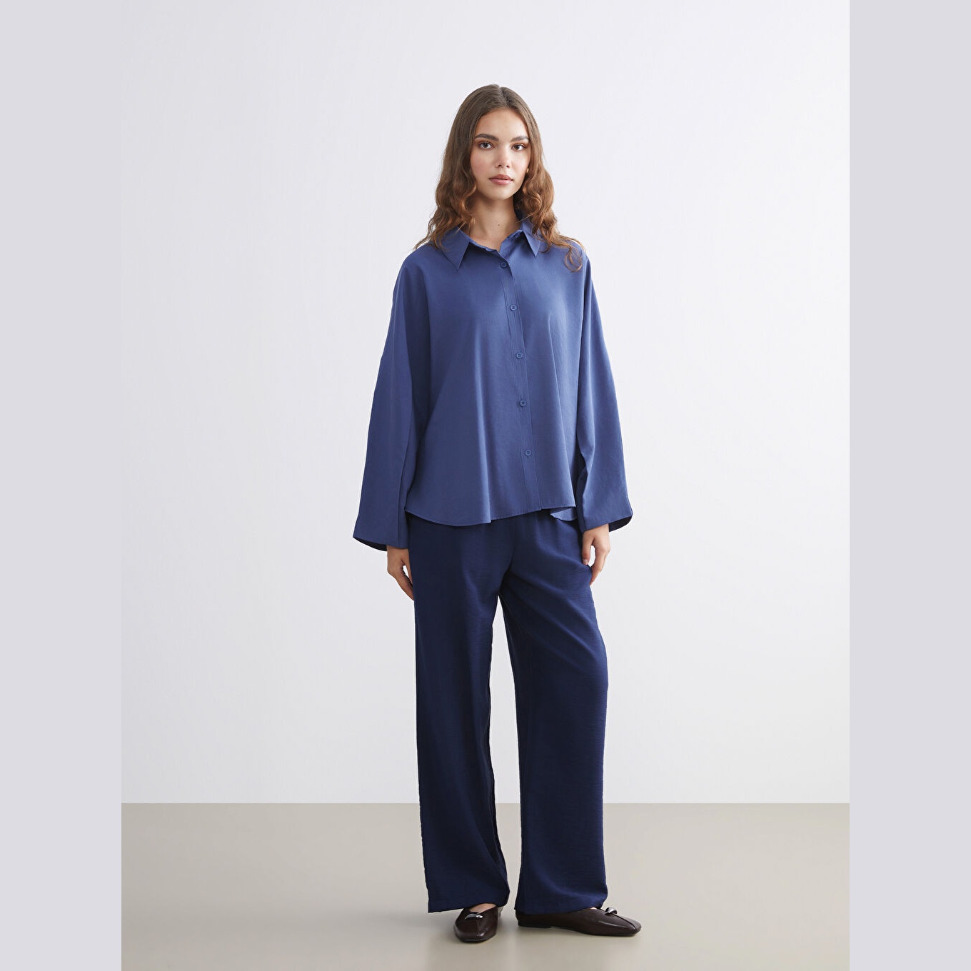 تونيك أنيق بلون أزرق سادة من مجموعة LCW Modest، يتميز بياقة قميص تقليدية تضيف لمسة رسمية ناعمة، وقصة أوفرسايز (Oversize Fit) تمنحك مظهرًا عصريًا ومريحًا. مصنوع من خامة ناعمة ومريحة بتركيبة %87 فيسكوز، %13 بوليستر، بأكمام طويلة، بسماكة متوسطة، بطول يصل إلى الورك، ويُغلق بأزرار أمامية، مثالي للتنسيق مع البنطال القماشي أو الجينز في الإطلالات اليومية أو العملية.