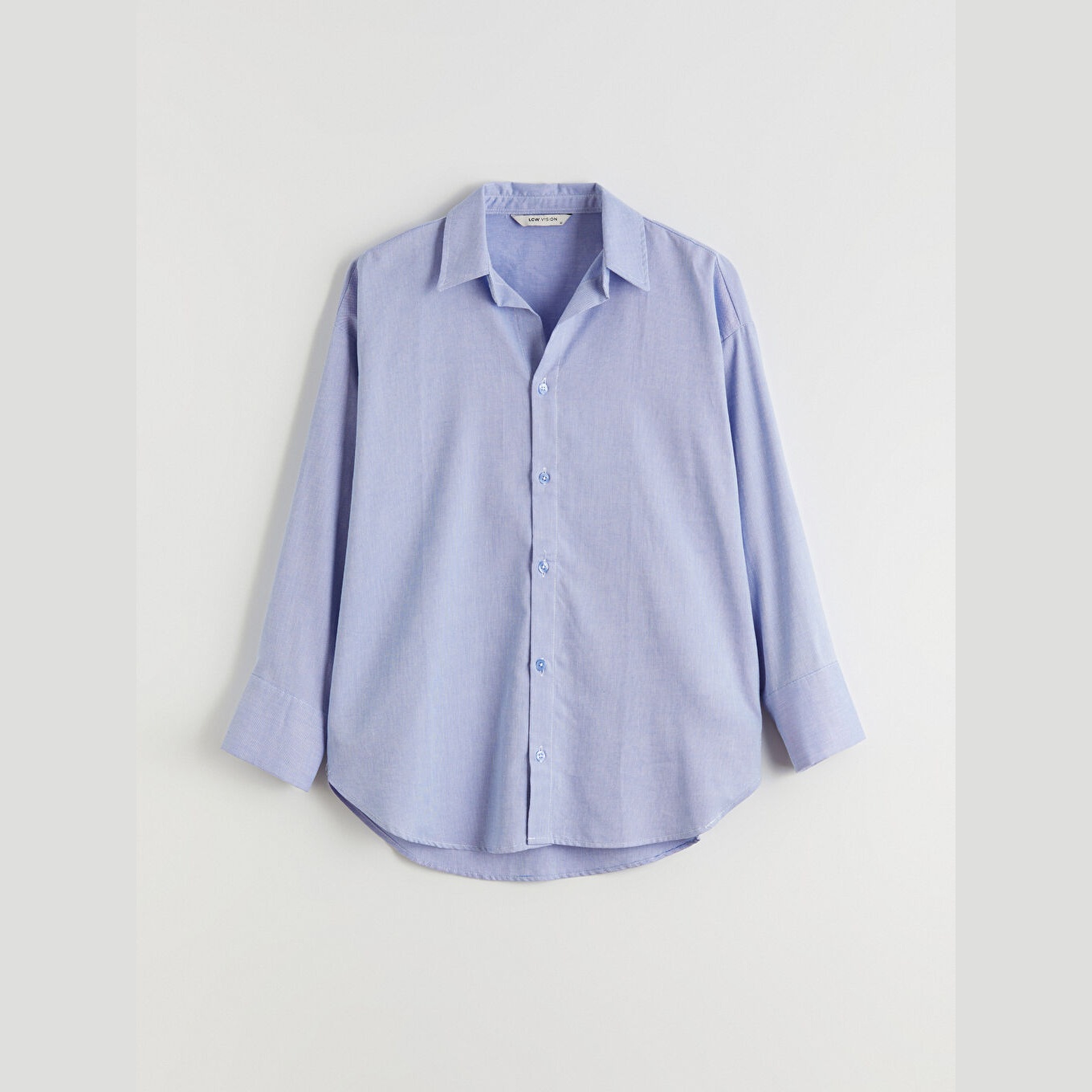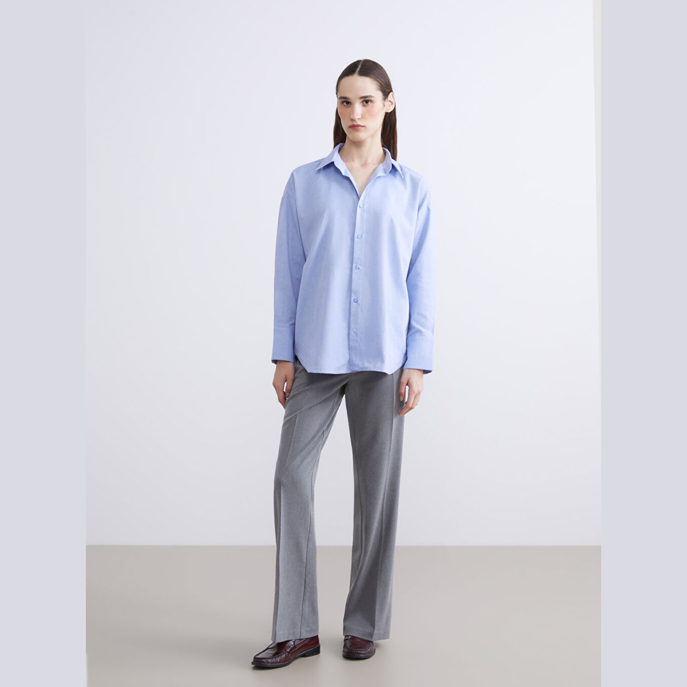 قميص أنيق بلون أزرق سادة من مجموعة LCWAIKIKI Classic، يتميز بياقة قميص تقليدية تضيف لمسة رسمية ناعمة، وقصة أوفرسايز (Oversize Fit) تمنحك مظهرًا عصريًا ومريحًا. مصنوع من خامة أوكسفورد قطنية 100%، بأكمام طويلة، بسماكة متوسطة، بطول يصل إلى الورك، ويُغلق بأزرار أمامية، مثالي للتنسيق مع البنطال القماشي أو الجينز في الإطلالات اليومية أو العملية.