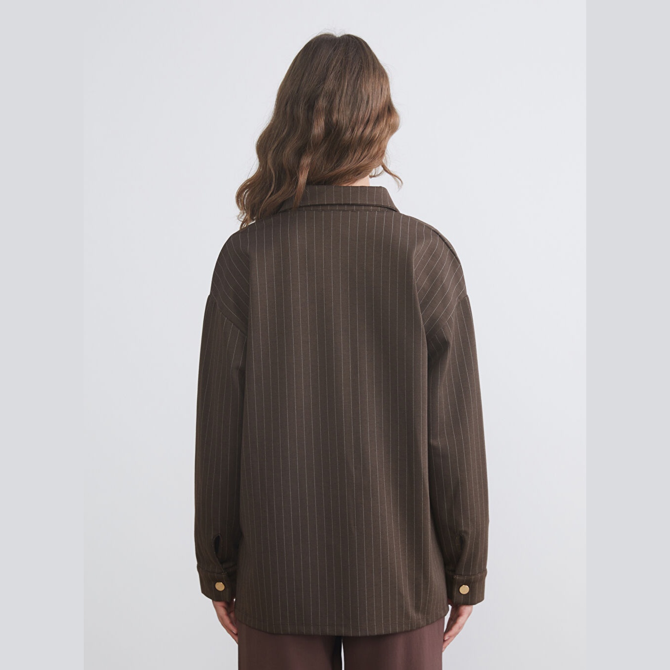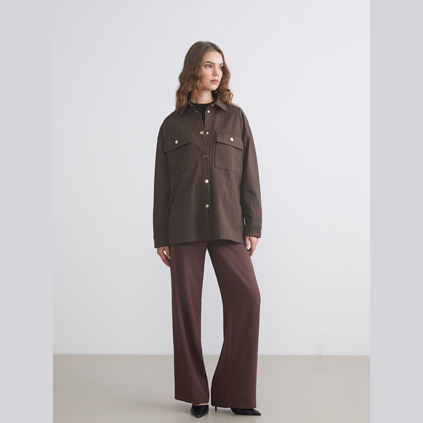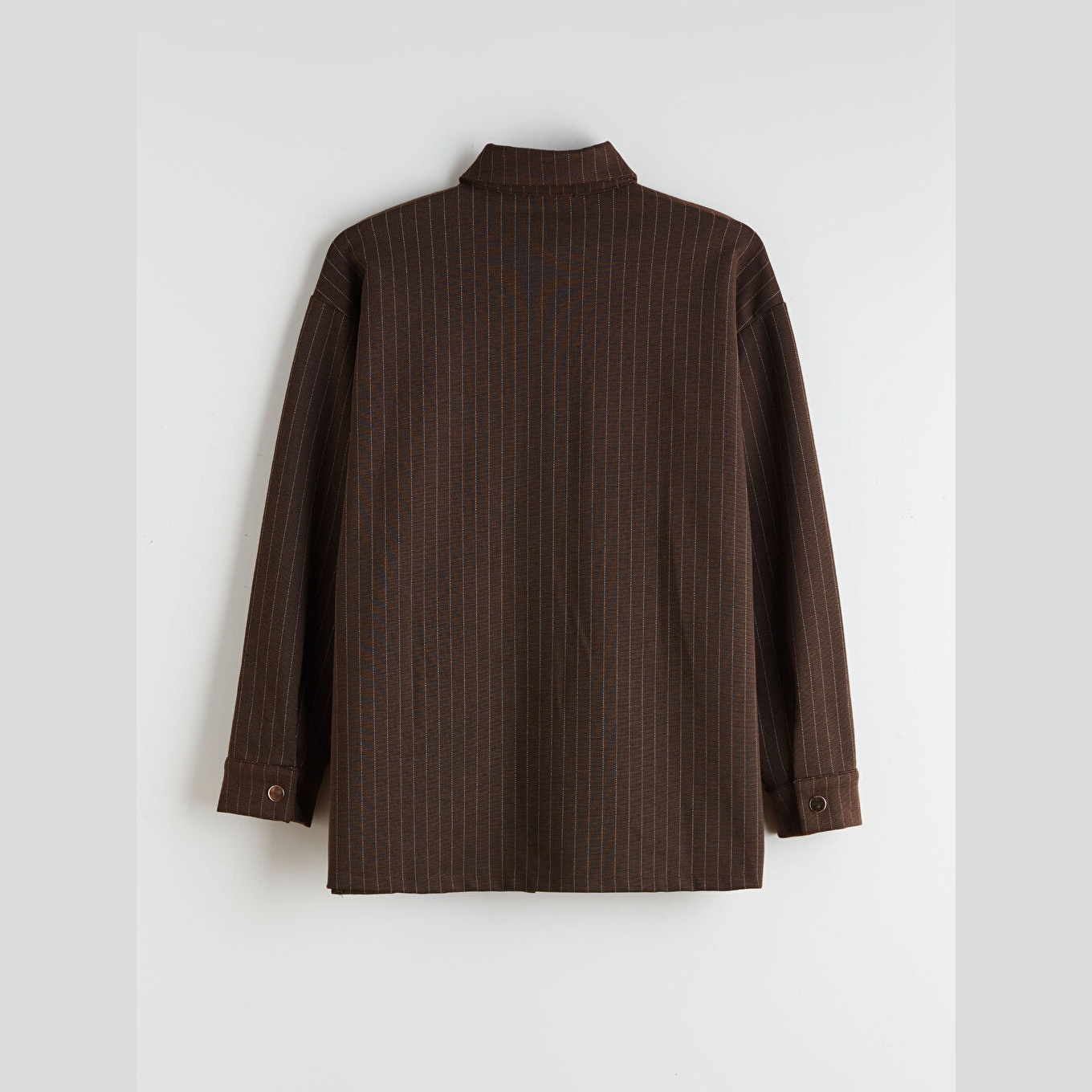 تونيك أنيق بلون بيج مخطط بخطوط ناعمة من مجموعة LCW Modest – الأزياء المحتشمة، يتميز بياقة قميص تقليدية تضيف لمسة رسمية ناعمة، وقصة أوفرسايز (Oversize Fit) تمنحك مظهرًا عصريًا ومريحًا. مصنوع من خامة إنترلوك مرنة ومريحة بتركيبة %71 بوليستر، %24 فيسكوز، %5 إيلاستان، بأكمام طويلة، بسماكة متوسطة، بطول يصل إلى الورك، ويُغلق بأزرار أمامية، مثالي للتنسيق مع البنطال القماشي أو الجينز في الإطلالات اليومية أو العملية.
