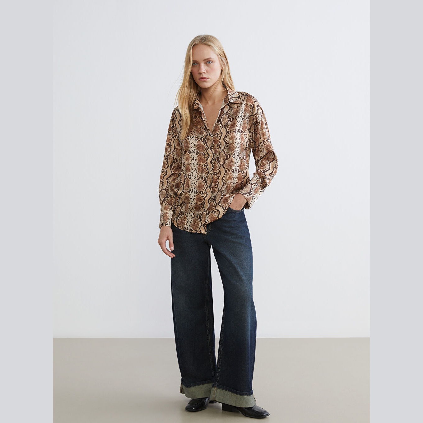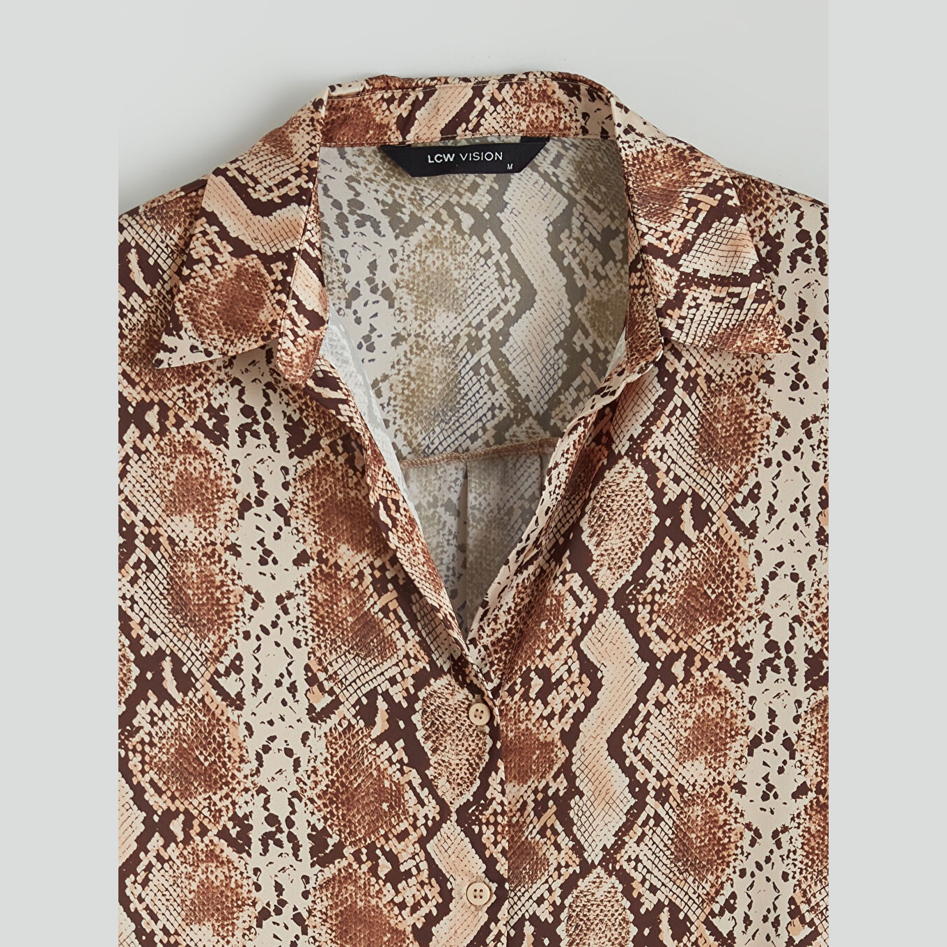 قميص أنيق بلون إكرو مزخرف بنقشة ناعمة من مجموعة LCW Vision – الأزياء العملية، يتميز بياقة قميص تقليدية تضيف لمسة رسمية أنيقة، وقصة فضفاضة (Loose Fit) تمنحك مظهرًا مريحًا وانسيابيًا. مصنوع من خامة خفيفة وناعمة بتركيبة %100 بوليستر، بأكمام طويلة، بسماكة خفيفة، بطول يصل إلى الورك، ويُغلق بأزرار أمامية، مثالي للتنسيق مع البنطال القماشي أو الجينز في الإطلالات اليومية أو العملية.