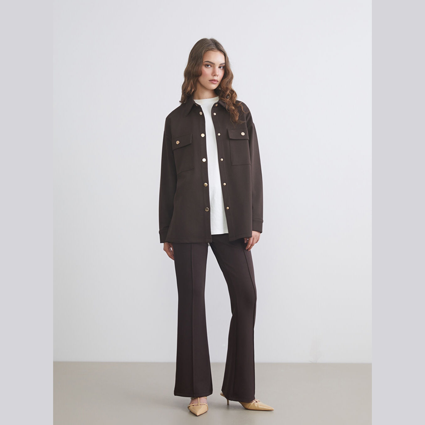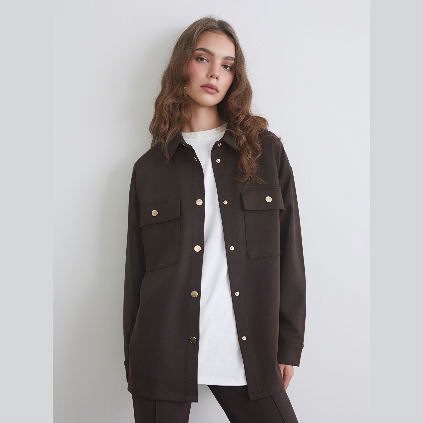 تونيك أنيق بلون بيج سادة من مجموعة LCW Modest – الأزياء المحتشمة، يتميز بياقة قميص تقليدية تضيف لمسة رسمية ناعمة، وقصة أوفرسايز (Oversize Fit) تمنحك مظهرًا مريحًا وانسيابيًا. مصنوع من خامة إنترلوك متوسطة السماكة بتركيبة %70 بوليستر، %27 فيسكوز، %3 إيلاستان، بأكمام طويلة، بطول يصل إلى الورك، ويُغلق بأزرار أمامية، مثالي للتنسيق مع البنطال القماشي أو الجينز في الإطلالات اليومية أو العملية.