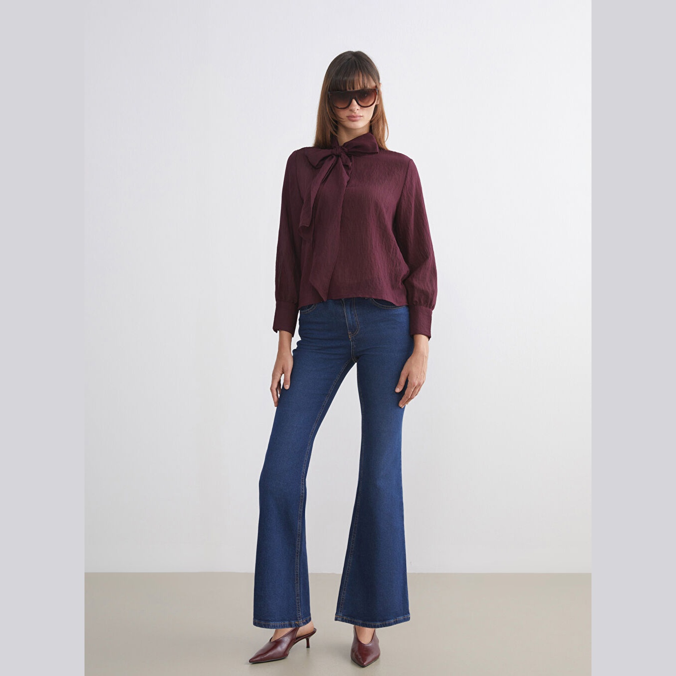 بلوز أنيق بلون عنابي سادة من مجموعة LCW Vision – الأزياء العملية، يتميز بياقة مربوطة أنثوية تضيف لمسة ناعمة، وقصة قياسية (Regular Fit) تمنحك مظهرًا متوازنًا ومناسبًا لمختلف الإطلالات. مصنوع من خامة شيفون مزخرف وخفيف بتركيبة %75 فيسكوز، %25 بولياميد، بأكمام طويلة، بسماكة خفيفة، بطول يصل إلى الورك، مثالي للتنسيق مع البنطال القماشي أو التنورة في الإطلالات اليومية أو العملية.