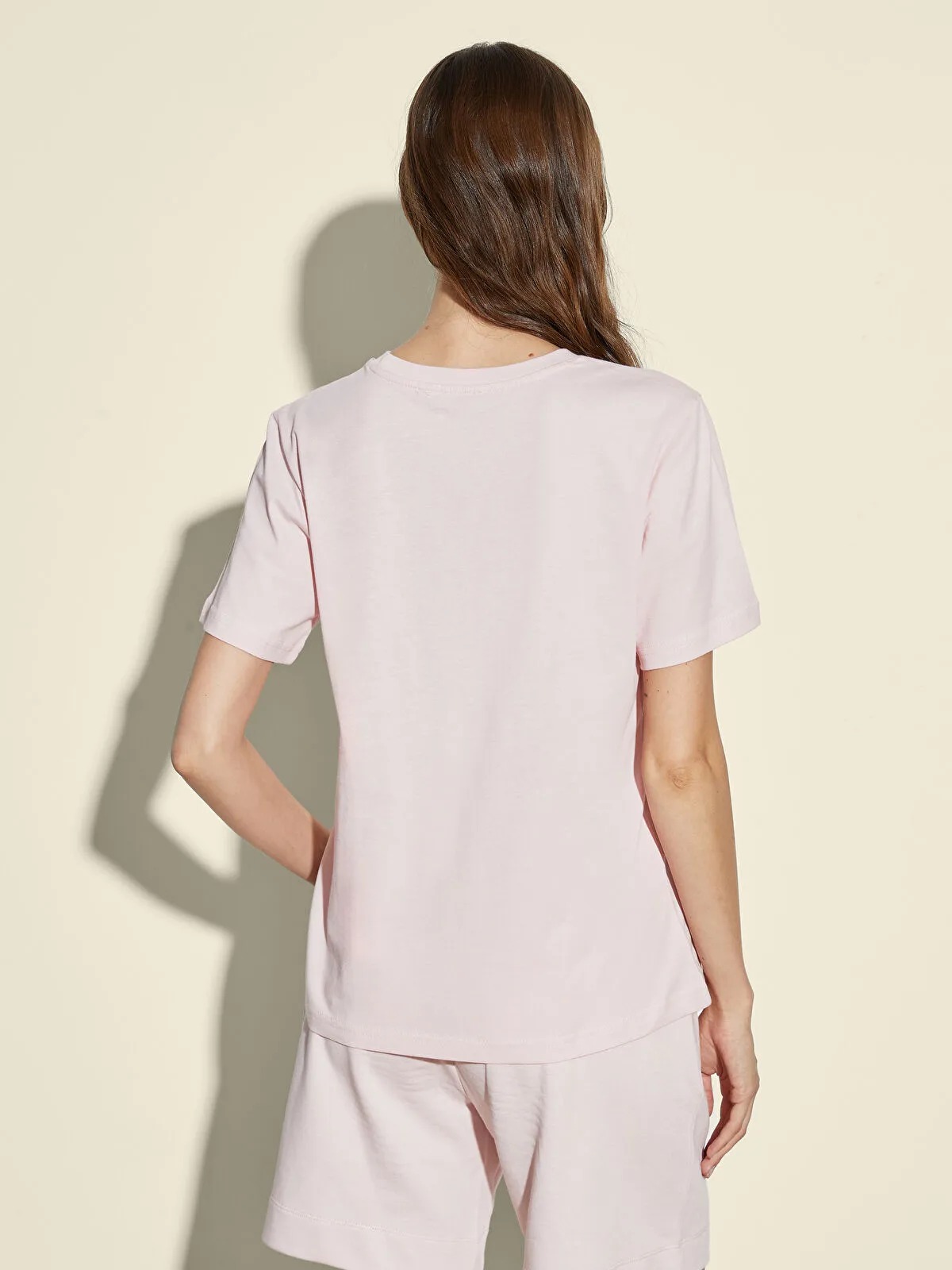القصة: Regular Fit — قصة قياسية مريحة لا تضيق الجسم، مع ياقة دائرية وأكمام قصيرة تمنح مظهرًا أنيقًا متناسقًا ومريحًا.