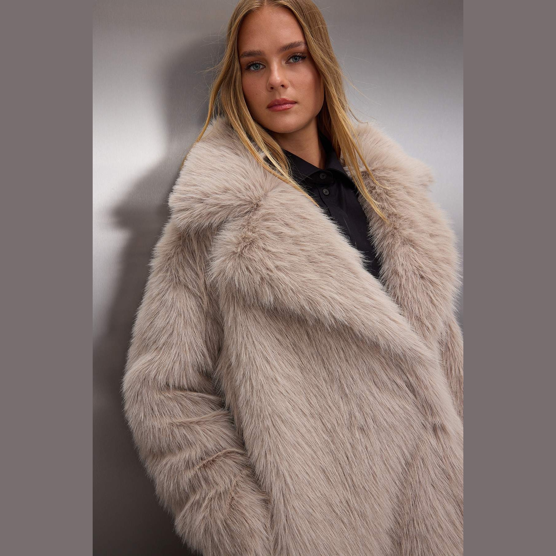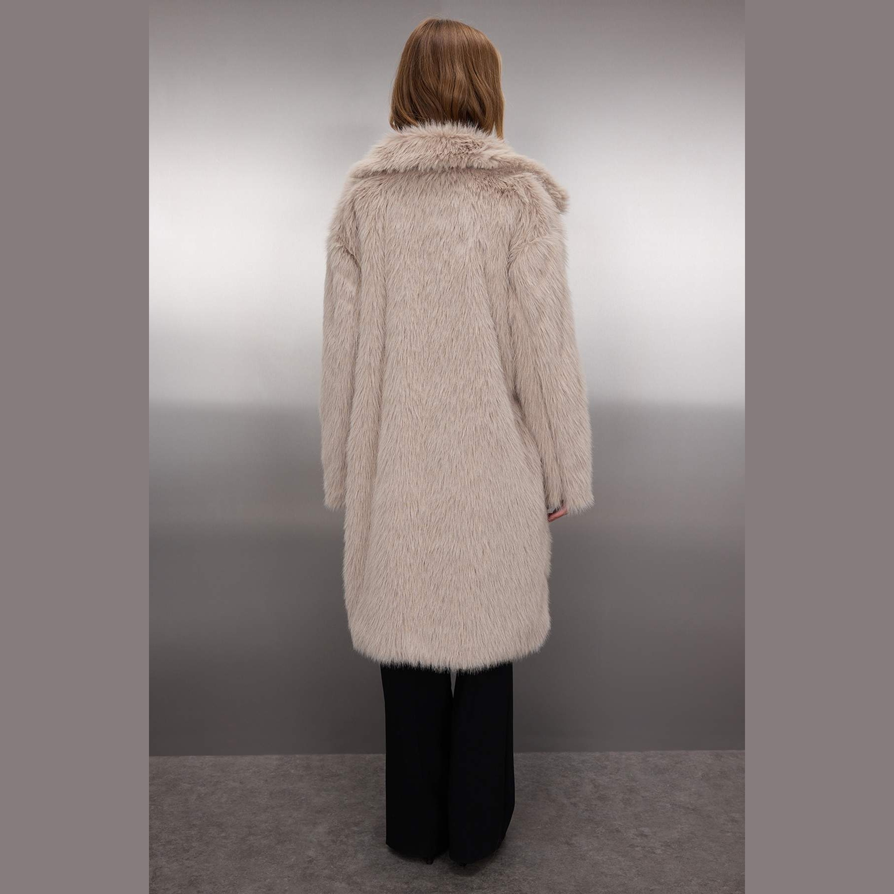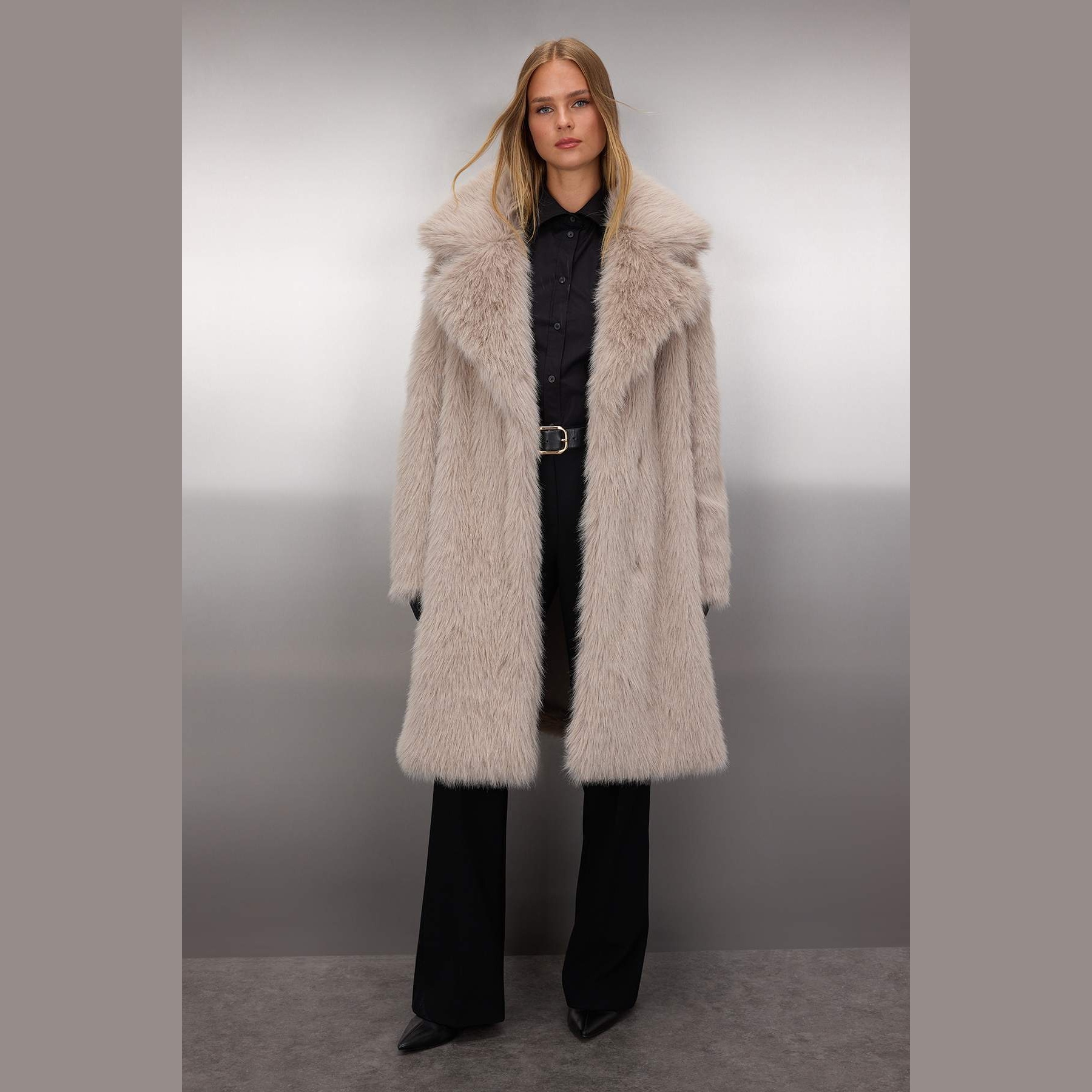 كاب شتوي فاخر بلون فِيزون دافئ من مجموعة Trendyolmilla – لأناقة شتوية ناعمة بلمسة فاخرة، يتميز بقصة Oversize واسعة وطويلة مع ياقة كروڤاز مزدوجة، وأكمام طويلة، وإغلاق أمامي مفرد، مصنوع من خامة فرو صناعي ناعم (Kürk Dokuma) بتركيبة 100% بوليستر، ومبطن بالكامل، ما يجعله مثاليًا لأيام الشتاء الباردة.