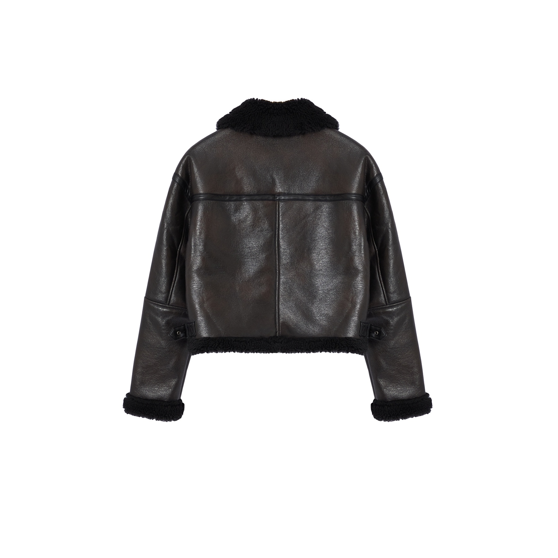 جاكيت نسائي – بني بقصة واسعة وتفاصيل بيلوش (تصميم بستايل Biker عصري)