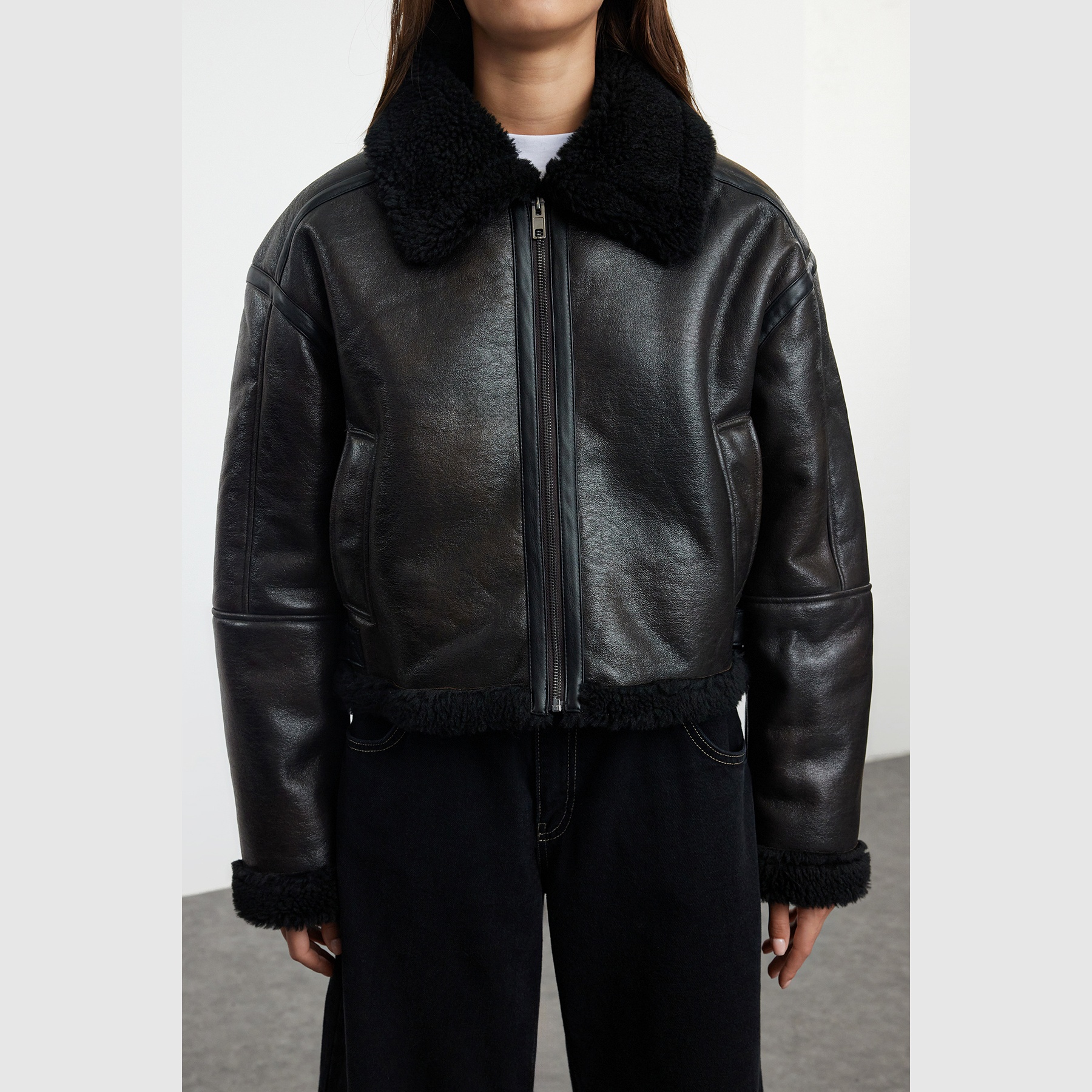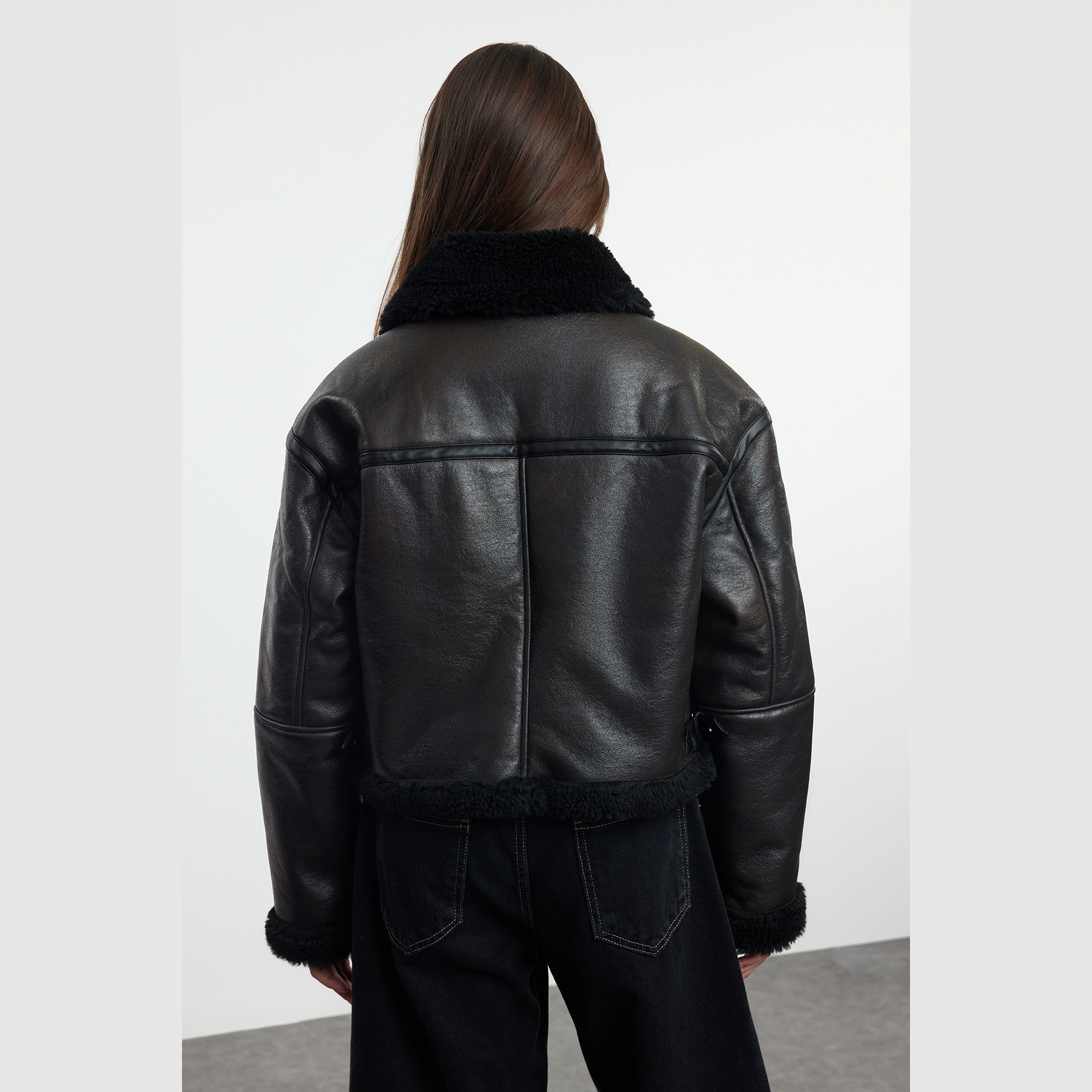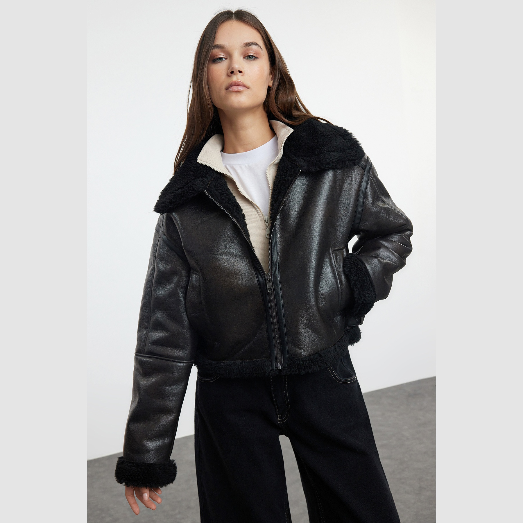 جاكيت شتوي أنيق بلون بني دافئ من مجموعة Trendyolmilla – لأناقة شتوية بستايل شبابي عصري، يتميز بقصة واسعة (Oversize) بطول عملي، مع ياقة قميص كلاسيكية، وأكمام طويلة، وإغلاق أمامي بسحاب، مصنوع من خامة جلد صناعي مبطن بتركيبة 100% بوليستر، ويأتي مزوّدًا بتفاصيل بيلوش ناعم على الياقة والأطراف تضيف دفئًا ولمسة فاخرة، ما يجعله مثاليًا للإطلالات اليومية في الشتاء.