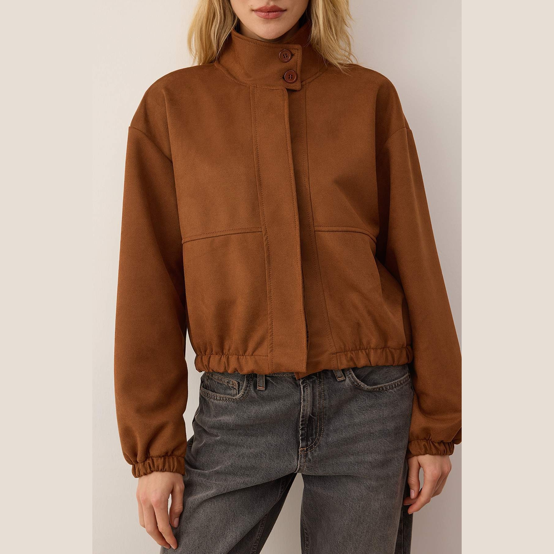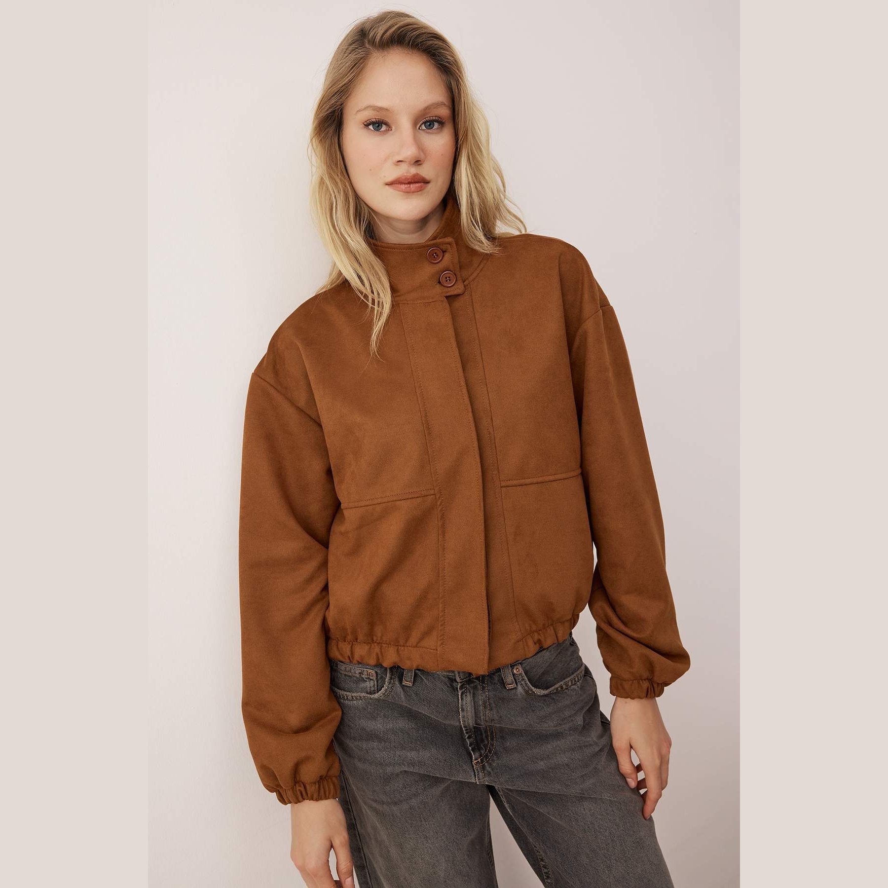 جاكيت نسائي – جملي بقصة منتظمة وياقة مستقيمة من الشمواه (تصميم يومي أنيق)