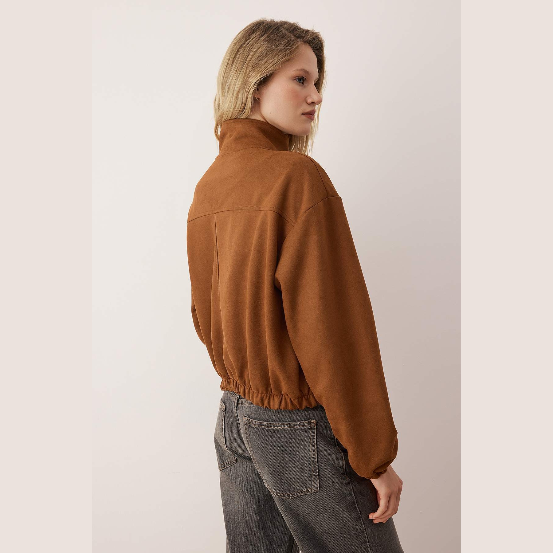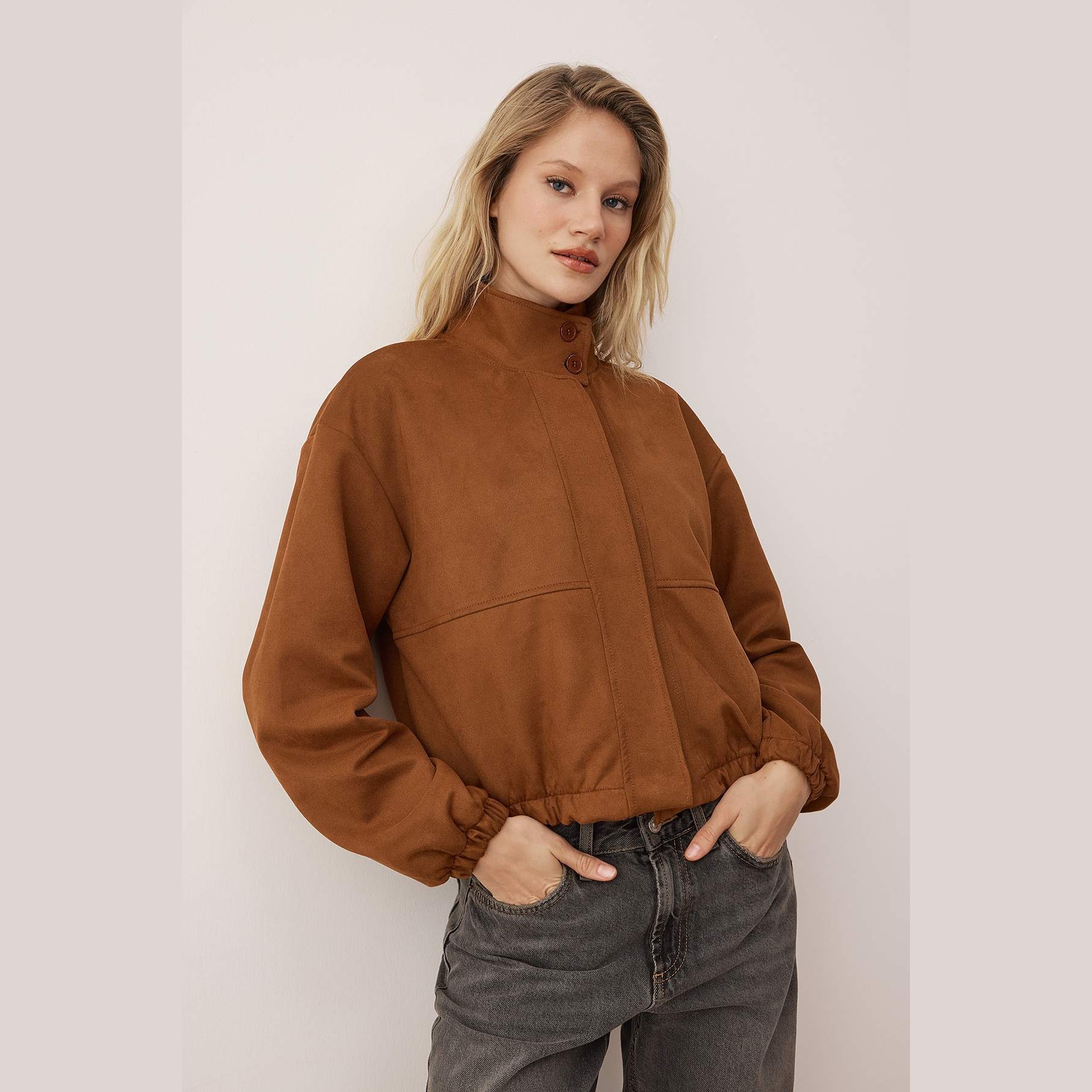 جاكيت شتوي بلون جملي دافئ من مجموعة Trendyolmilla – تصميم عملي بلمسة ناعمة من الشمواه، يتميز بقصة منتظمة (Regular Fit) بطول عملي، مع ياقة مستقيمة، وأكمام طويلة، وإغلاق أمامي بسحاب، مصنوع من خامة شمواه صناعي منسوج بتركيبة 100% بوليستر، ومبطن بالكامل، ما يجعله مثاليًا للأجواء الباردة.