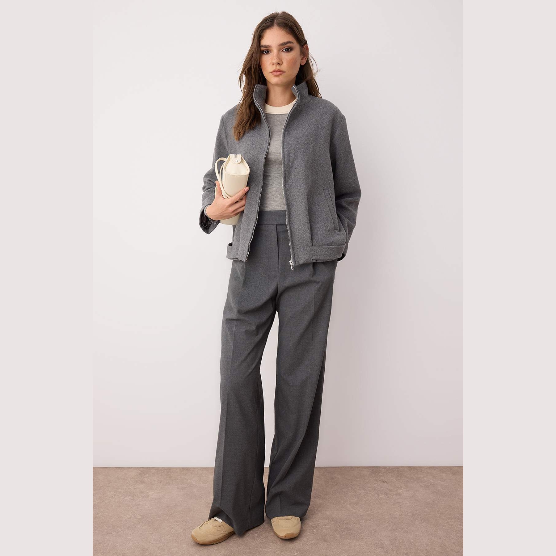 جاكيت شتوي بلون أنْرَاسِيت رمادي غامق من مجموعة Trendyolmilla – تصميم عملي بلمسة كاشمير ناعمة وخفيفة، يتميز بقصة منتظمة (Regular Fit) بطول عملي، مع ياقة قميص كلاسيكية، وأكمام طويلة، وإغلاق أمامي بكبسات، مصنوع من خامة كاشمير منسوج خفيف بتركيبة متعددة تشمل 39% أكريليك، 34% بوليستر، 13% قطن، 8% صوف، 4% فيسكوز، 2% بولياميد، ومبطن بالكامل بنسبة 100% بوليستر، ما يجعله مثاليًا لأيام الشتاء المعتدلة.