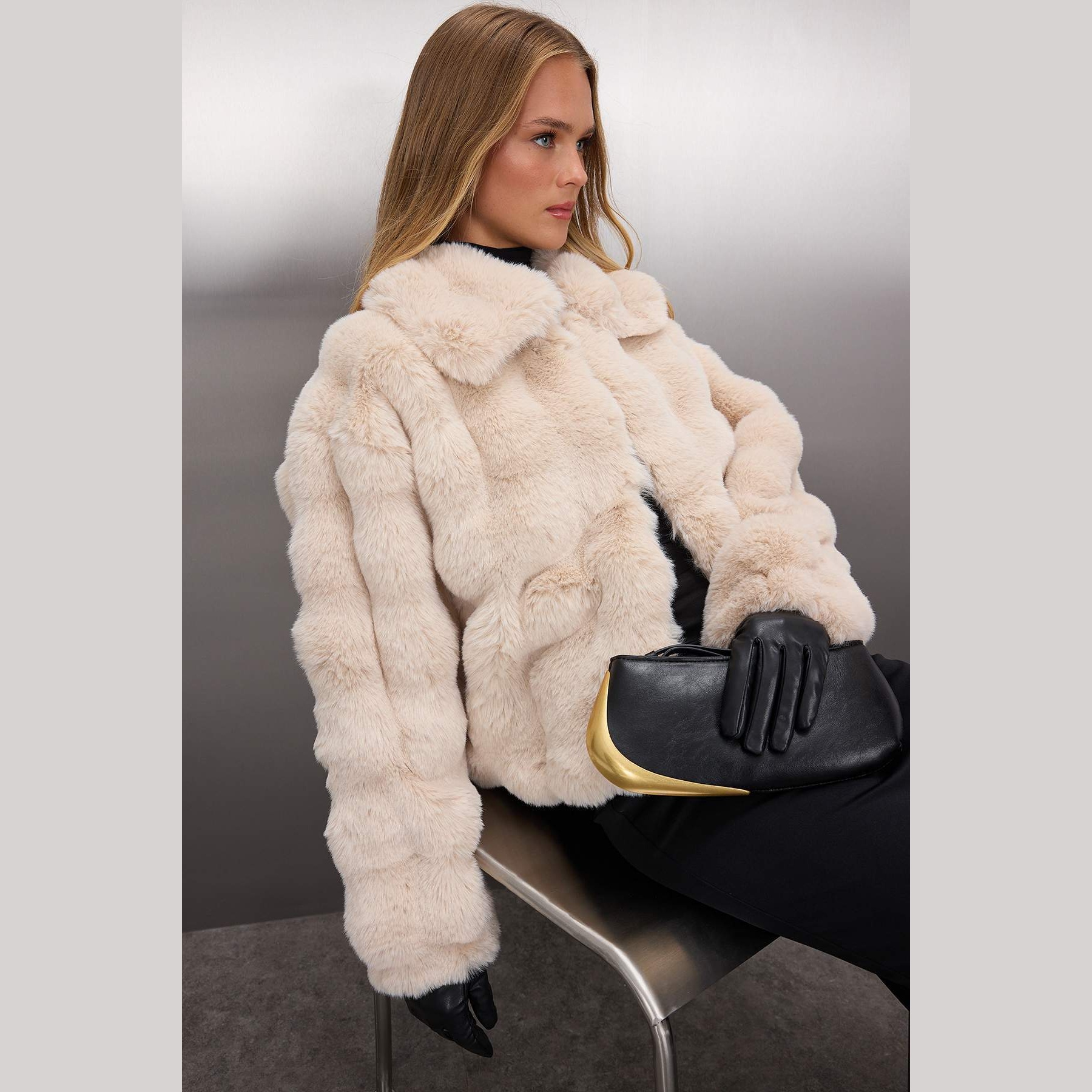 - الخصائص: قصة واسعة، ملمس فرو، تصميم شتوي، إغلاق بكبسات