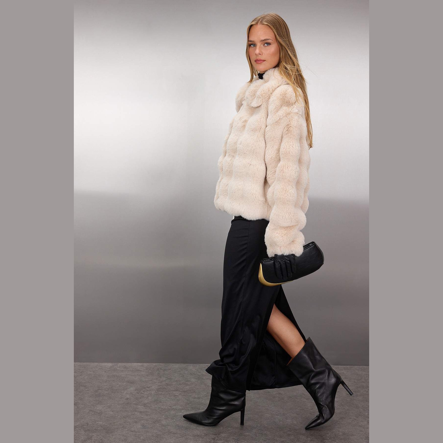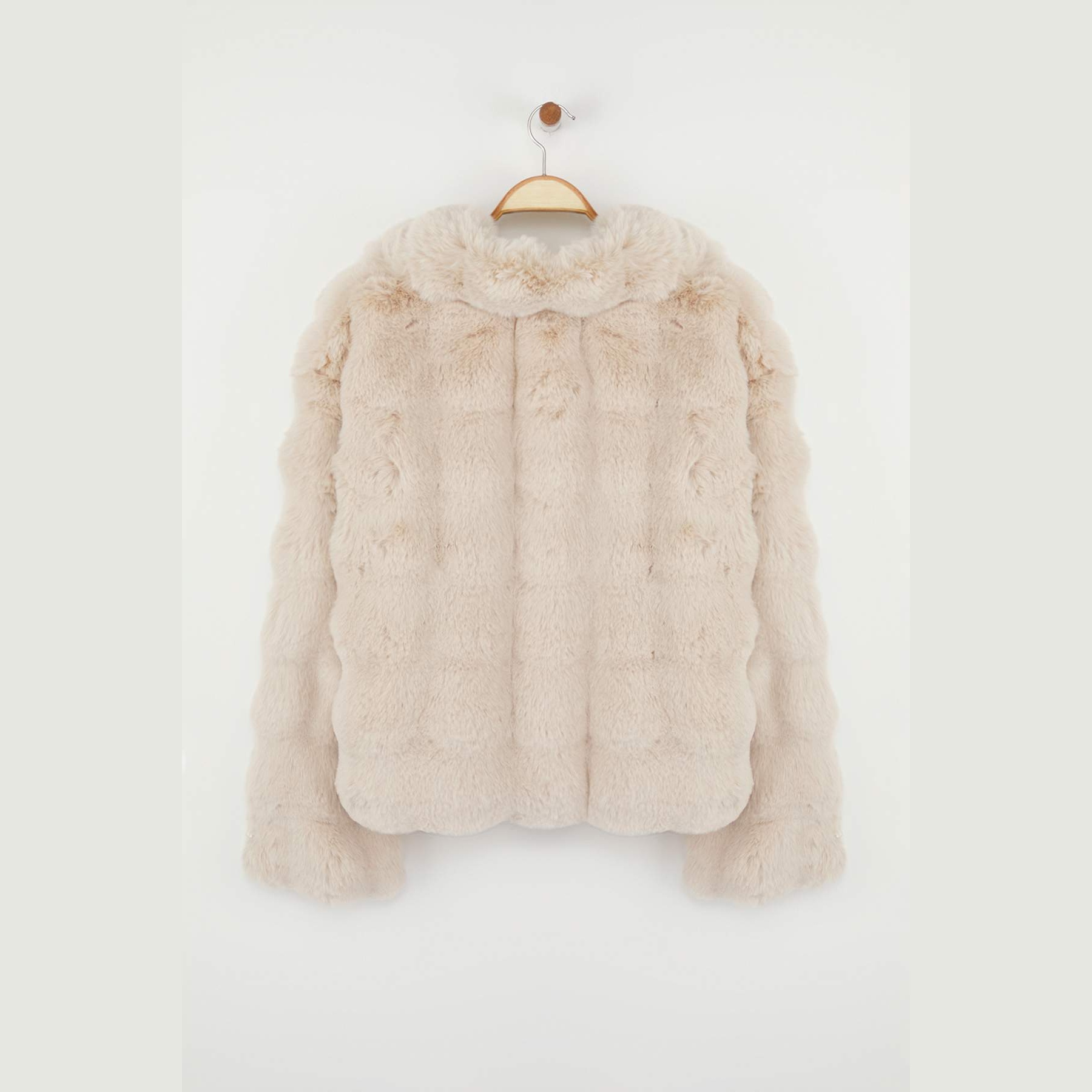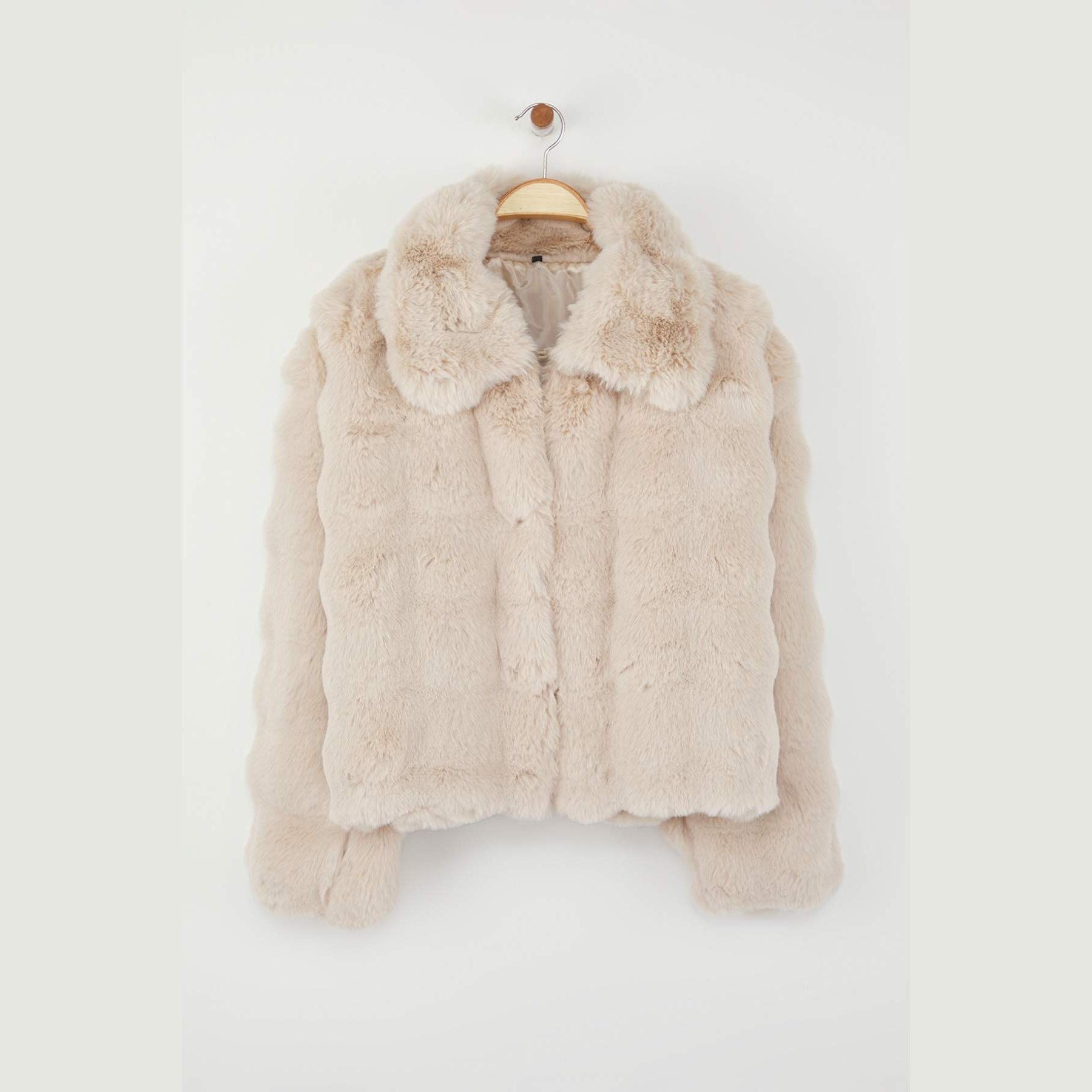 جاكيت شتوي بلون إكرُو ناعم من مجموعة Trendyolmilla – تصميم يجمع بين الراحة والدفء بلمسة فاخرة، يتميز بقصة واسعة (Oversize) بطول عملي، مع ياقة قميص كلاسيكية، وأكمام طويلة، وإغلاق أمامي بكبسات، مصنوع من خامة فرو صناعي ناعم بتركيبة 100% بوليستر، ومبطن بالكامل، ما يجعله مثاليًا لأيام الشتاء الباردة.