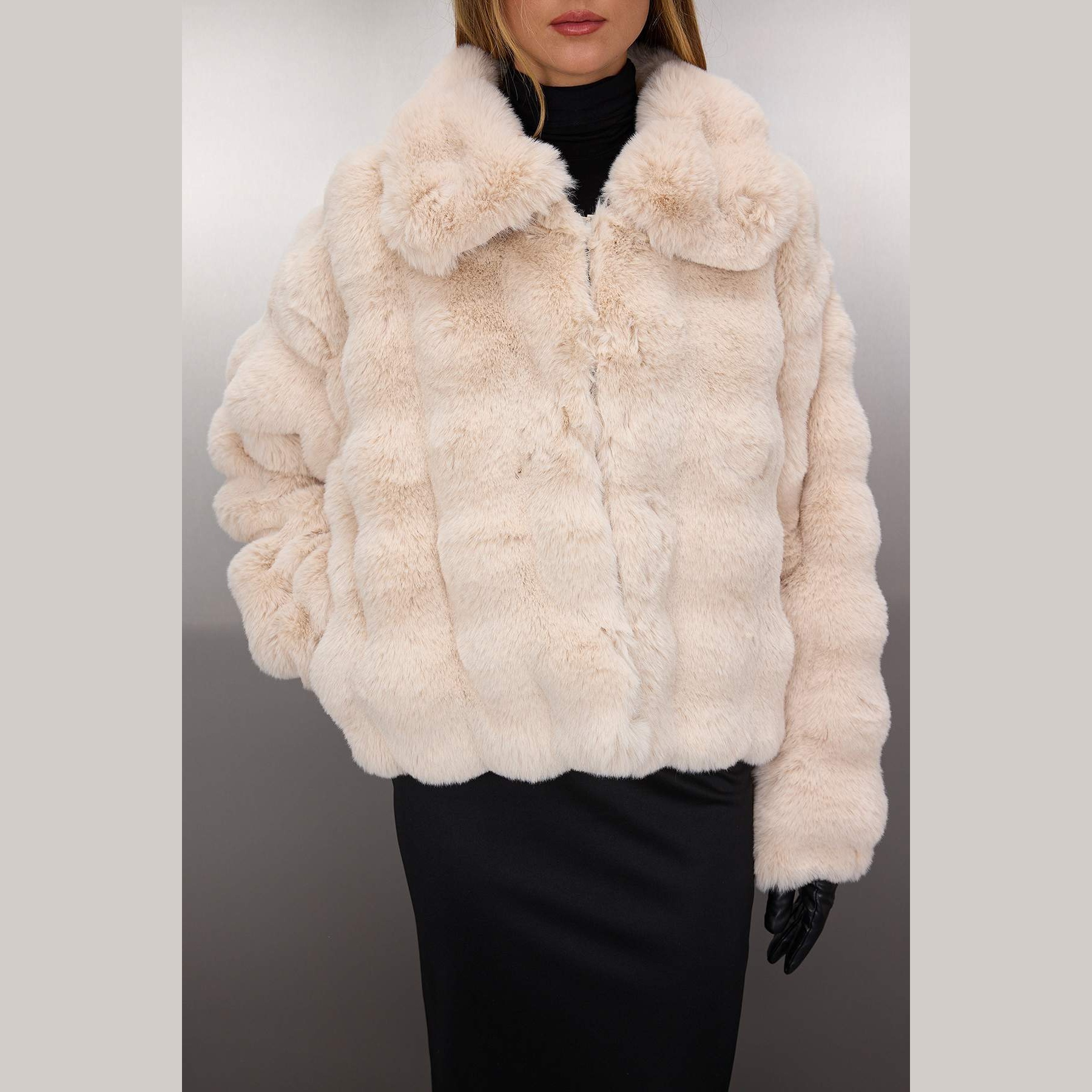 جاكيت نسائي – إكرُو بقصة واسعة وخامة فرو صناعي (تصميم يومي دافئ وأنيق)