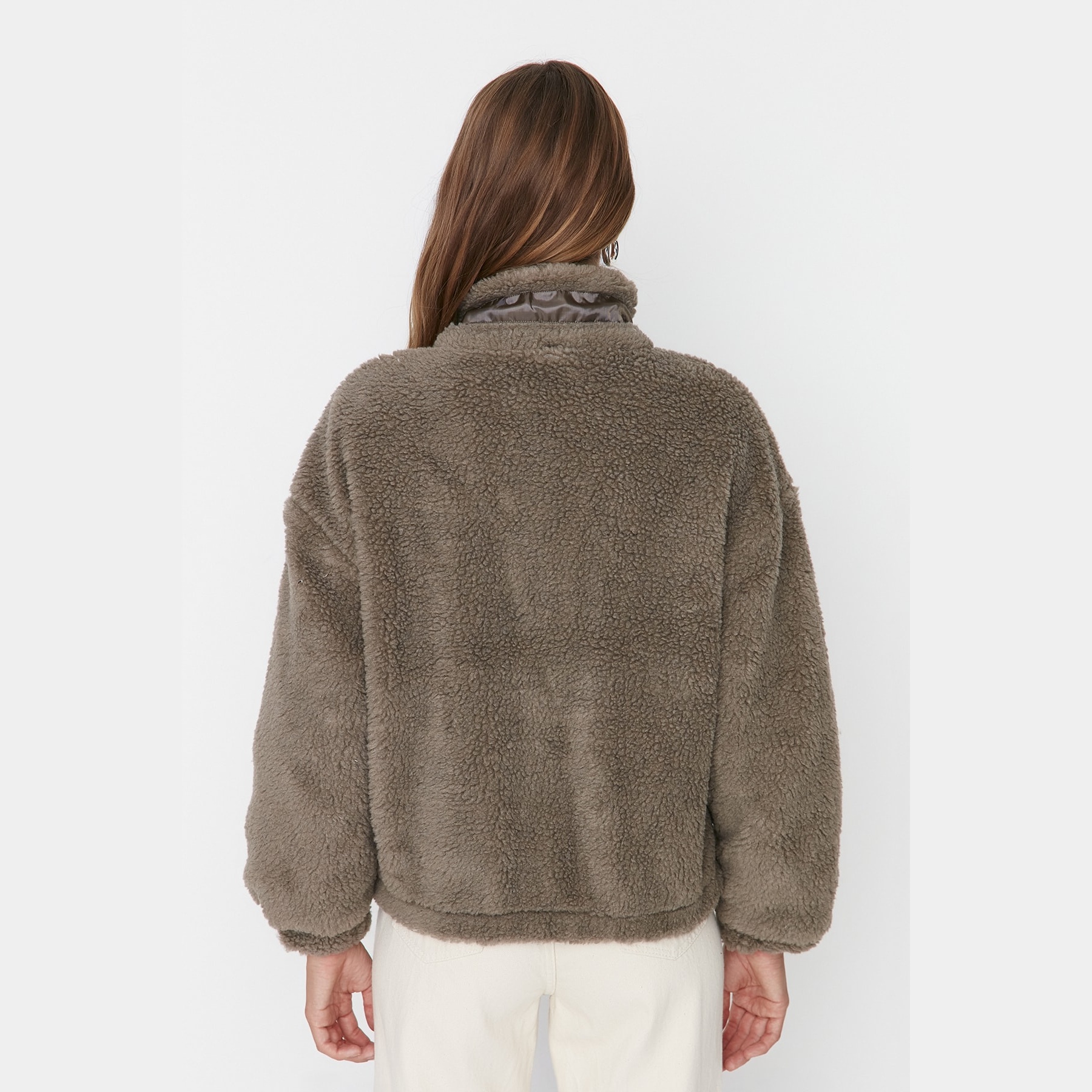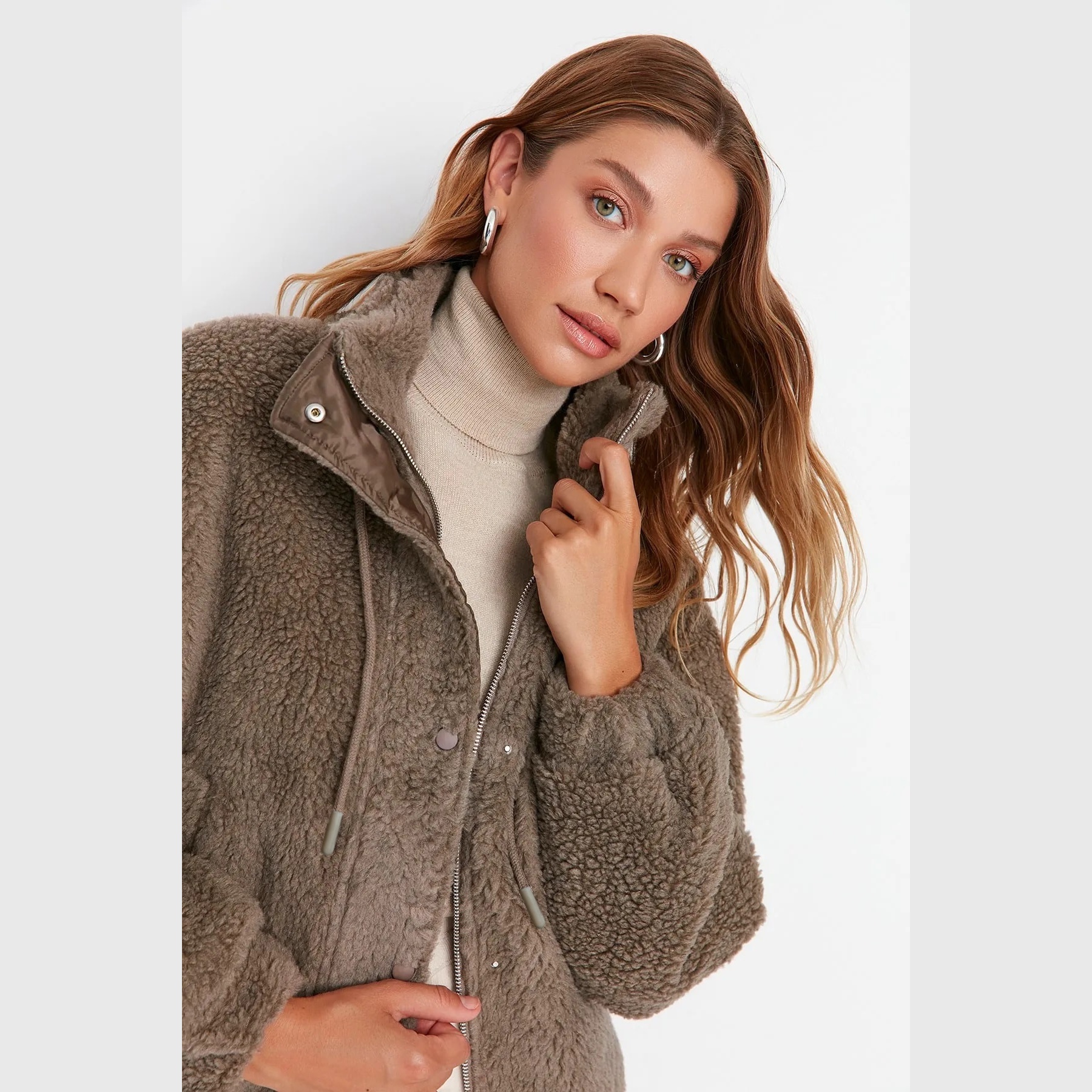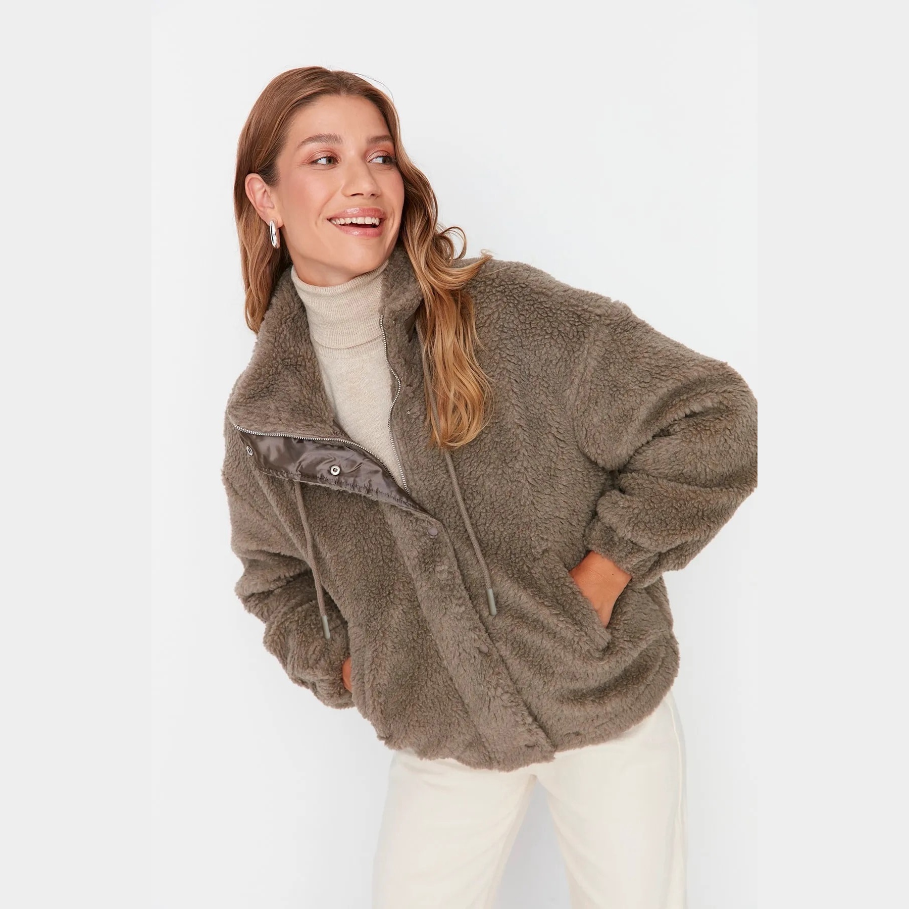جاكيت شتوي بلون فِيزُون (بيج رملي) من مجموعة Trendyolmilla – تصميم عملي يجمع بين الراحة والدفء بلمسة ناعمة، يتميز بقصة واسعة (Oversize) بطول منتظم، مع ياقة مستقيمة، وأكمام طويلة، وإغلاق أمامي بسحاب، مصنوع من خامة بيلوش صناعي ناعم بتركيبة 72% بوليستر، 28% أكريليك، ومبطن بالكامل بنسبة 100% بوليستر، ما يجعله مثاليًا للأجواء الباردة.