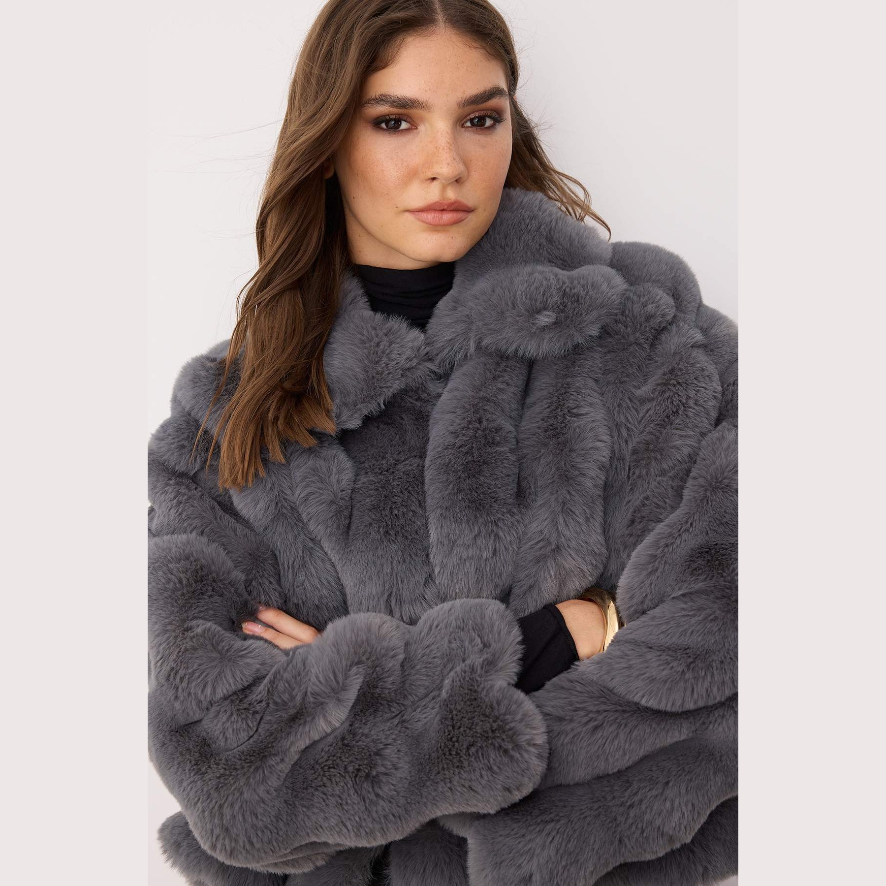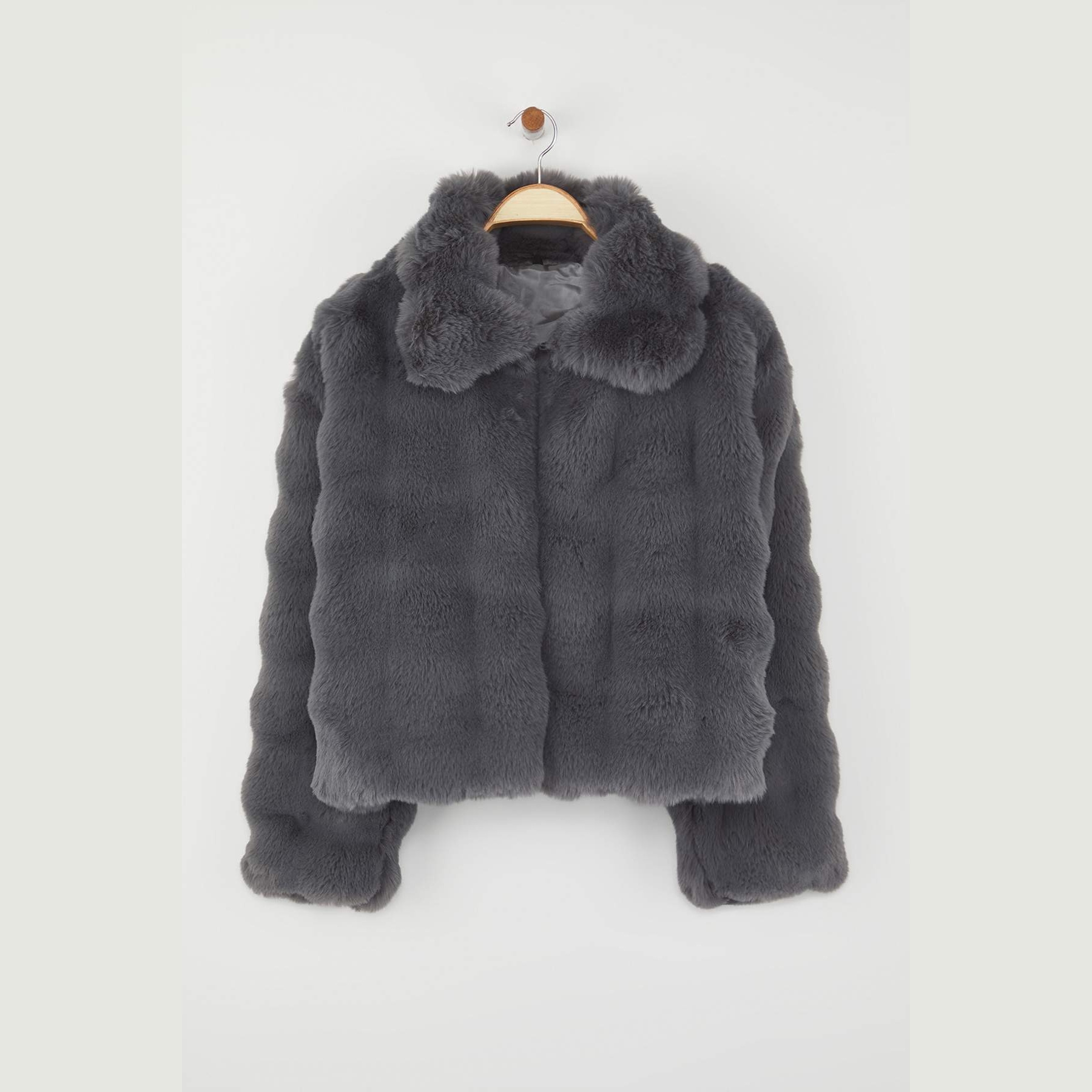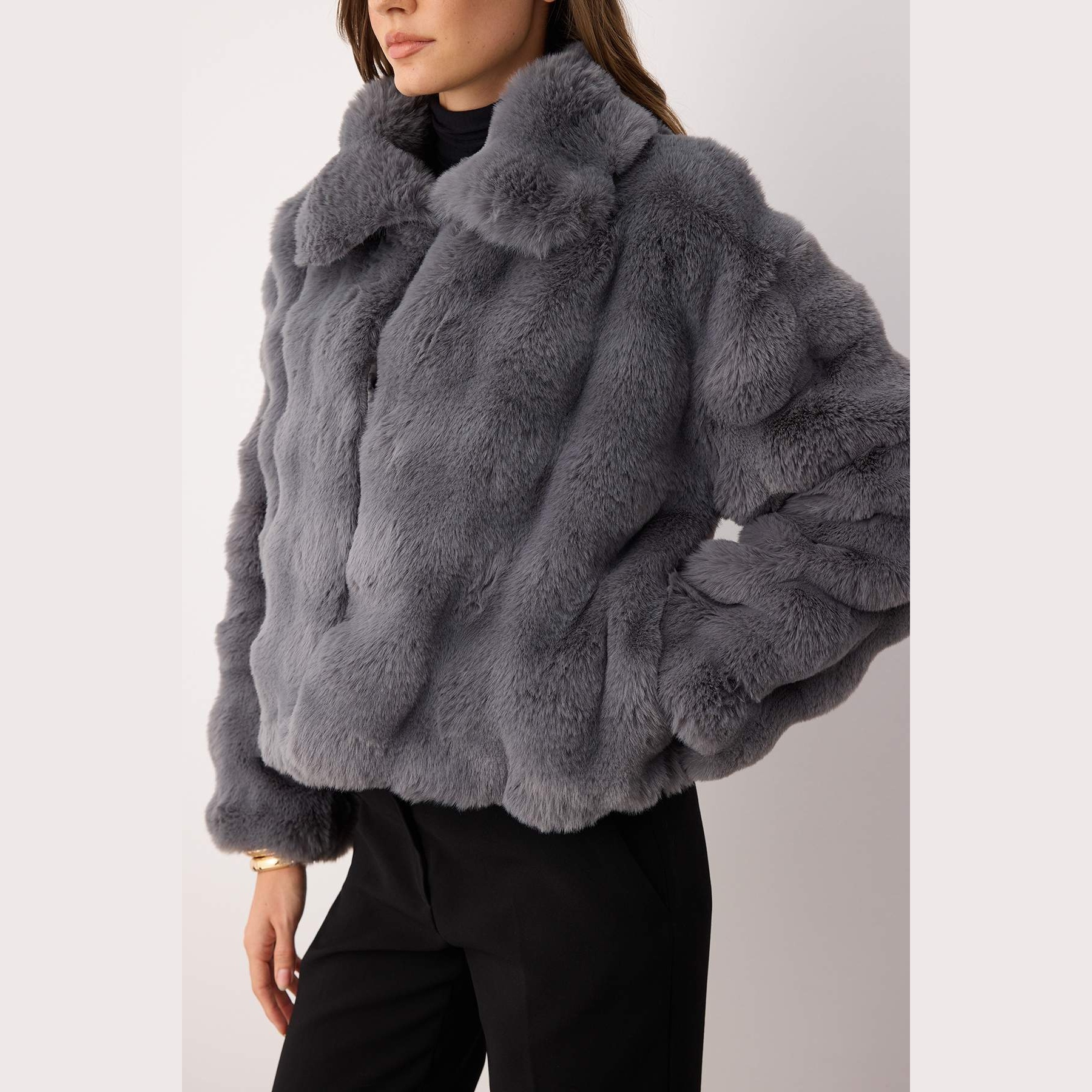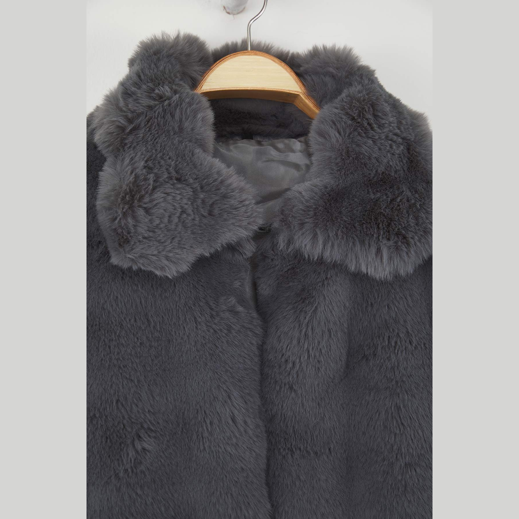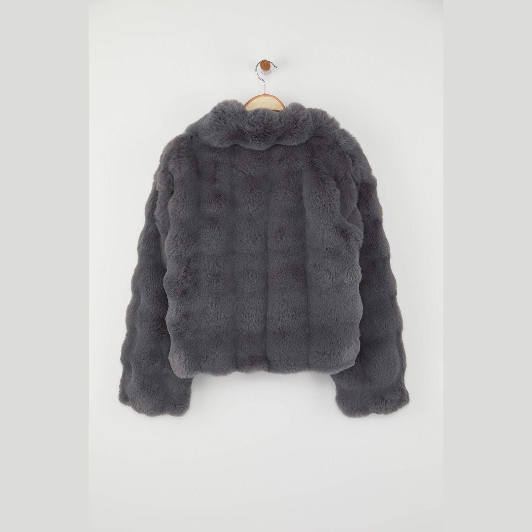 جاكيت شتوي بلون رمادي هادئ من مجموعة Trendyolmilla – تصميم Oversize بملمس فرو ناعم يوفر دفئًا وأناقة، يتميز بقصة واسعة (Oversize Fit) بطول عملي، مع ياقة قميص كلاسيكية، وأكمام طويلة، وإغلاق أمامي بكبسات، مصنوع من خامة فرو صناعي منسوج بتركيبة 100% بوليستر، ومبطن بالكامل، ما يجعله مثاليًا لفصل الشتاء.