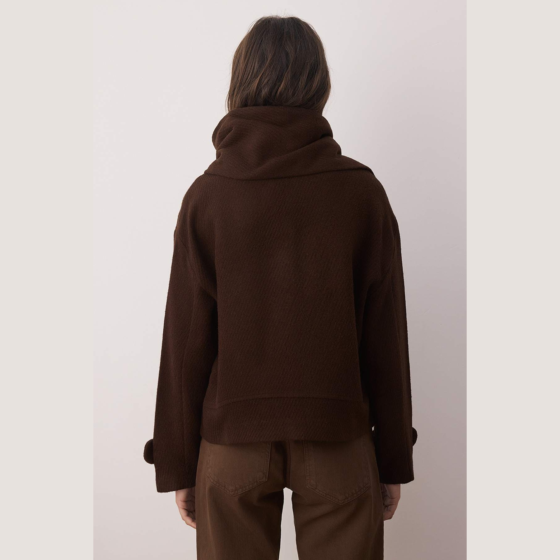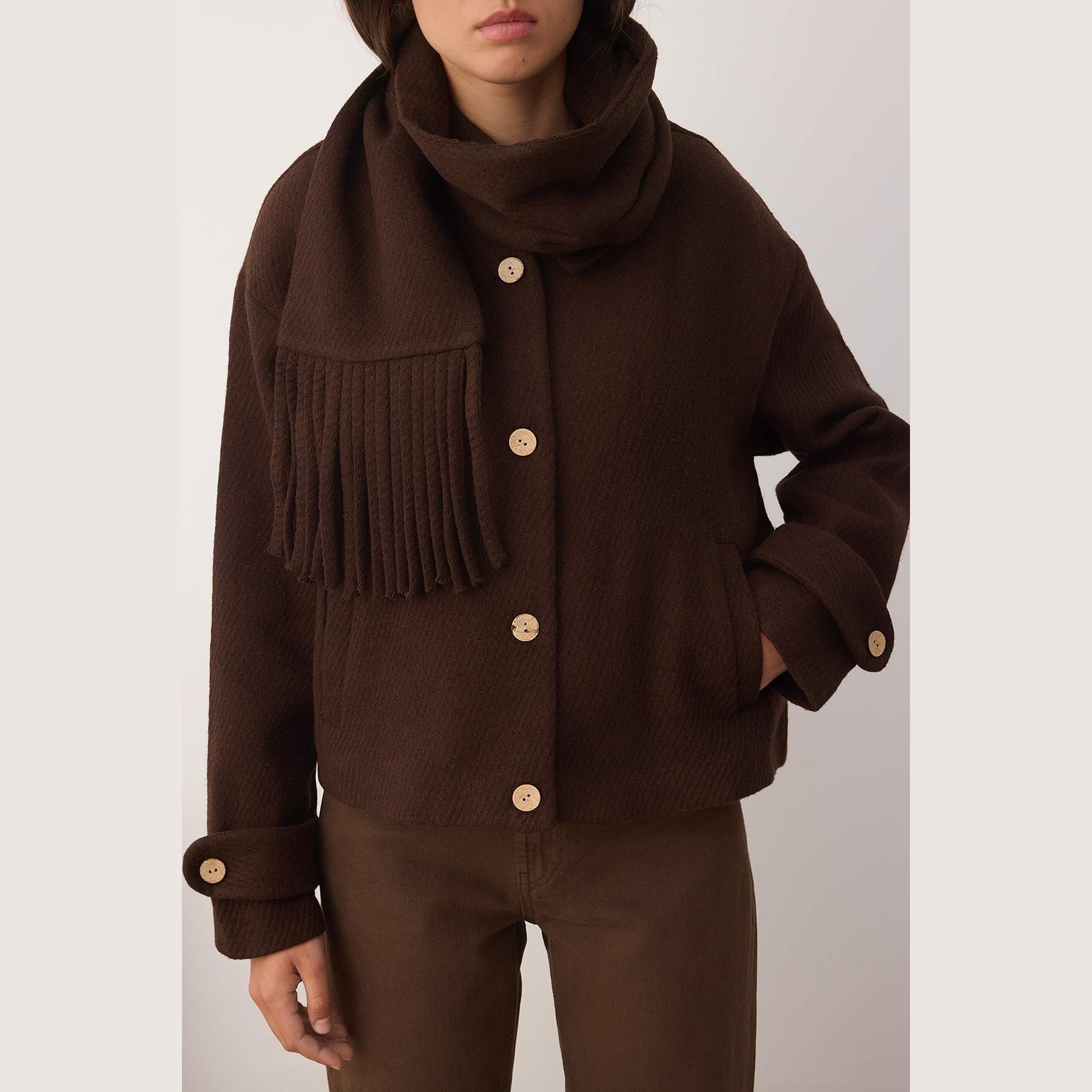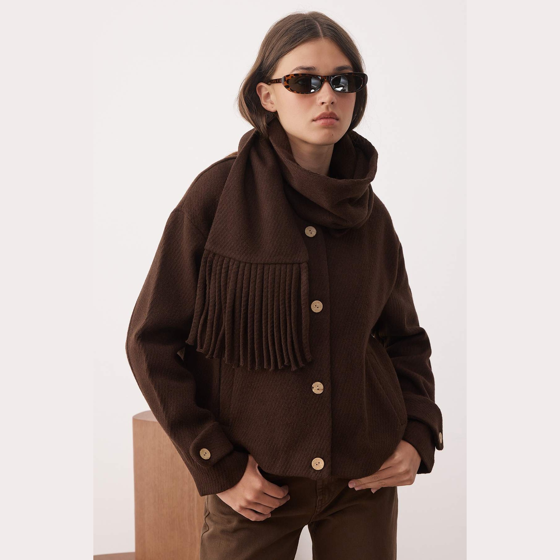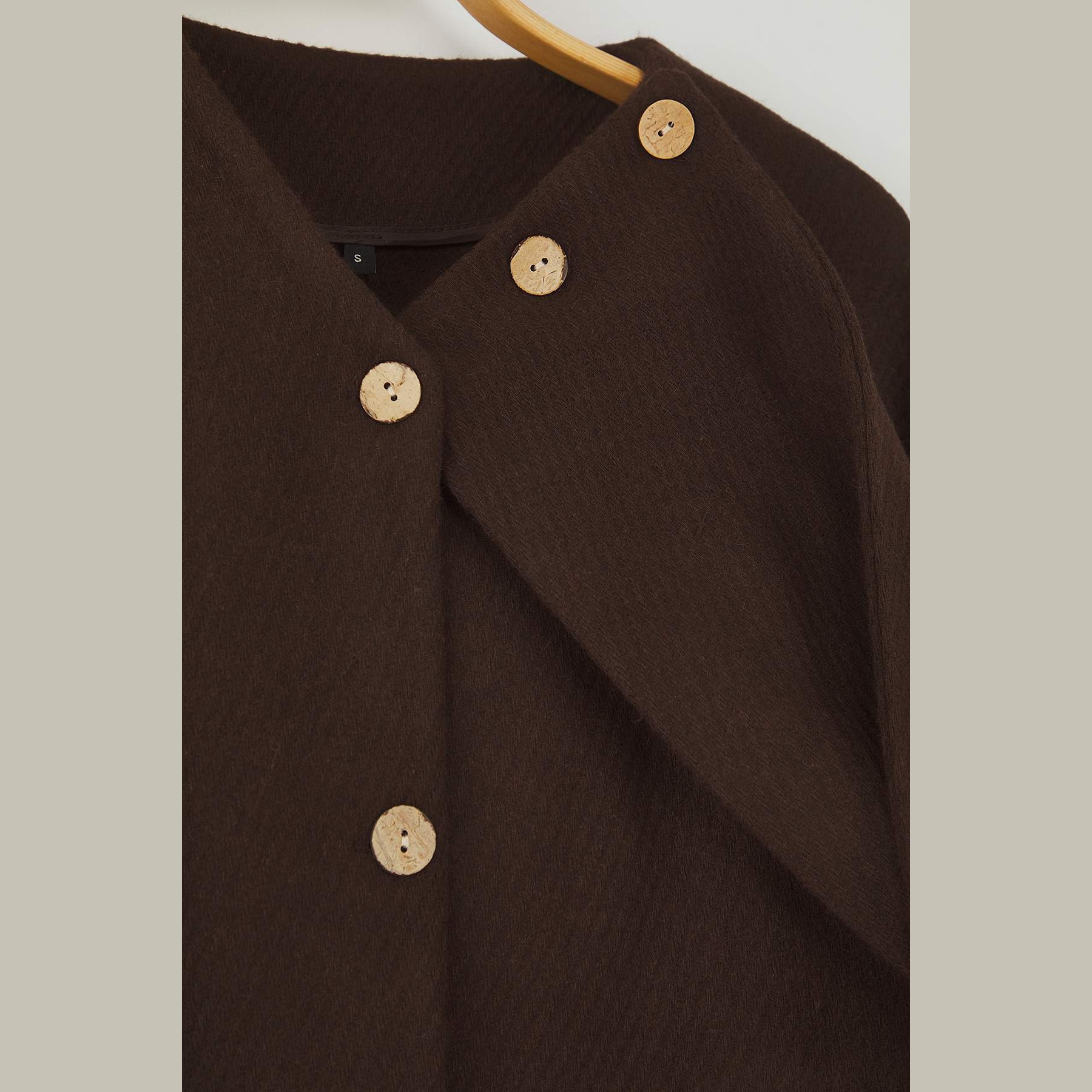 جاكيت نسائي – بني بقصة واسعة وتفصيل شال قابل للإزالة من خامة كاشمير خفيفة (تصميم يومي بلمسة متعددة الاستخدام)