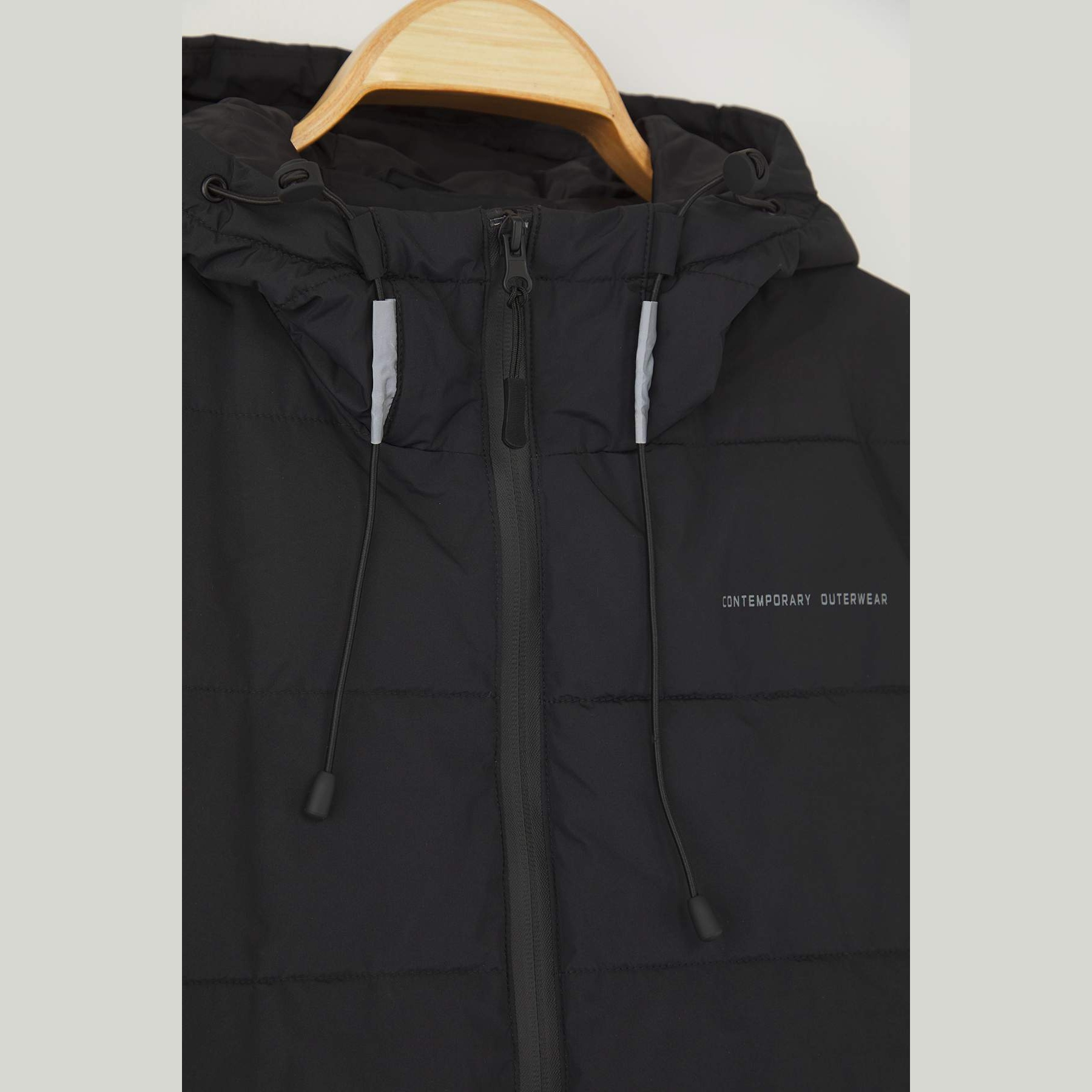 جاكيت شتوي بلون أسود كلاسيكي من مجموعة Trendyolmilla – تصميم عملي يجمع بين الراحة والحماية في الشتاء، يتميز بقصة منتظمة (Regular Fit) بطول متوسط، مع قبعة مدمجة، وأكمام طويلة، وإغلاق أمامي بسحاب، مصنوع من خامة منسوجة مقاومة للماء بتركيبة خارجية وداخلية من 100% بوليستر، ومبطن بالكامل بألياف خفيفة، ما يجعله مثاليًا للأيام الممطرة والباردة.