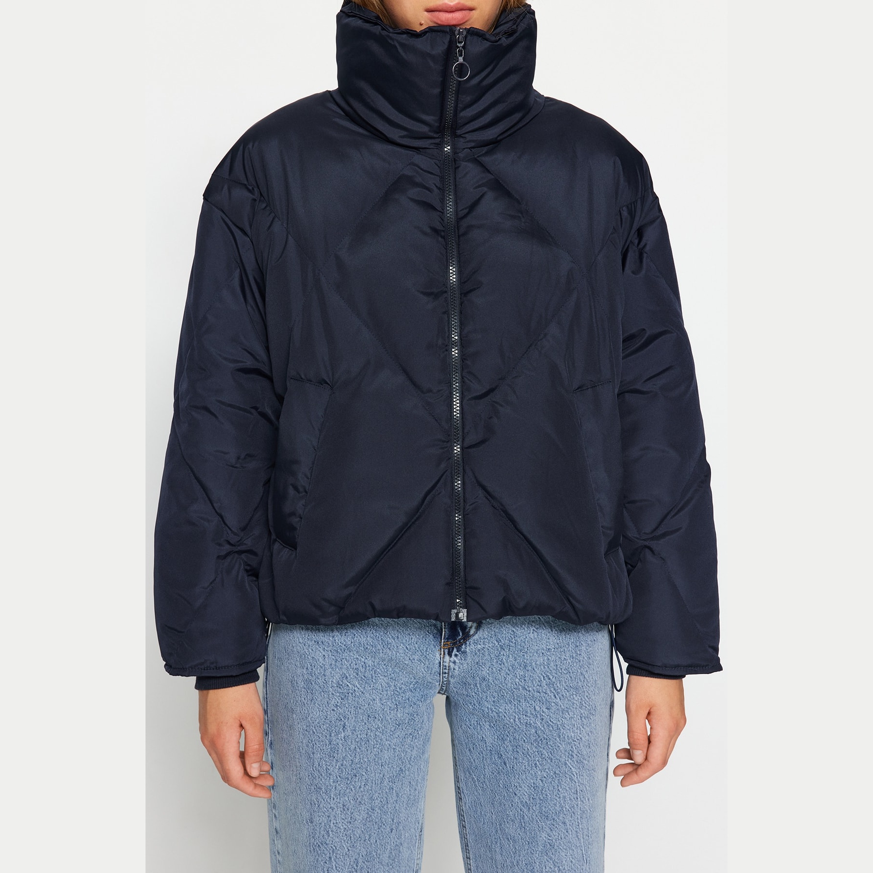 جاكيت نسائي – كحلي بقصة واسعة من خامة مبطنة مقاومة للماء بنمط كابيتوني (تصميم دافئ بلمسة كلاسيكية)