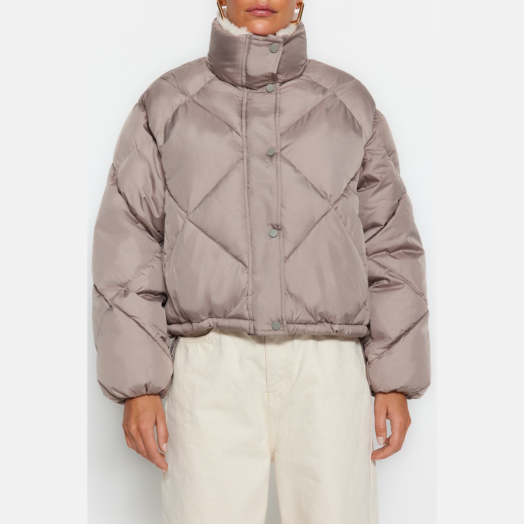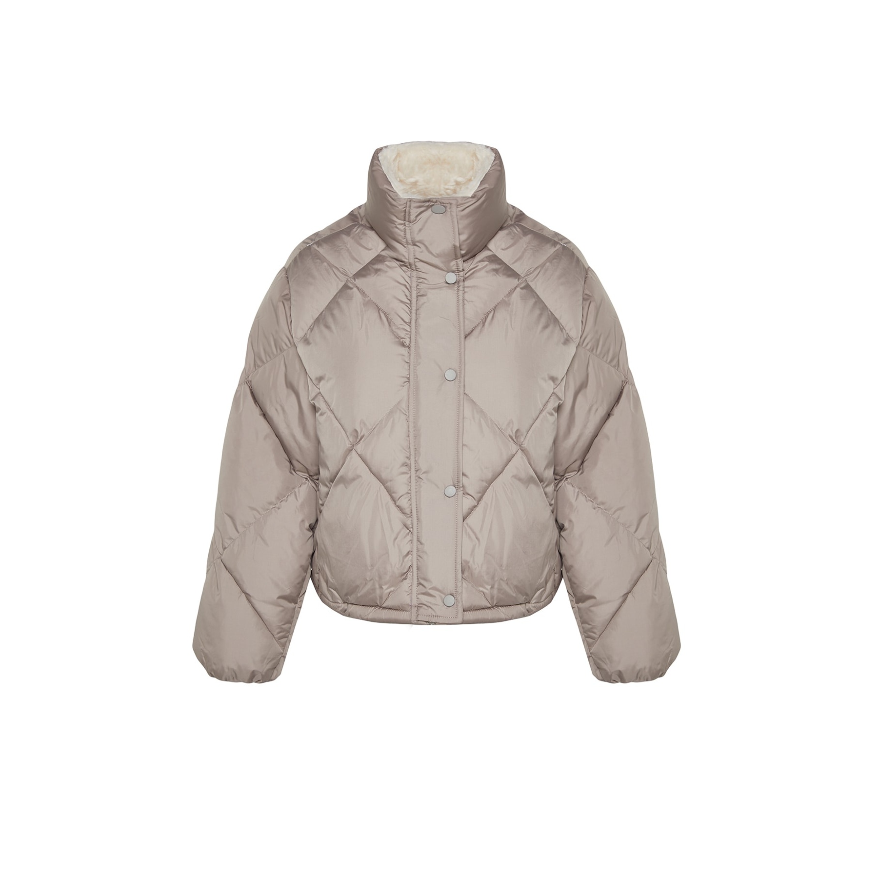 جاكيت نسائي – فيزون بقصة واسعة مع ياقة بيلوش وخامة مبطنة مقاومة للماء (تصميم دافئ بلمسة فاخرة)
