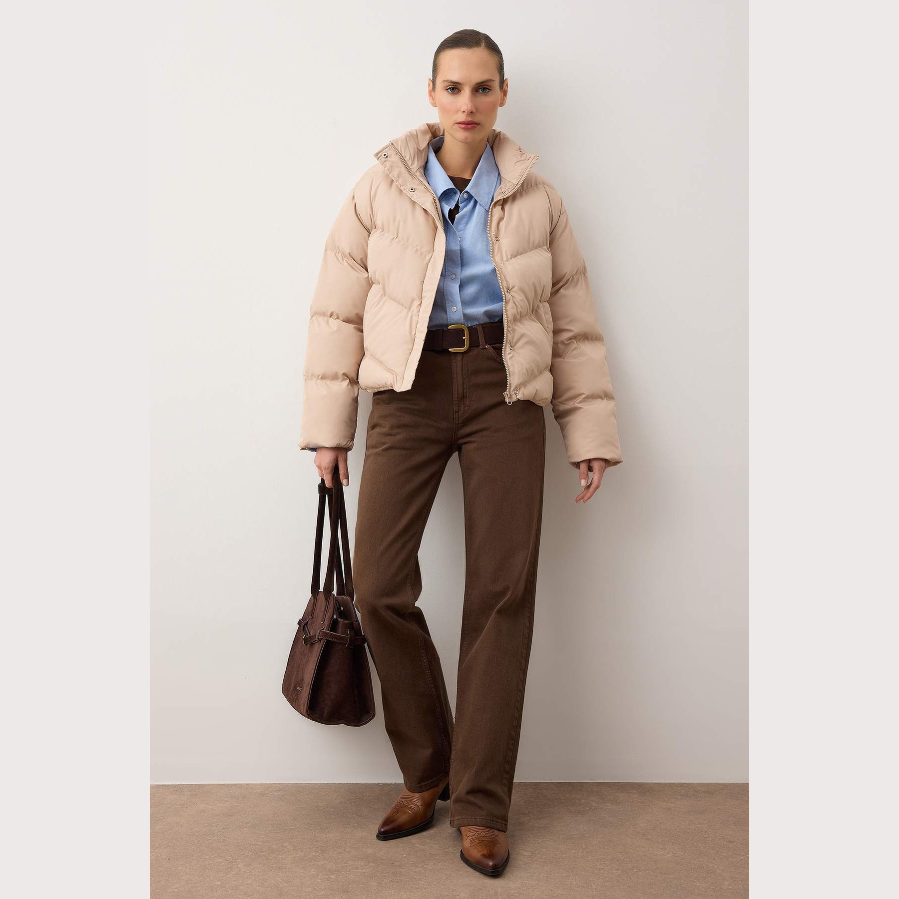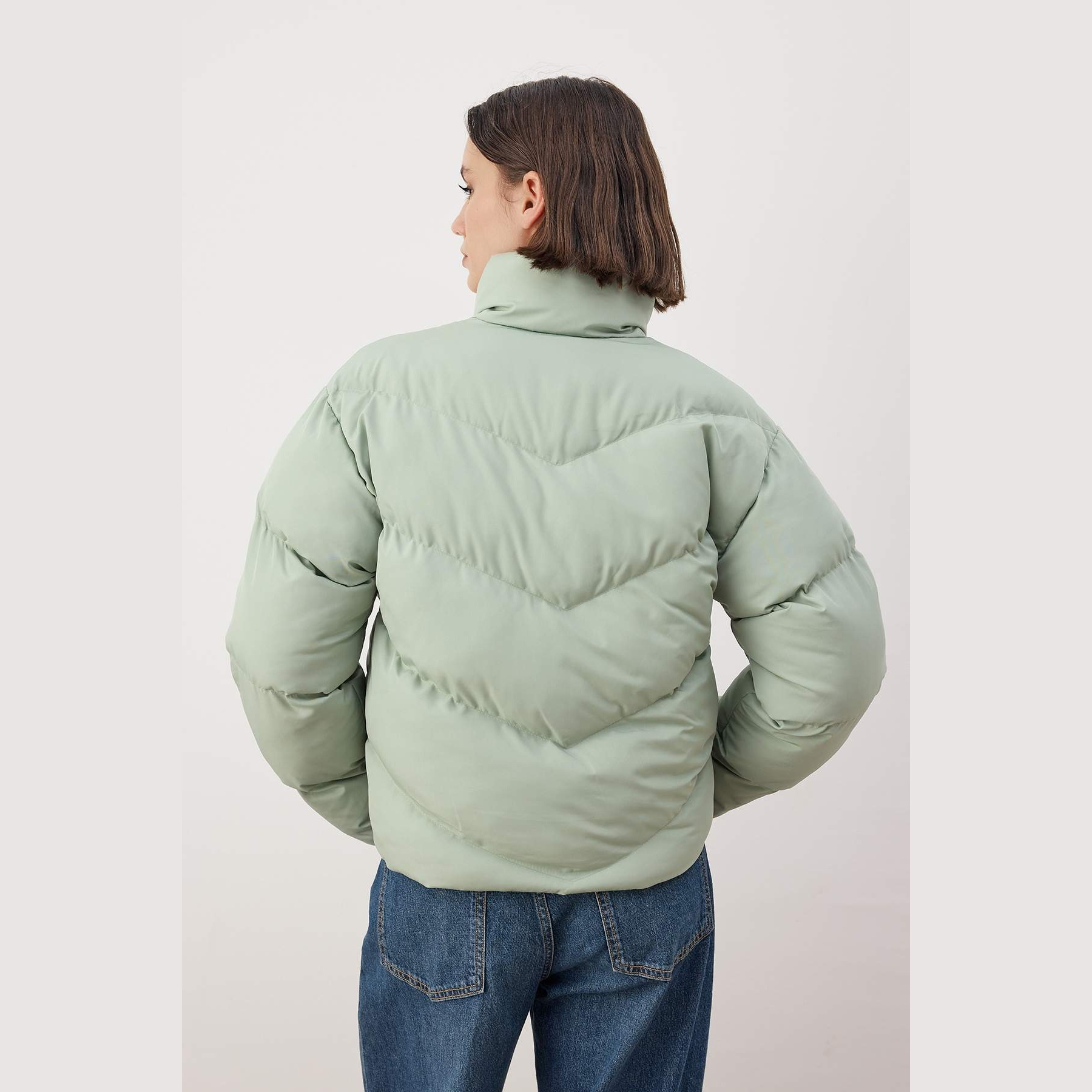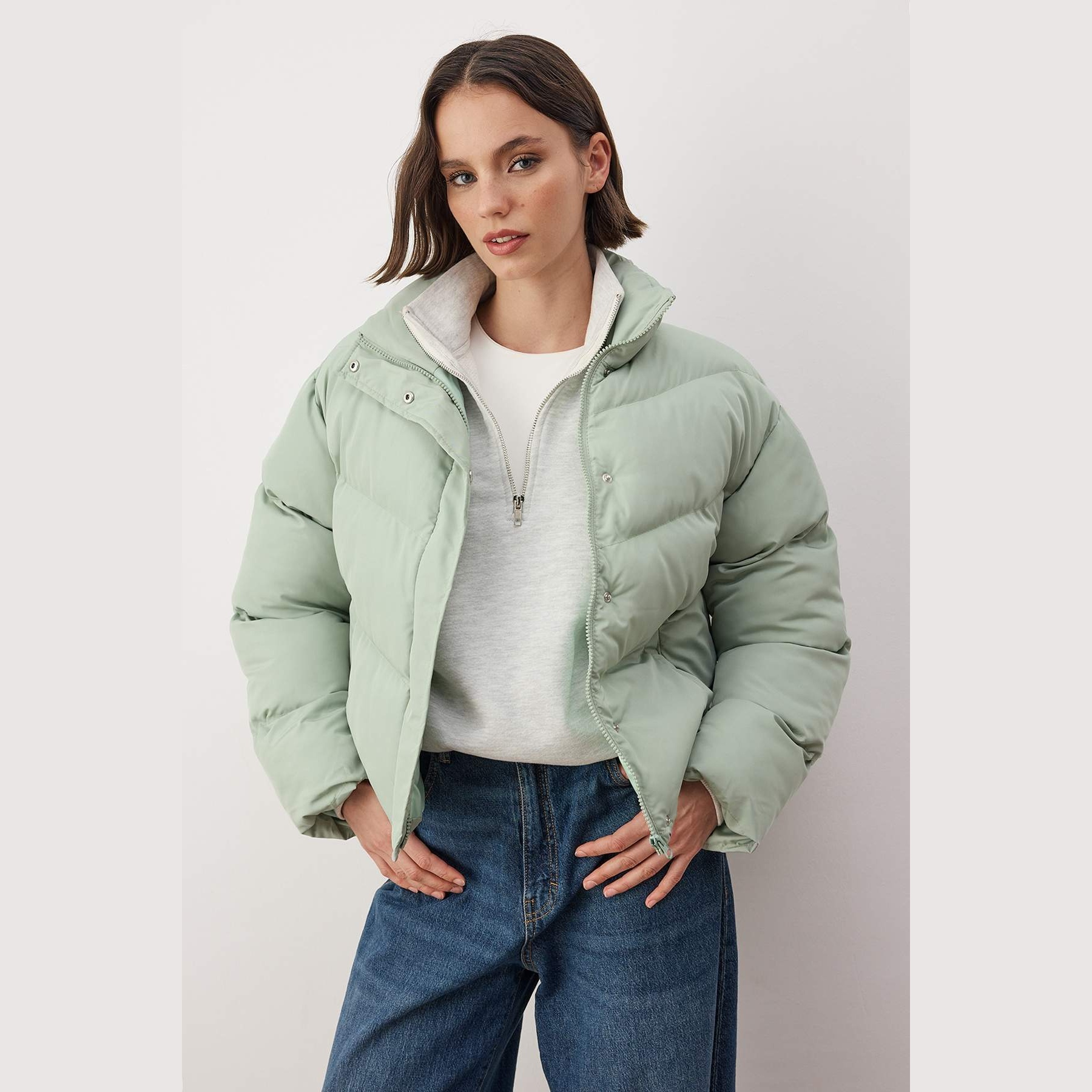 جاكيت شتوي بلون منت هادئ من مجموعة Trendyolmilla – تصميم عملي يجمع بين الراحة والحماية بلمسة أنثوية ناعمة، يتميز بقصة منتظمة (Regular Fit) بطول متوسط، مع ياقة مستقيمة (Dik Yaka)، وأكمام طويلة، وإغلاق أمامي مزدوج بـسحاب وكبسات، مصنوع من خامة منسوجة مقاومة للماء بتركيبة خارجية وداخلية من 100% بوليستر، ومبطن بالكامل بألياف خفيفة، ما يجعله مثاليًا لأيام الشتاء الباردة والممطرة.