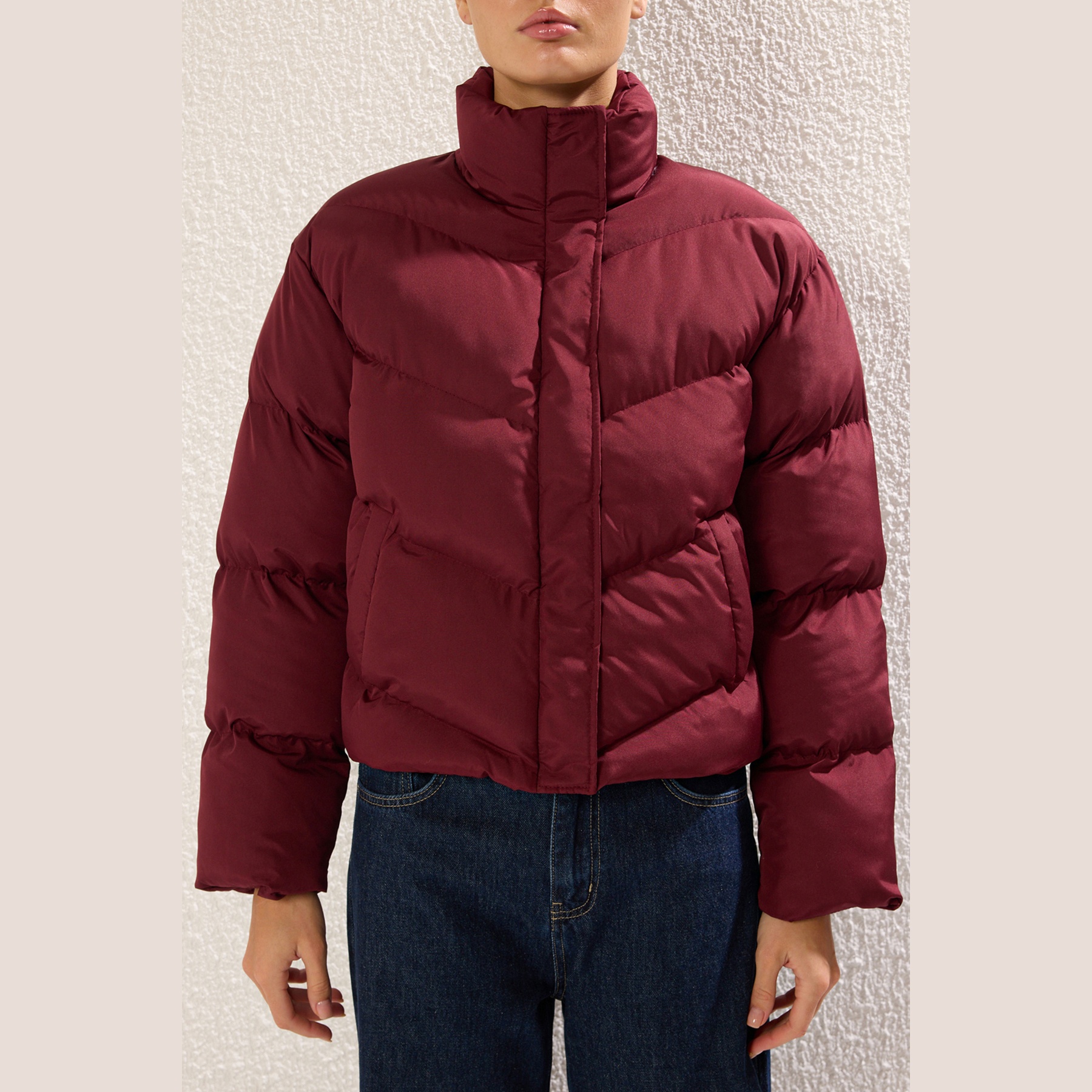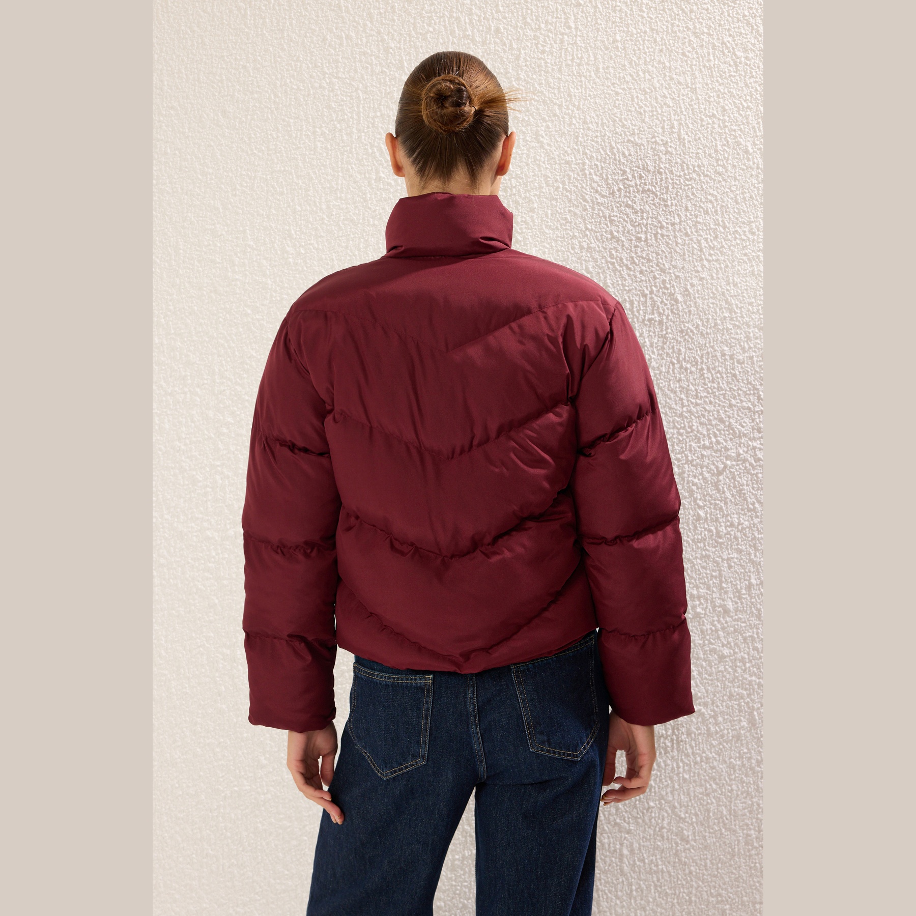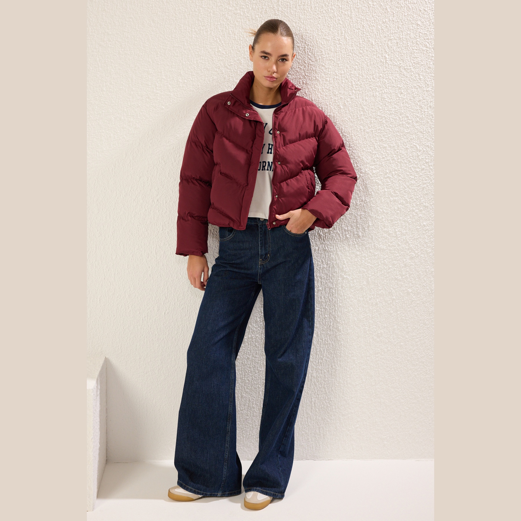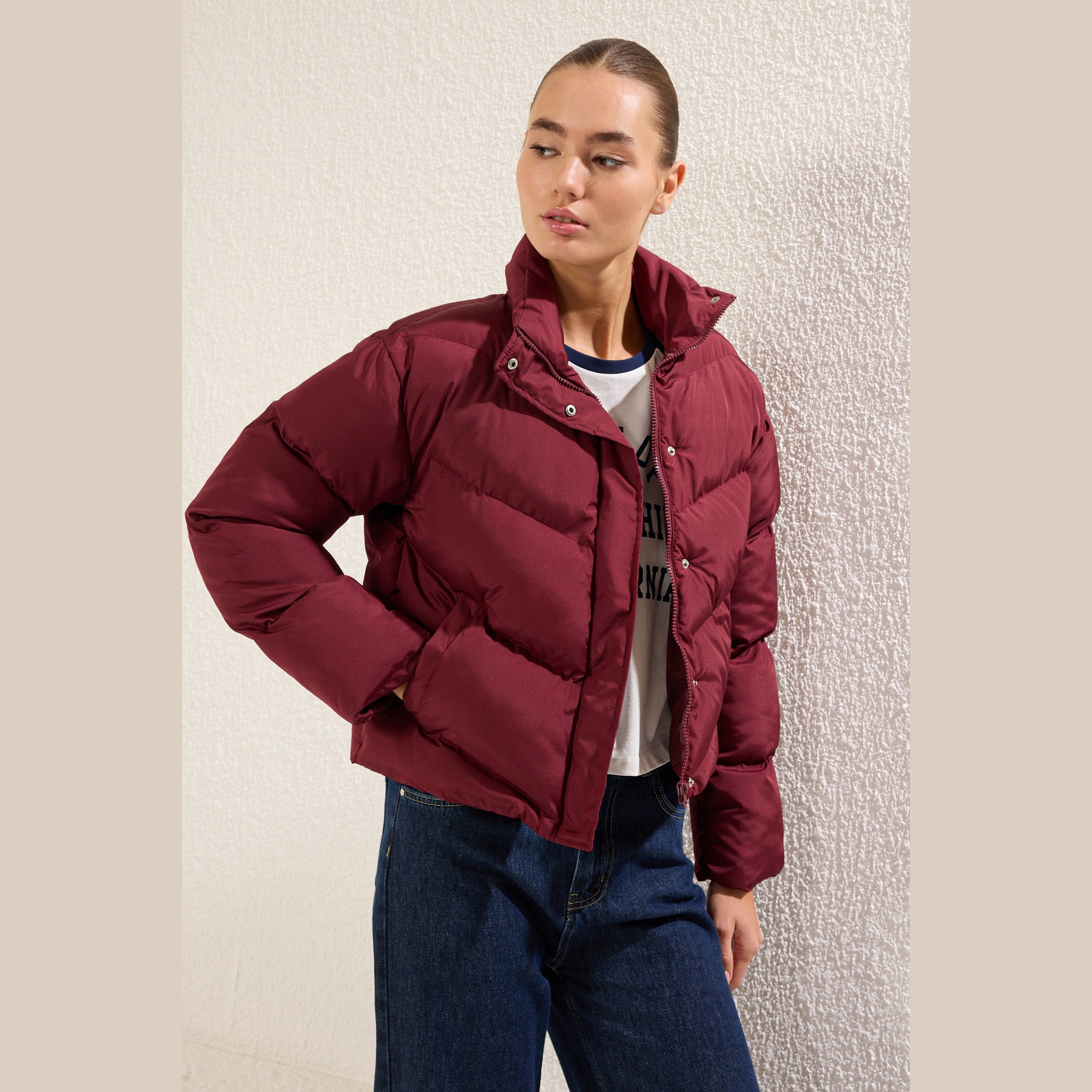 جاكيت شتوي بلون بوردو فاخر من مجموعة Trendyolmilla – تصميم عملي يجمع بين الراحة والحماية بلمسة أنثوية ناعمة، يتميز بقصة منتظمة (Regular Fit) بطول متوسط، مع ياقة مستقيمة (Dik Yaka)، وأكمام طويلة، وإغلاق أمامي مزدوج بـسحاب وكبسات، مصنوع من خامة منسوجة مقاومة للماء بتركيبة خارجية وداخلية من 100% بوليستر، ومبطن بالكامل بألياف خفيفة، ما يجعله مثاليًا لأيام الشتاء الباردة والممطرة.