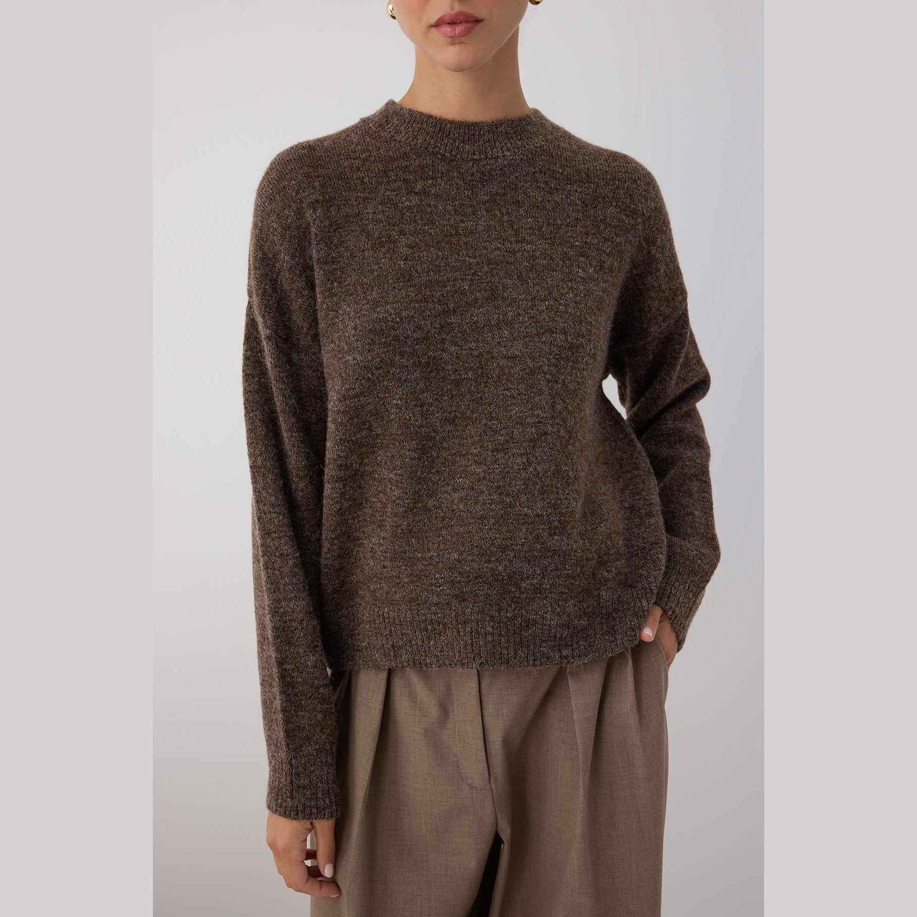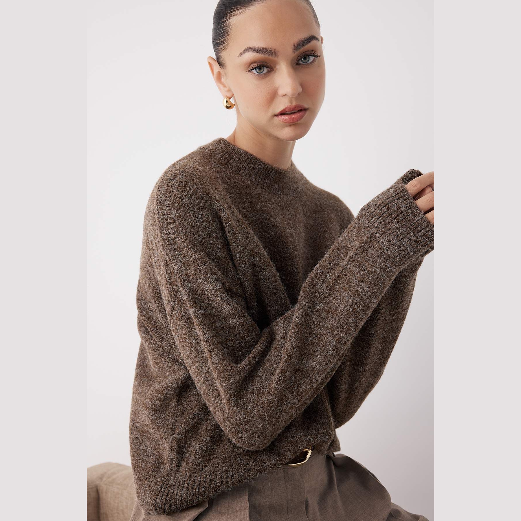 كنزة نسائية – فيزون من خيوط فاخرة ممزوجة بالألباكا والصوف بقصة واسعة (دفء وأناقة بلمسة طبيعية)