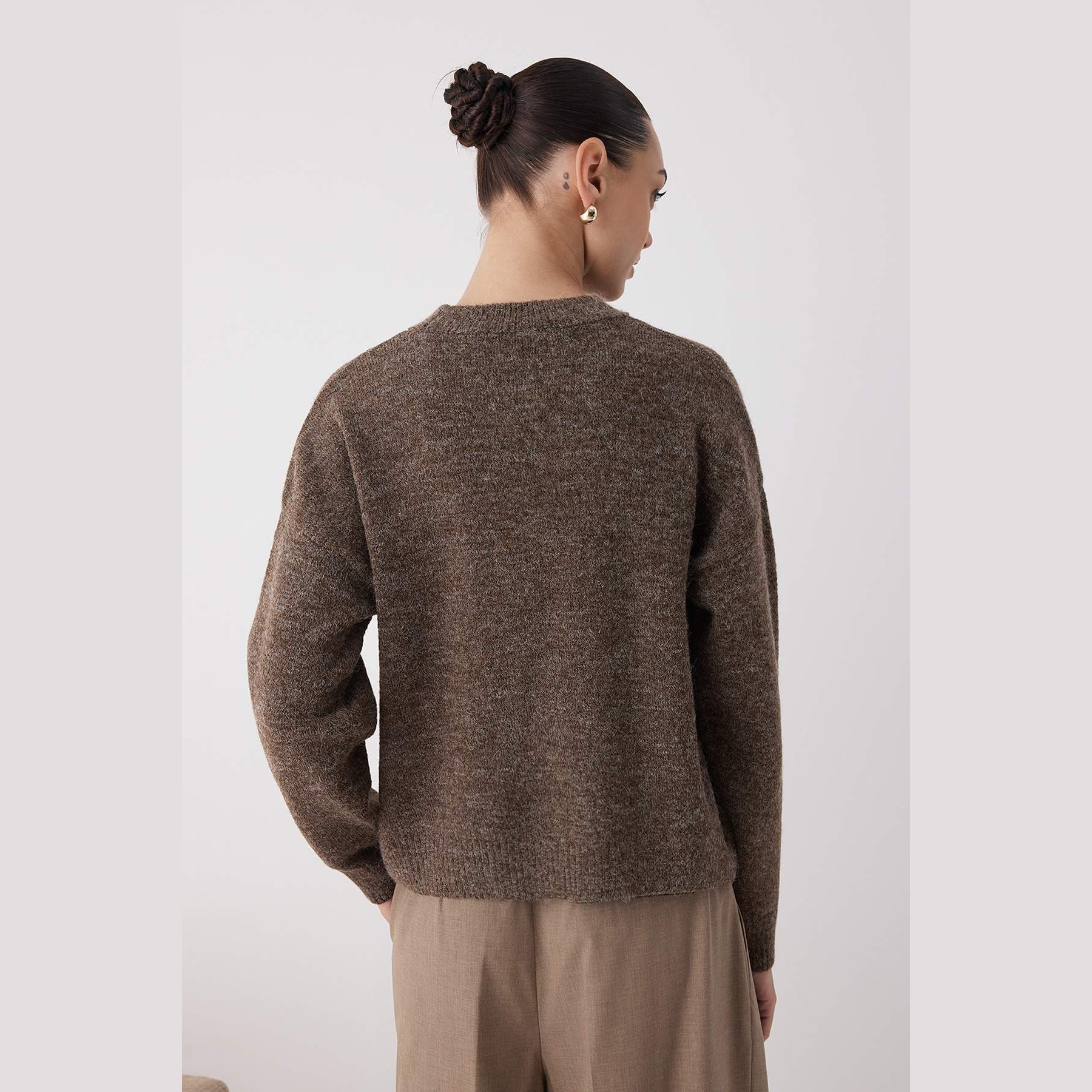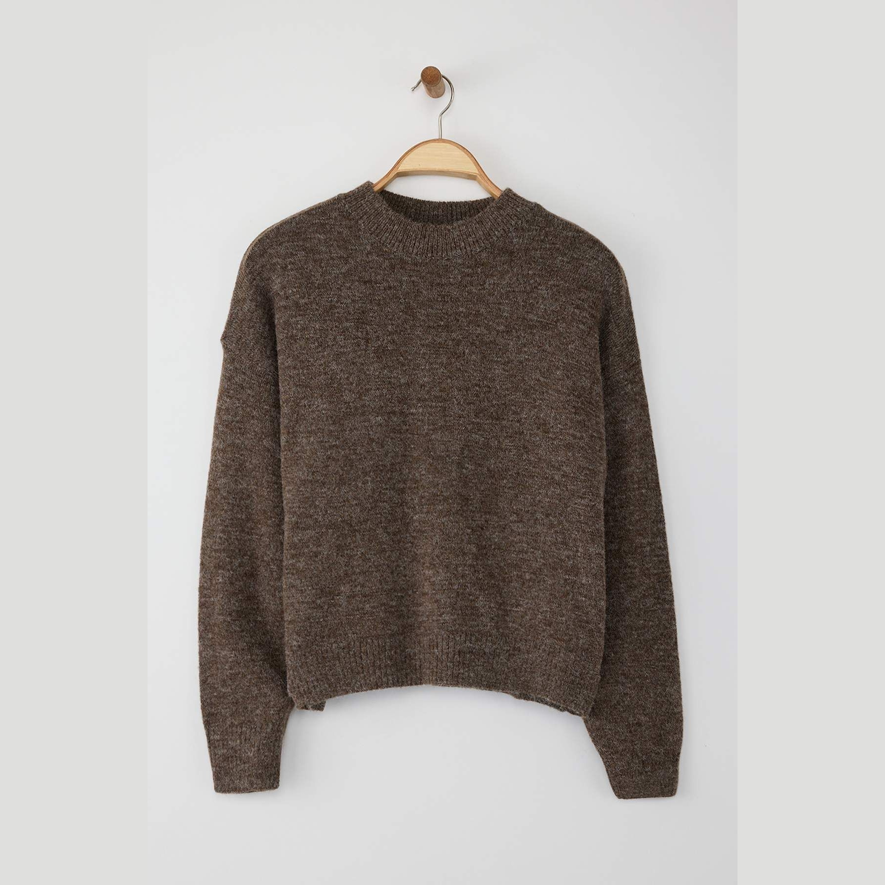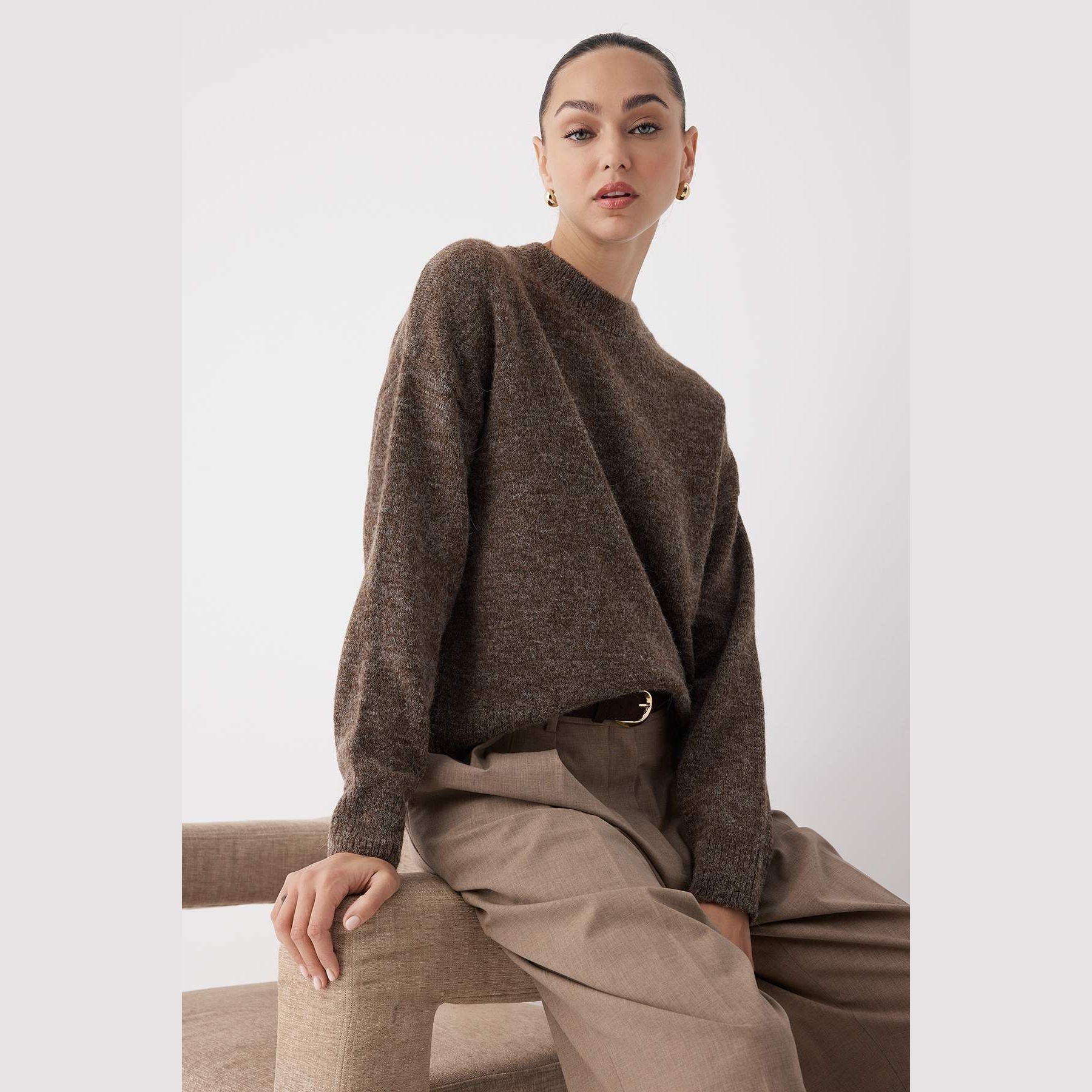 كنزة شتوية بلون فيزون ناعم من مجموعة Wardrobe Essentials – Trendyolmilla، بتصميم فاخر يجمع بين الراحة والدفء بفضل خيوطها المميزة التي تحتوي على ألياف الألباكا والصوف، تتميز بقصة واسعة (Oversize Fit) بطول عملي، مع ياقة مستديرة مغلقة، وأكمام طويلة بكتف منخفض، ما يجعلها مثالية للإطلالات اليومية الشتوية الأنيقة.