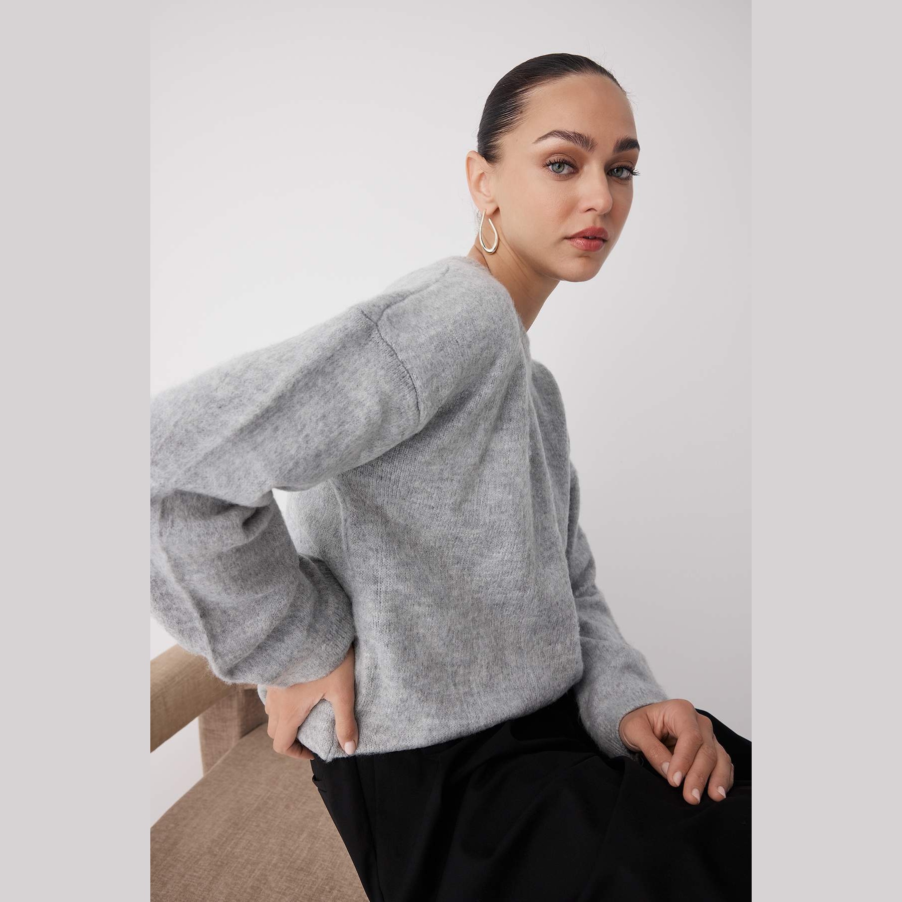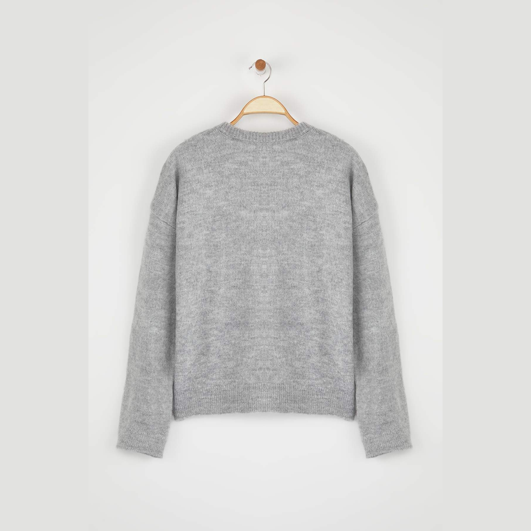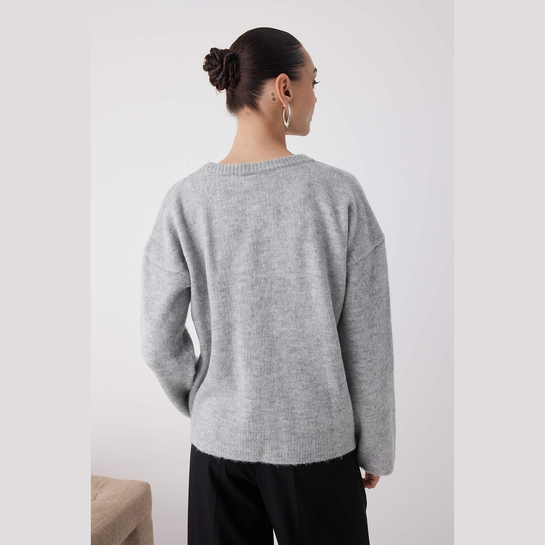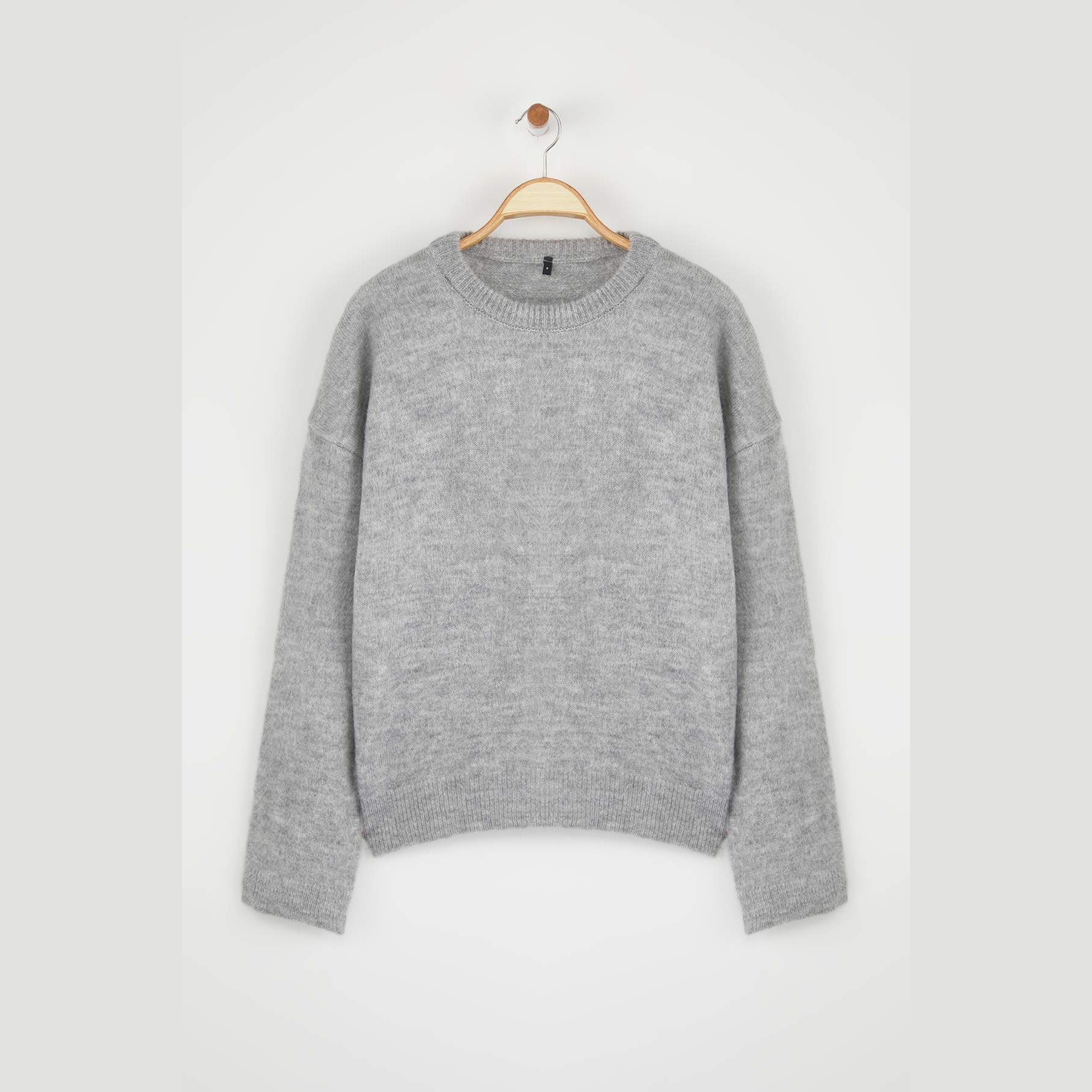 كنزة شتوية بلون رمادي هادئ من مجموعة Wardrobe Essentials – Trendyolmilla، بتصميم Basic مريح بقصة واسعة (Oversize Fit)، مصنوعة من خامة تريكو ناعمة الملمس توفر دفئًا وراحة مثالية لأيام الشتاء المعتدل، مع ياقة مستديرة مغلقة وأكمام طويلة بكتف منخفض، ما يجعلها خيارًا مثاليًا للإطلالات اليومية البسيطة والأنيقة.