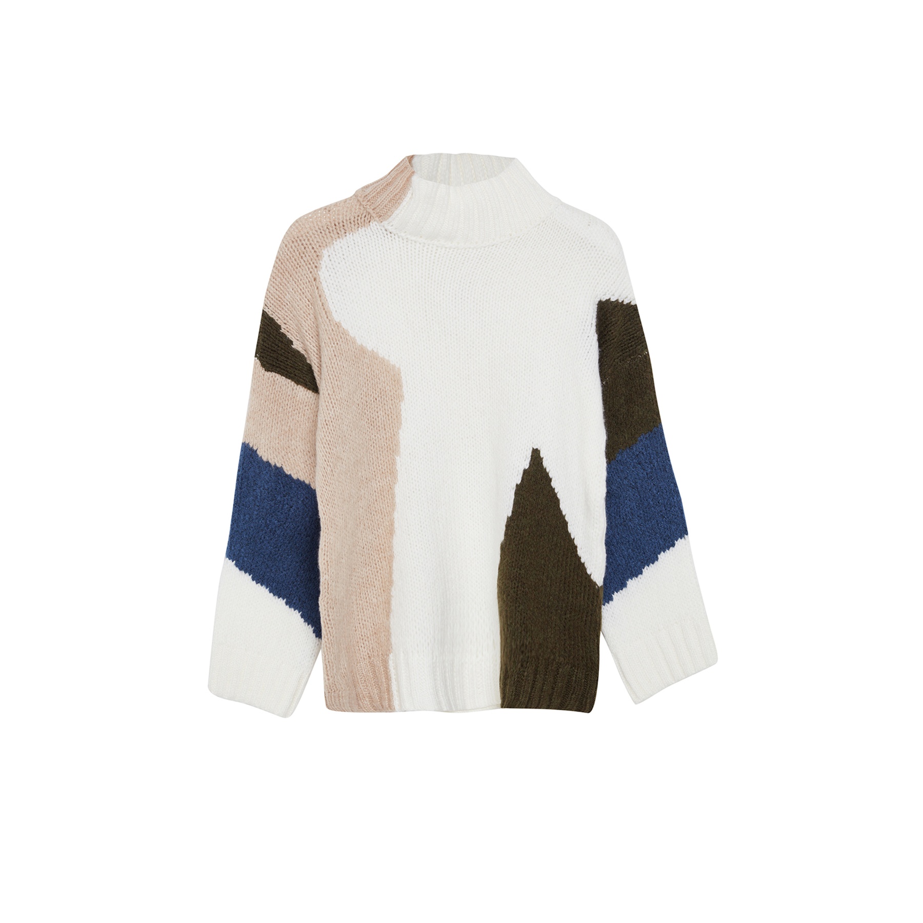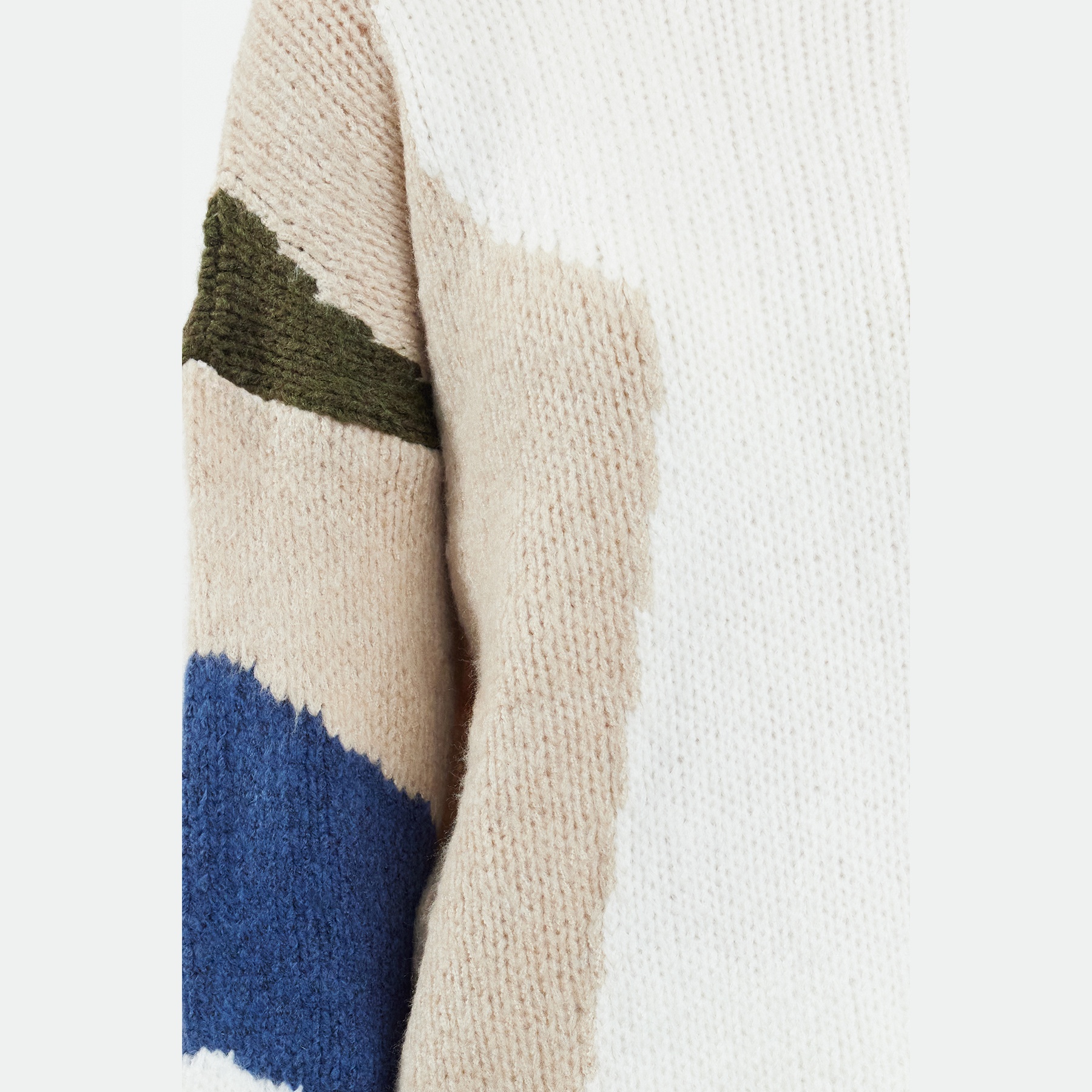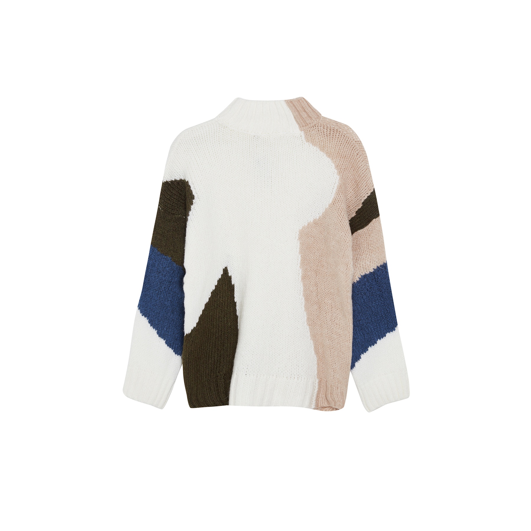 كنزة نسائية – إكرُو بتصميم ألوان متداخلة وخامة تريكو ناعمة بقصة واسعة (إطلالة يومية بلمسة فنية دافئة)
